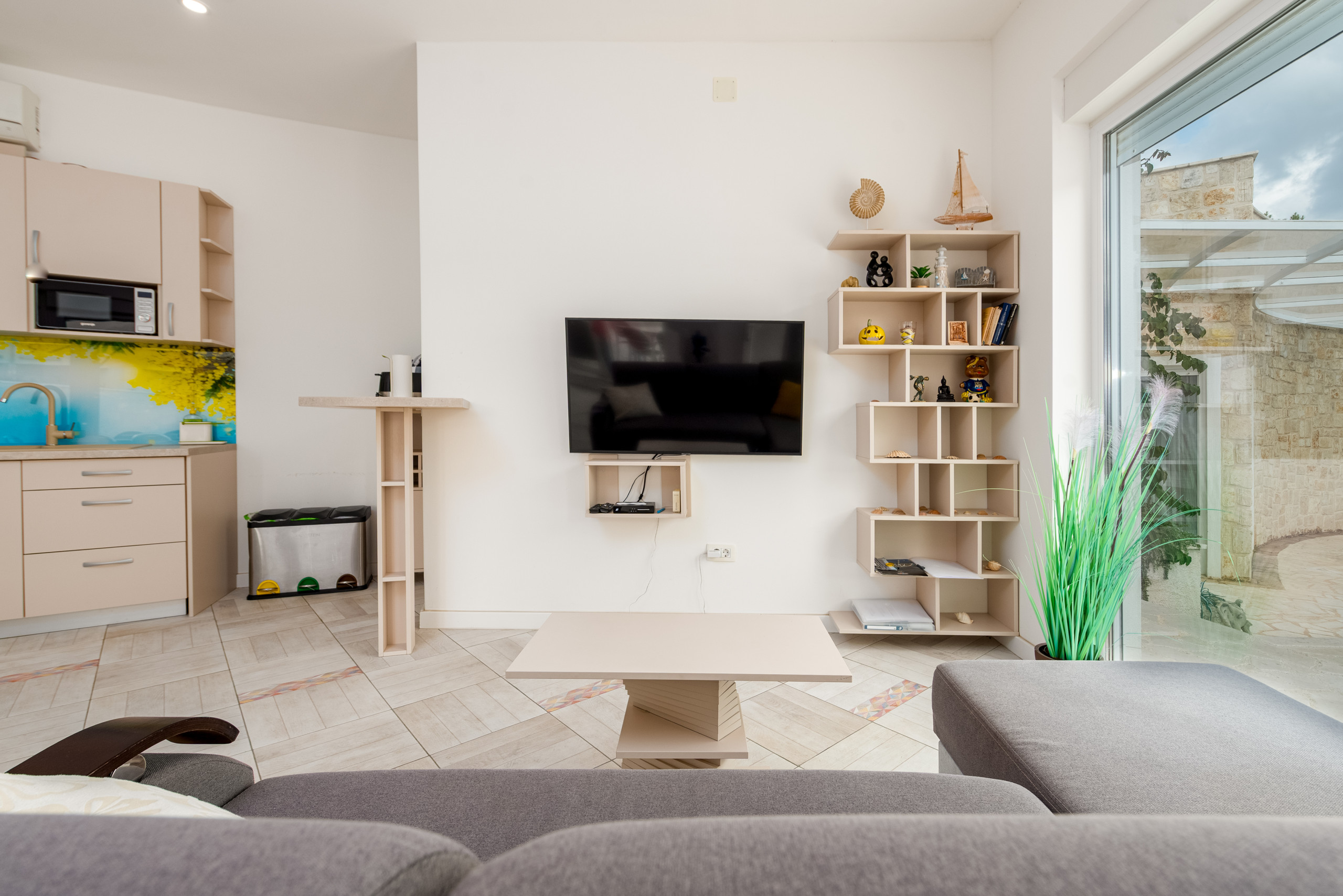 Nur 60 Meter vom Meer entfernt, liegt die Villa in perfekter Lage, um die Naturschönheiten von Pašman zu genießen. Die Fähre ist in nur zehn Minuten mit dem Auto erreichbar, was eine einfache Anreise ermöglicht. Gäste können zahlreiche Rad- und Wanderwege erkunden, versteckte Strände entdecken oder historische Sehenswürdigkeiten besuchen. In der Nähe gibt es traditionelle dalmatinische Konobas, in denen man authentische lokale Küche genießen kann. Diese einzigartige Villa bietet die perfekte Kombination aus Luxus, Privatsphäre und Natur und sorgt für ein unvergessliches Urlaubserlebnis auf einer der schönsten Inseln Kroatiens.