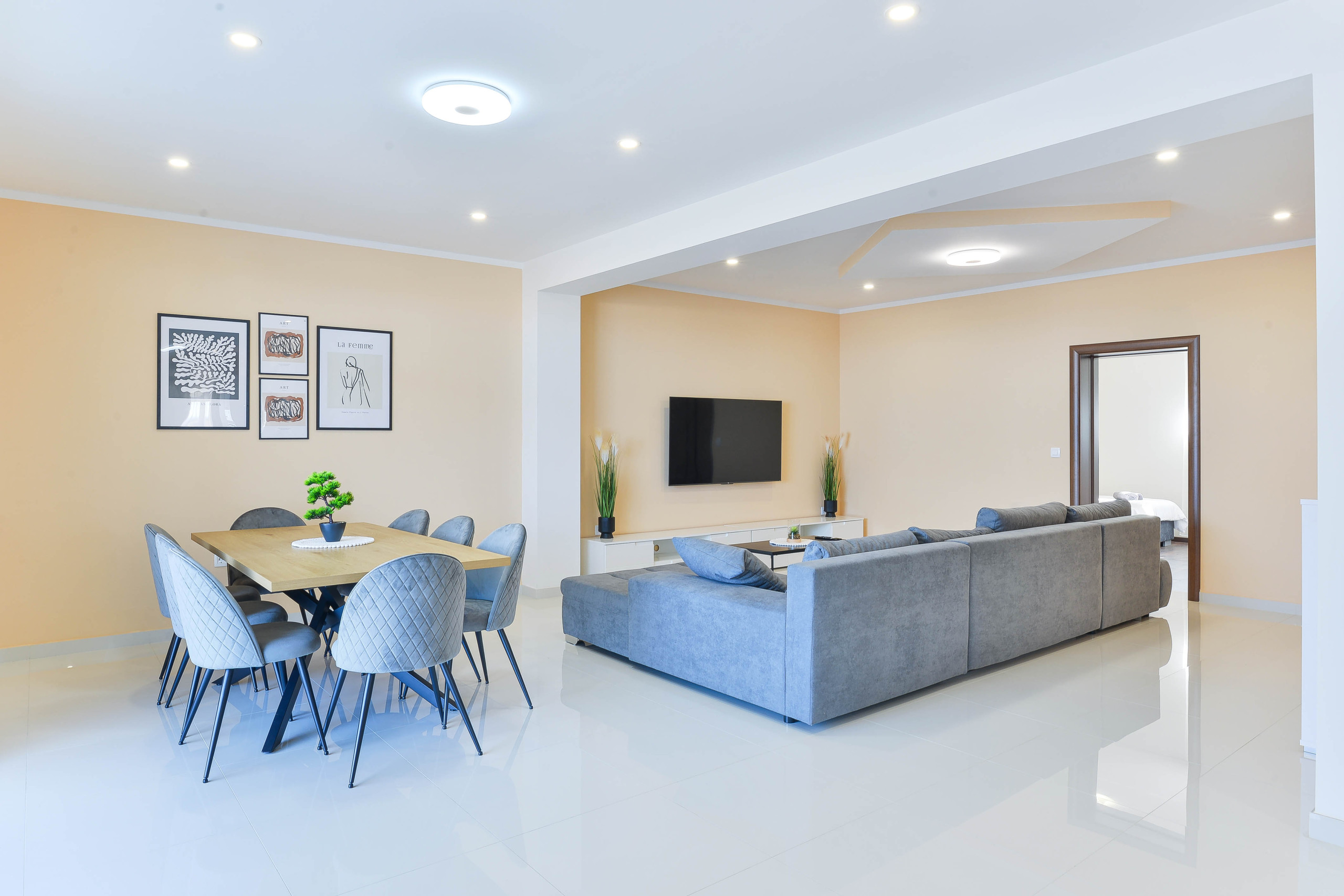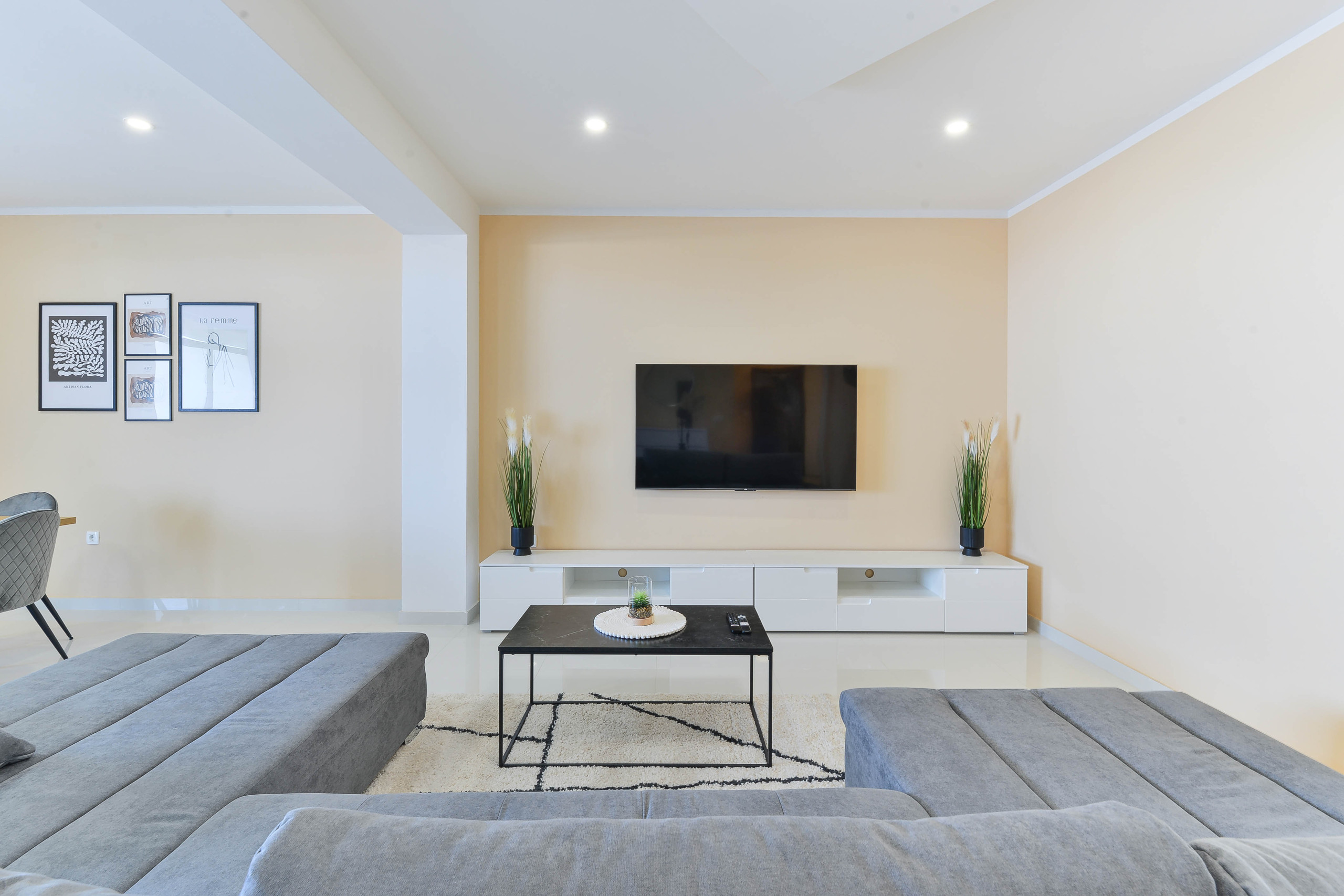 The spacious 135 m² apartment is located on the ground floor of a family house and offers everything you need for a carefree stay.