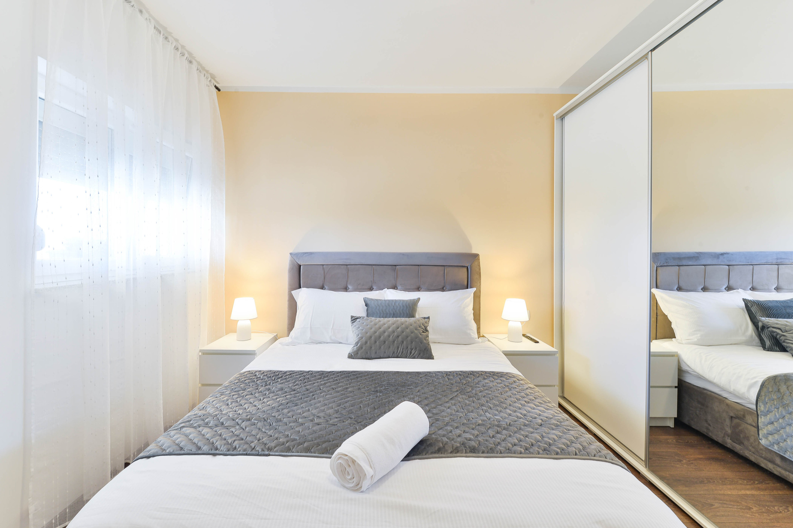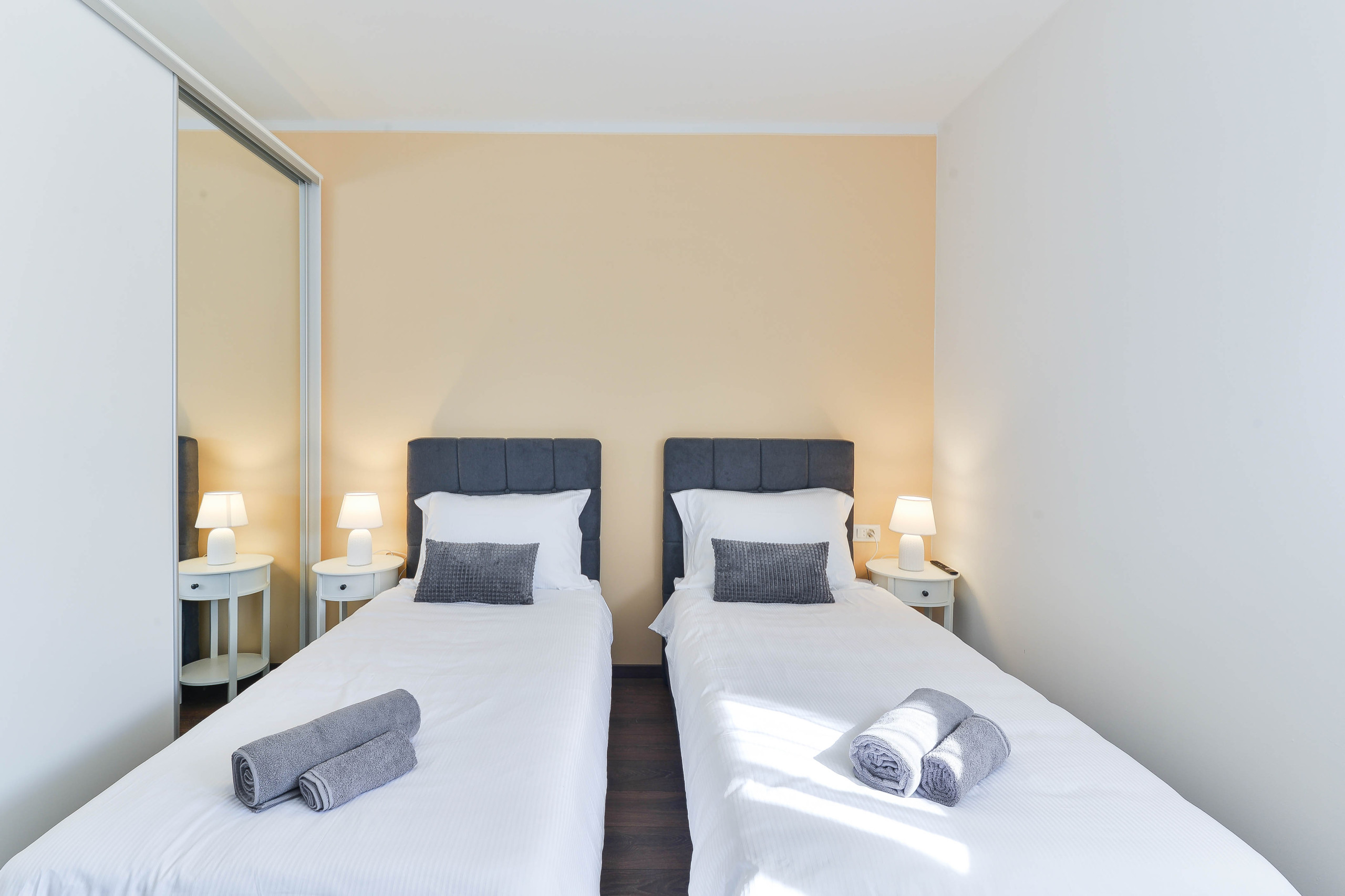 The apartment has three bedrooms - two with queen-size beds and one with two single beds that can be joined together if desired.