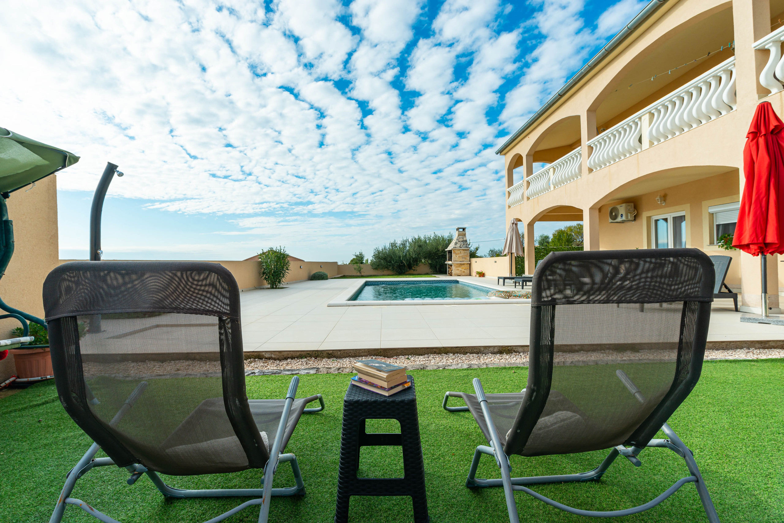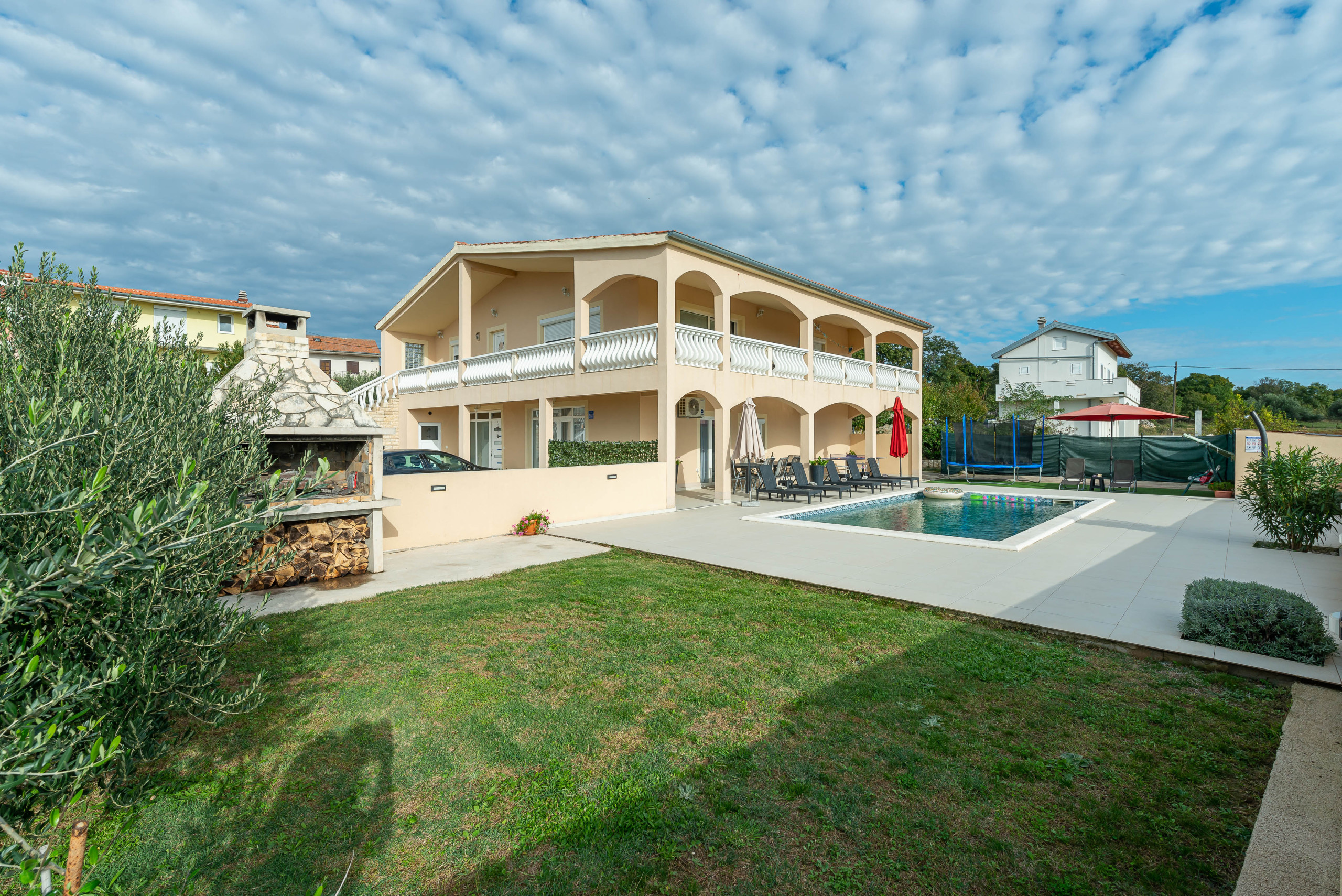 The outdoor area will delight you with a private pool, barbecue area, trampoline, table tennis and bicycles available on request - perfect for fun and relaxation under the sun.