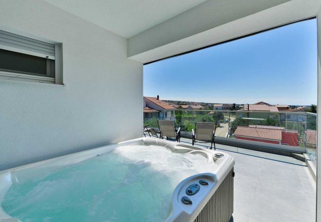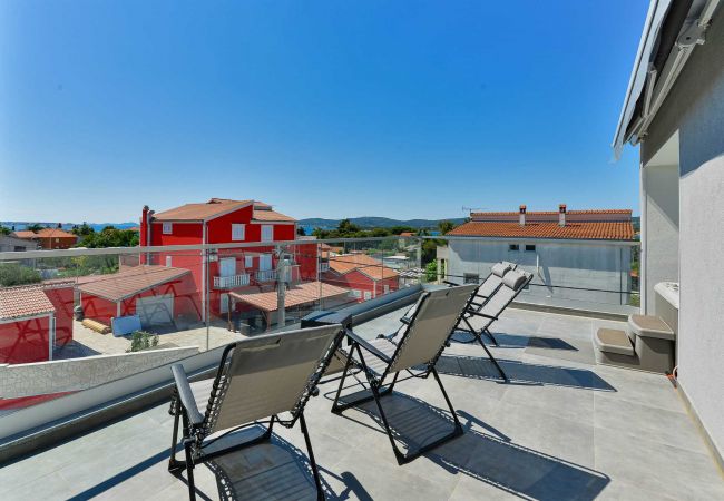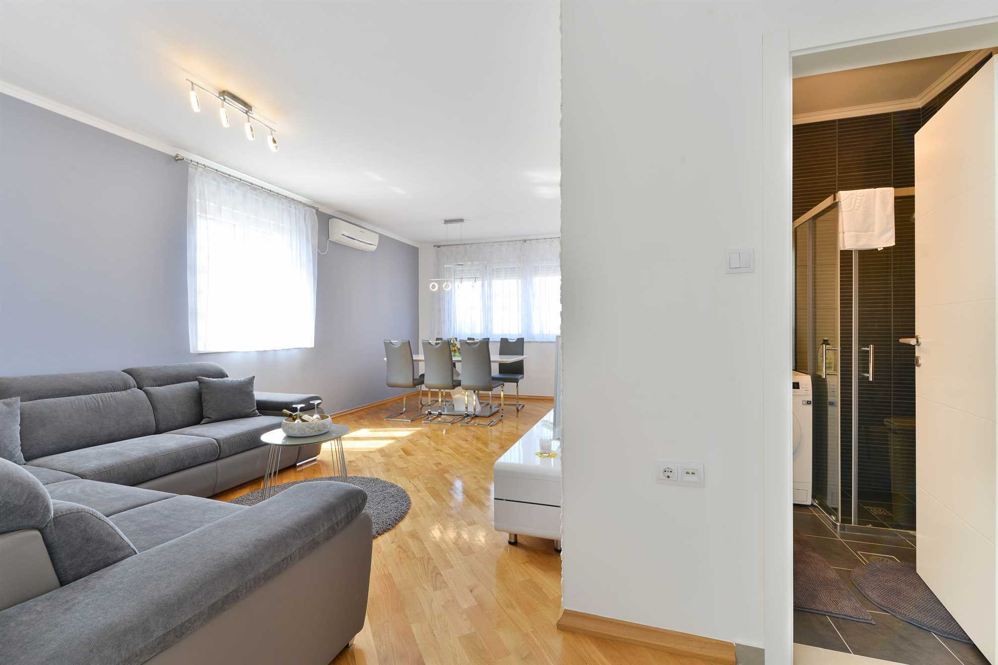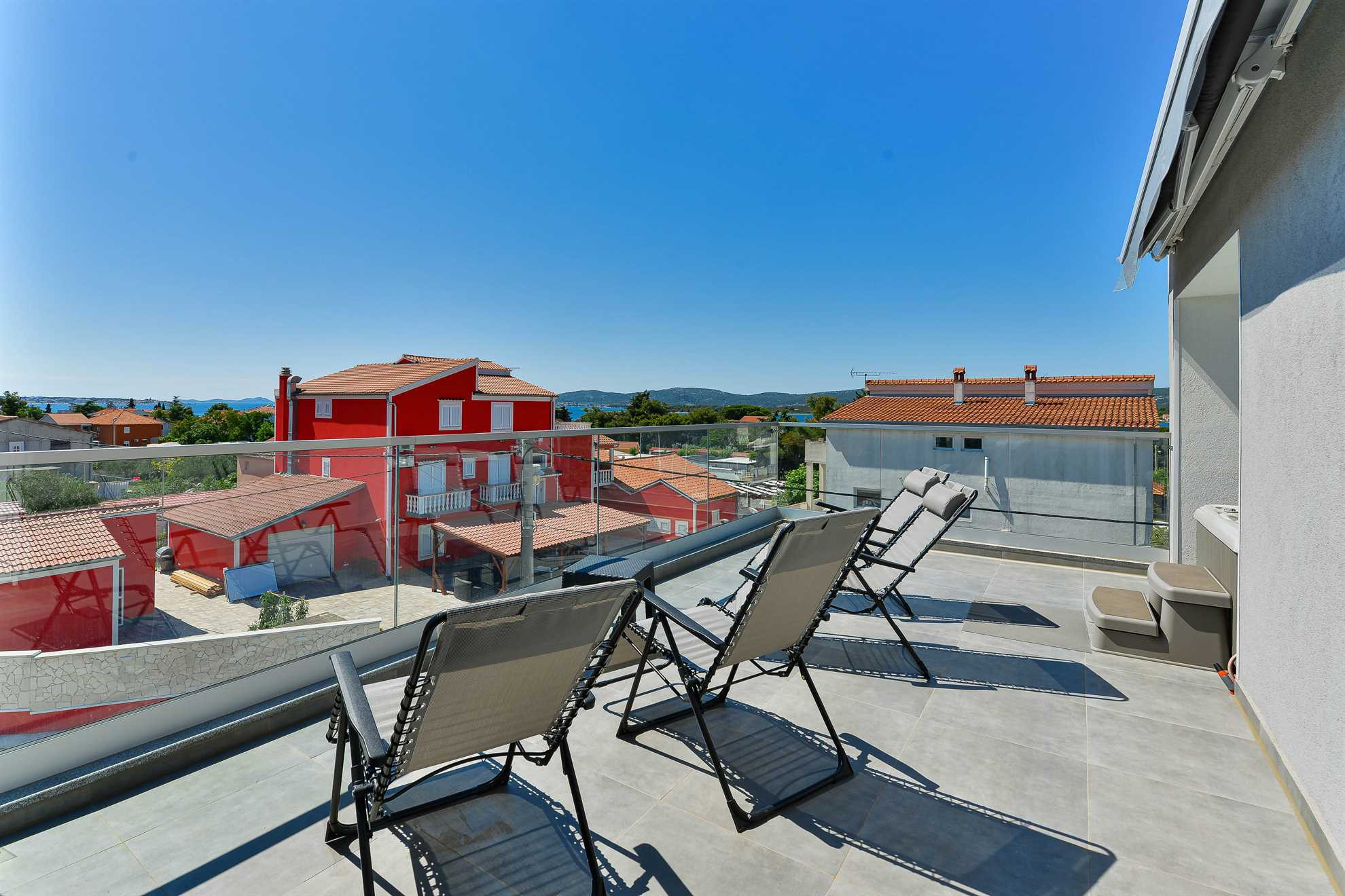This beautiful, high-quality apartment of 140 m² is located in Turanj, Zadar County, just 150 meters from the beach.