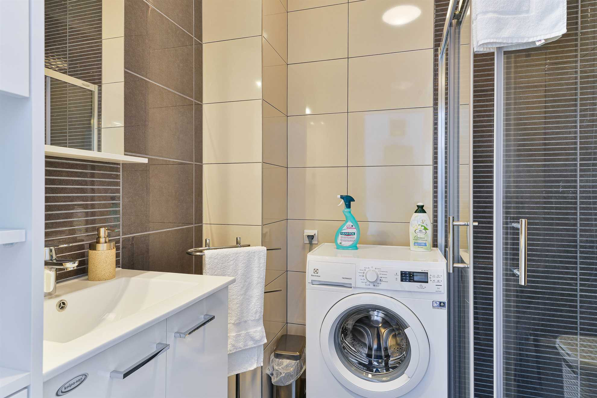 It extends over two floors of a small residential building and has its own private entrance, ensuring complete privacy. The apartment features three spacious, fully equipped bedrooms, a modern kitchen with full amenities, a comfortable living room, and a large terrace with a jacuzzi and a stunning sea view.
