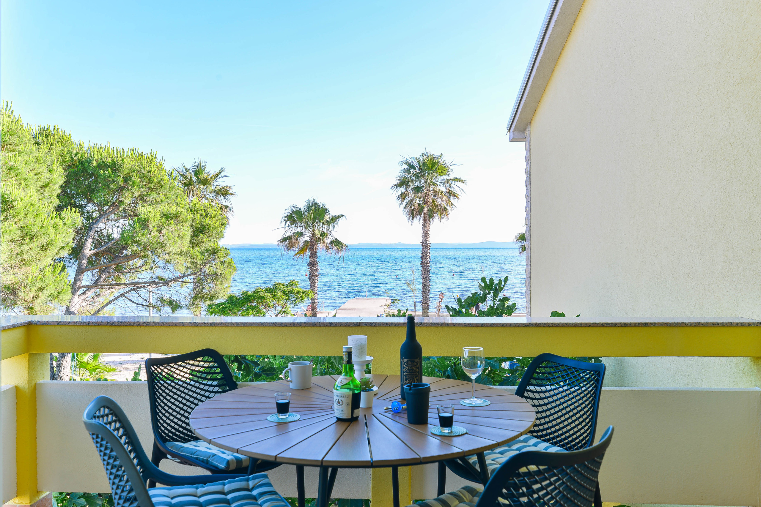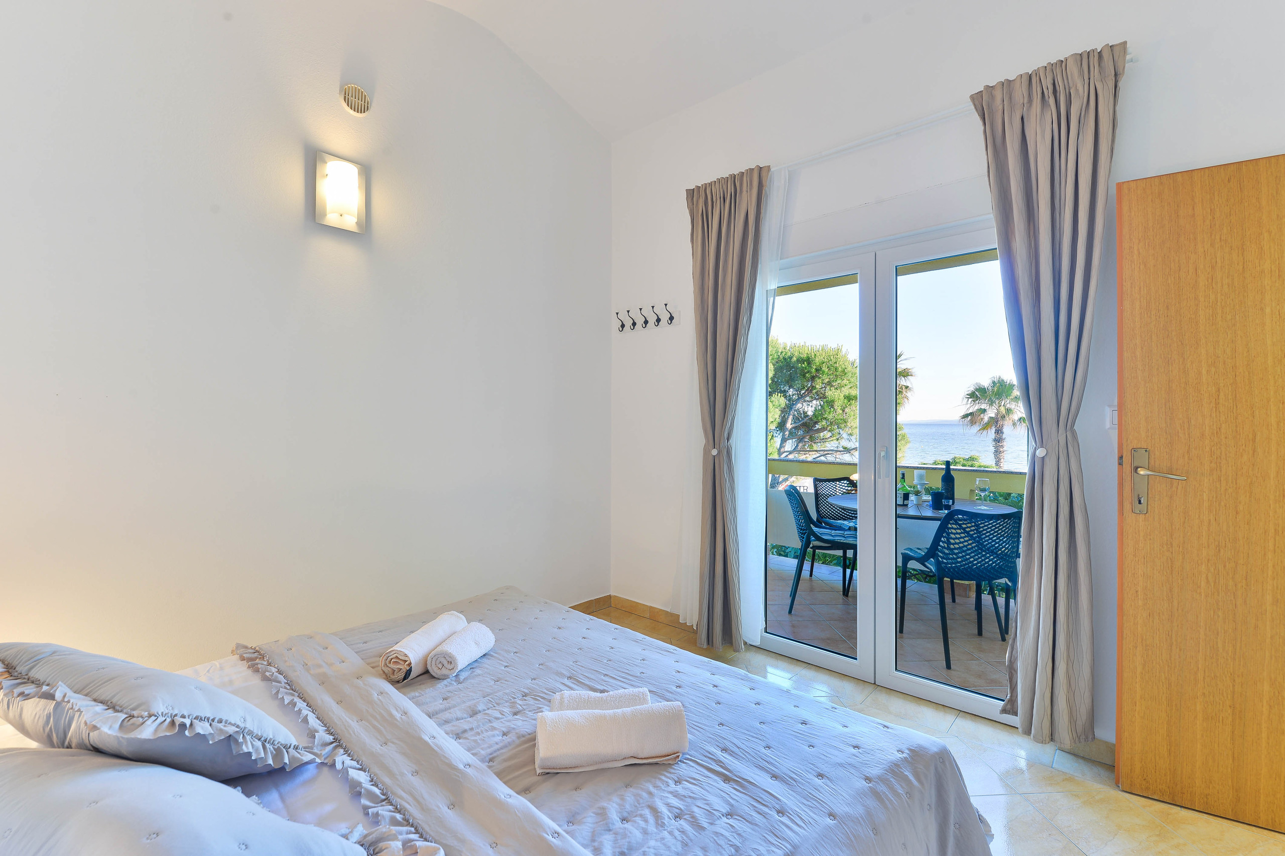 Outside, a furnished balcony awaits you with a fantastic view of the sea and the beach, just a stone's throw from the house. You have a direct exit from the garden to the beach. Garden of the house as well as barbecue and parking space on the property is available to all guests of the house.