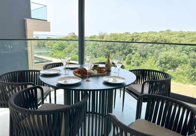 Located at the very top of the exclusive Luxury Apartments Infinity Blue residence in Kožino, this impressive penthouse represents the pinnacle of luxury living on the Adriatic coast. As the highest and most private unit in a building of only six apartments, it offers a unique sense of tranquility, exclusivity, and uninterrupted enjoyment of spectacular sea views.