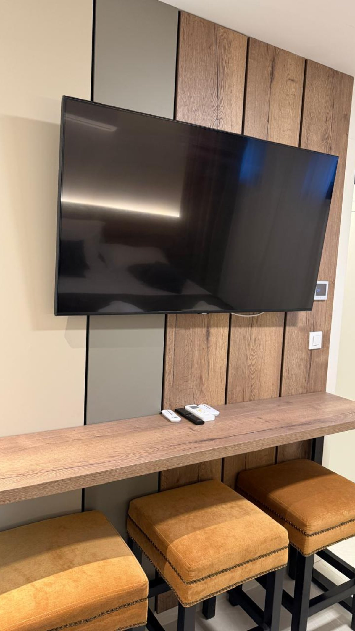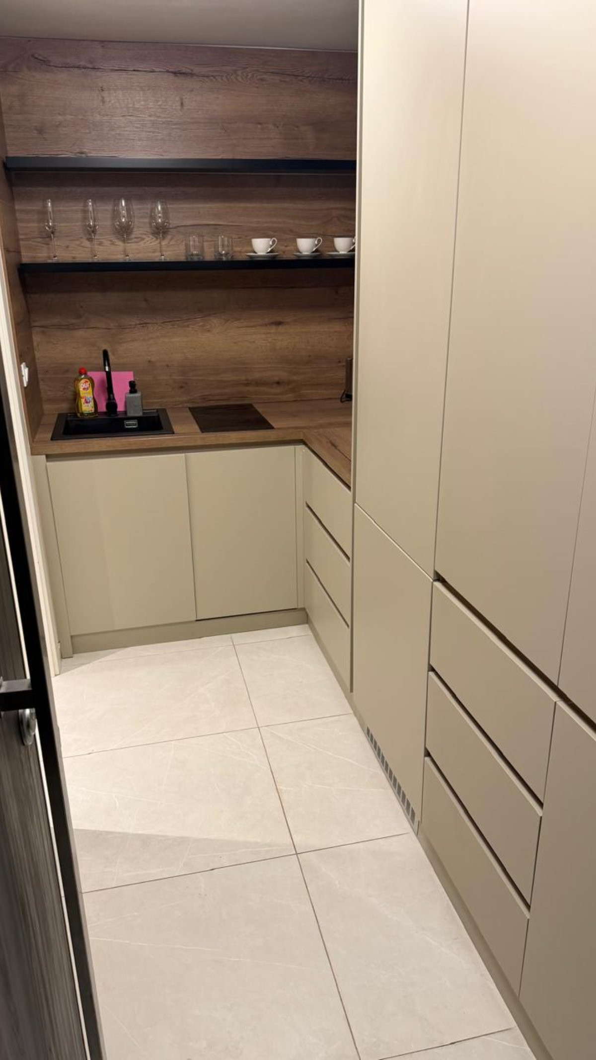The interior is thoughtfully designed in a modern style, enriched with refined golden accents that bring warmth and a sense of luxury. The fully equipped kitchen provides everything you need to prepare your meals, whether you’re starting your day with a coffee or enjoying a cozy dinner.