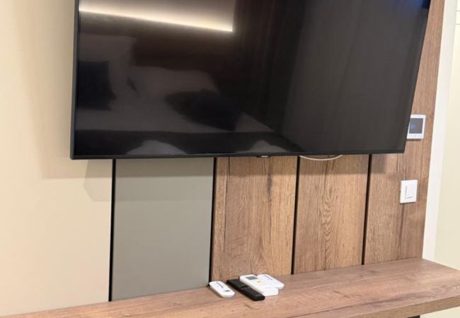 The apartment includes a modern bathroom with a shower, air conditioning for pleasant summer stays, and a TV for relaxing evenings. A small but fully equipped kitchen allows you to easily prepare breakfast or light meals at your convenience.