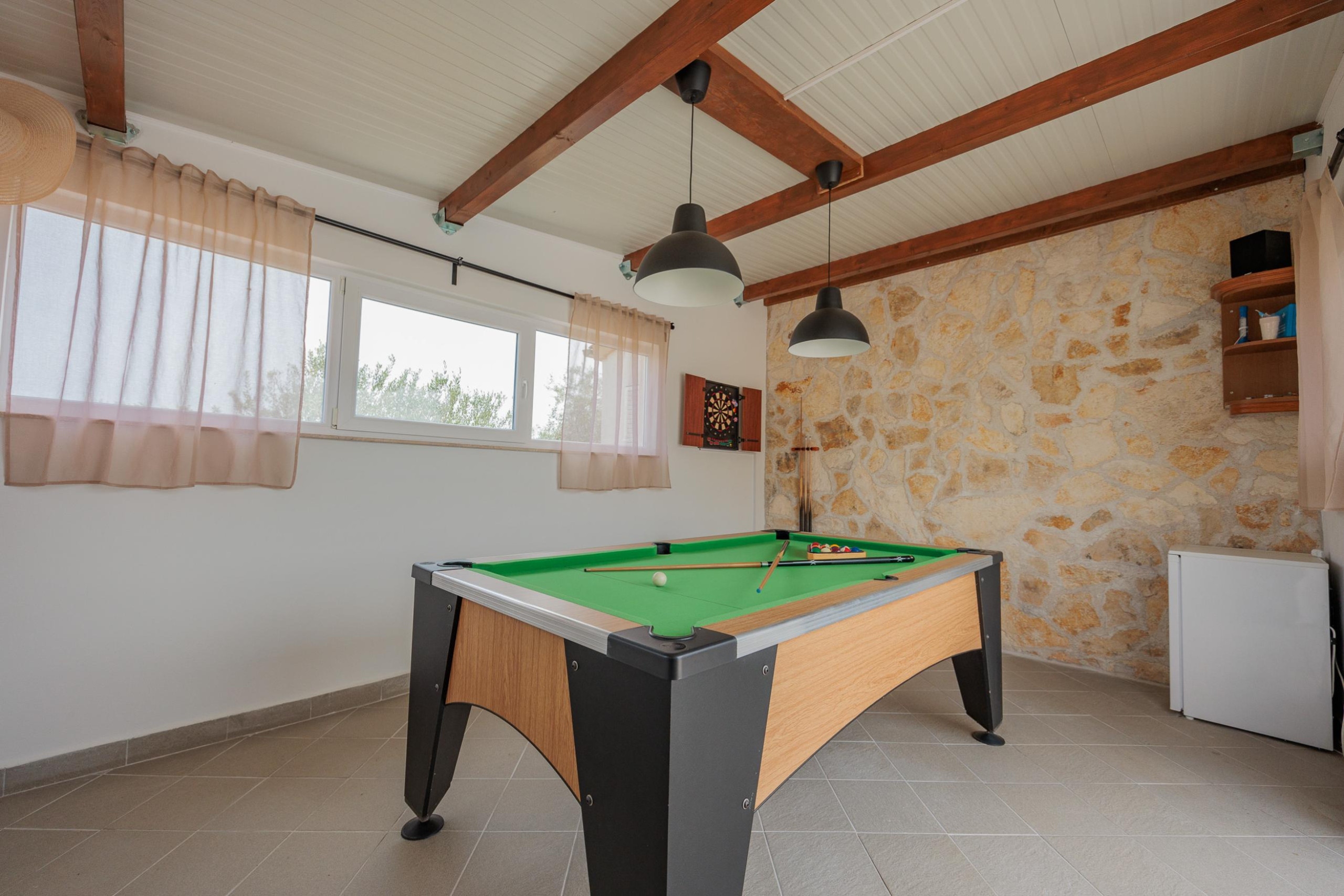 In addition to the living space, Villa Fjaka also has an entertainment area, where guests can socialize playing darts or billiards.