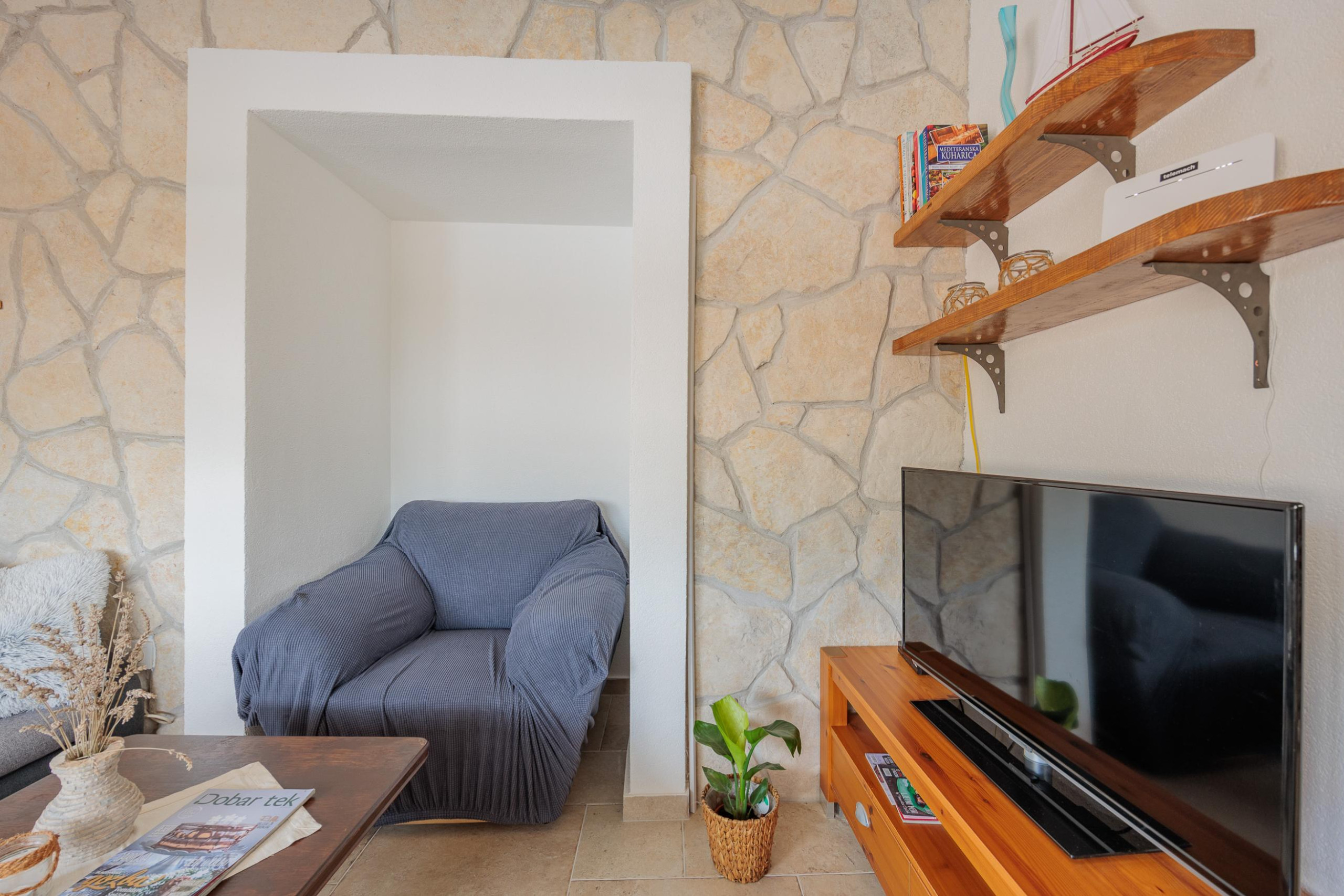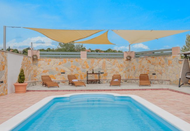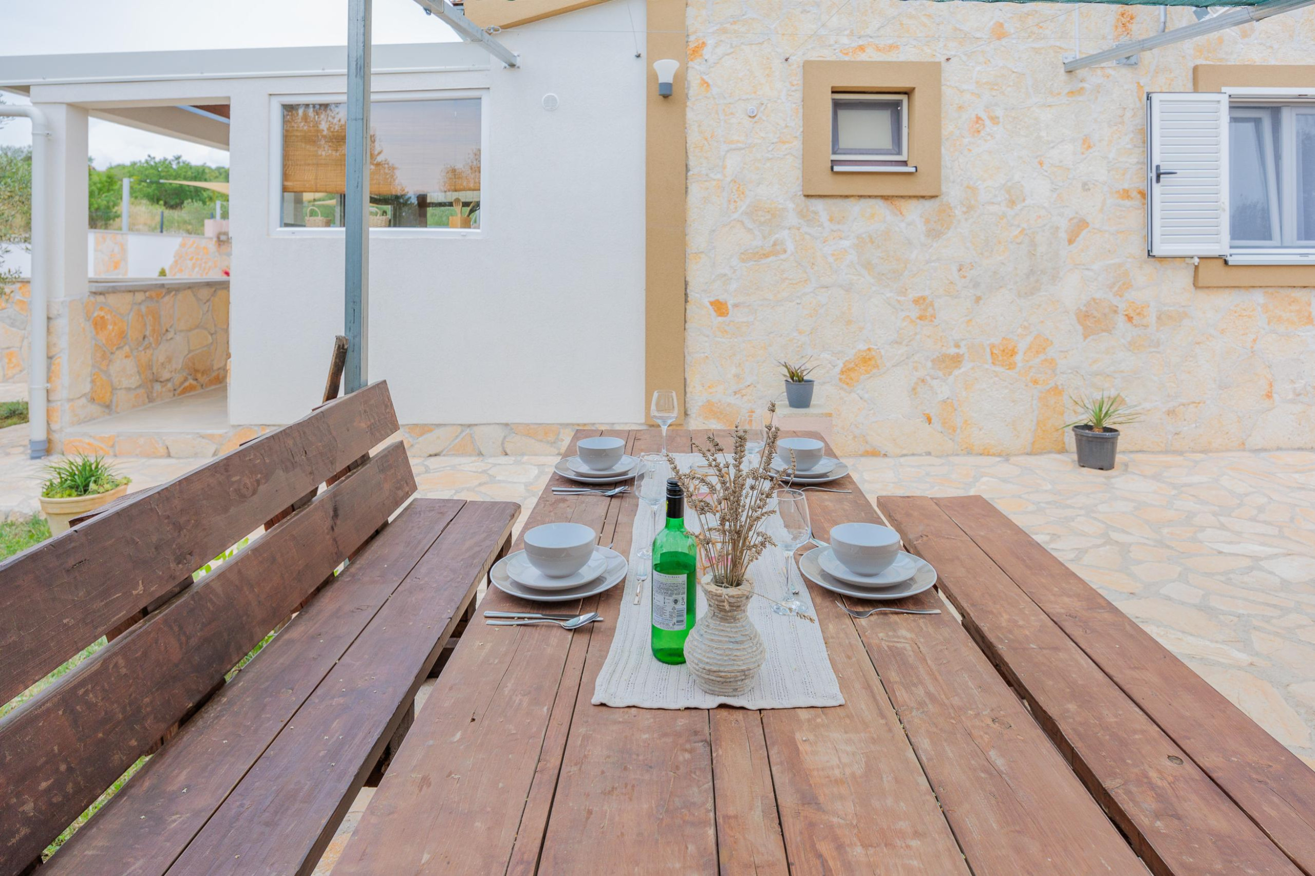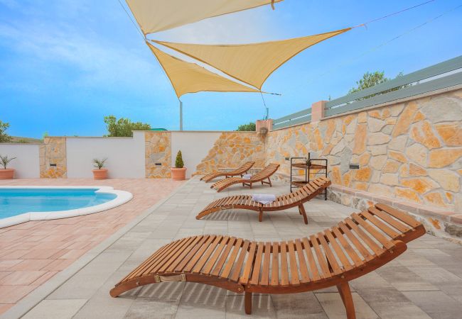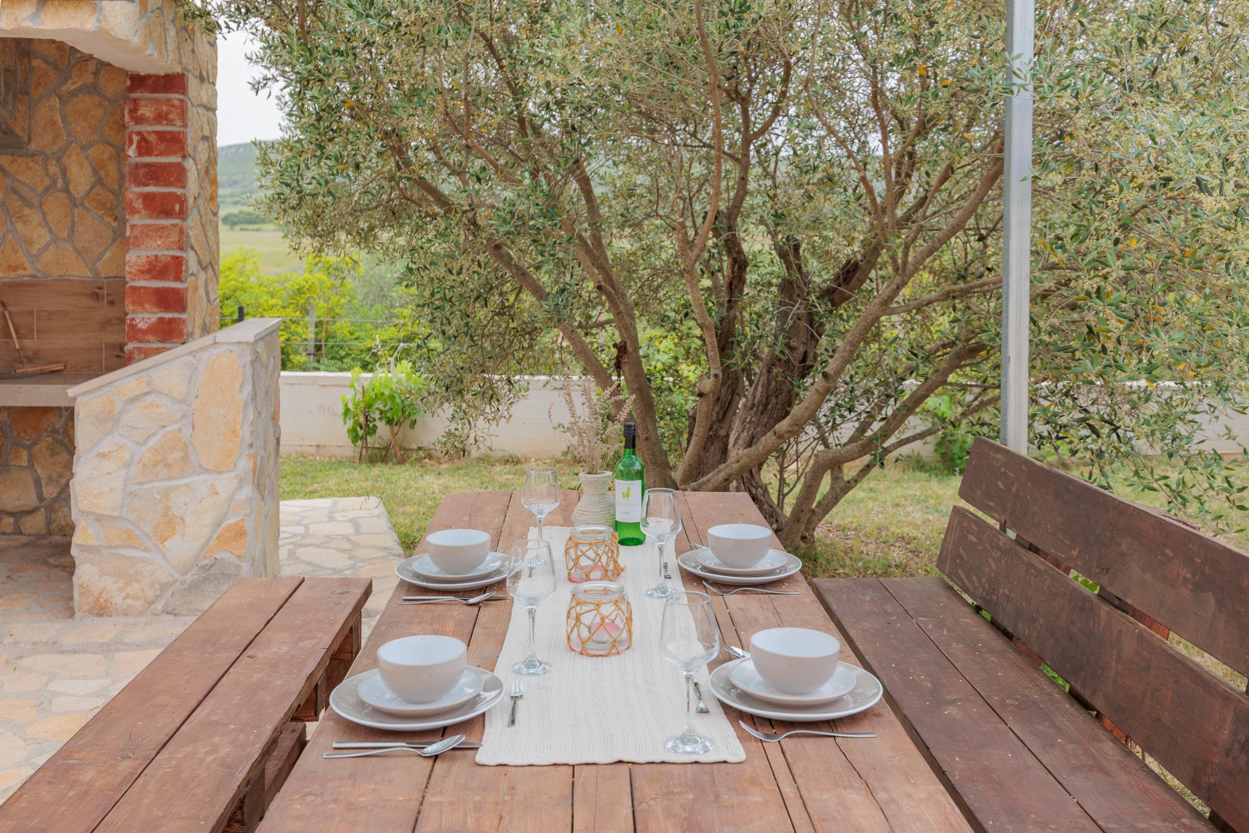 The cute and rustic holiday house Fjaka*** is located in the quiet town of Bulić near the town of Zadar.