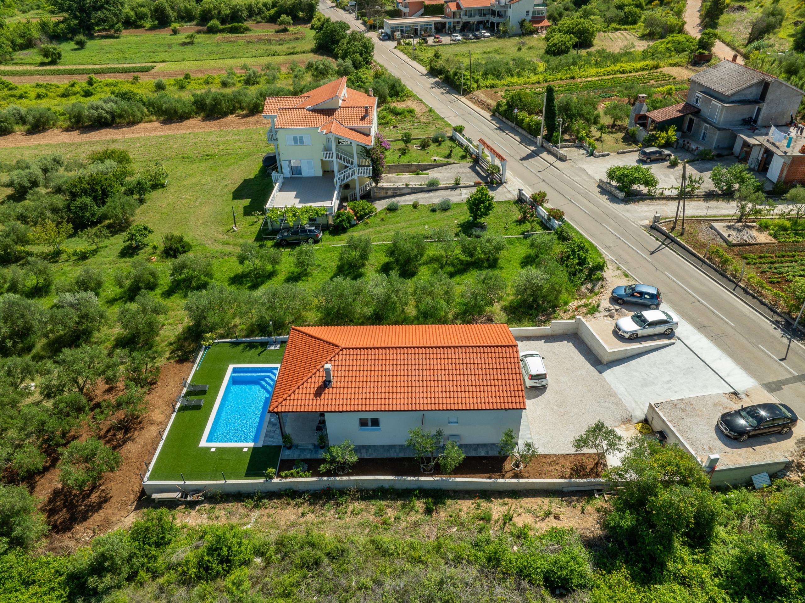 The house is all on ground floor, offering an open concept living space, as well as two beautiful bedrooms and two bathrooms with shower. The house is fully air-conditioned and has individually controled A/Cs in the bedrooms.
