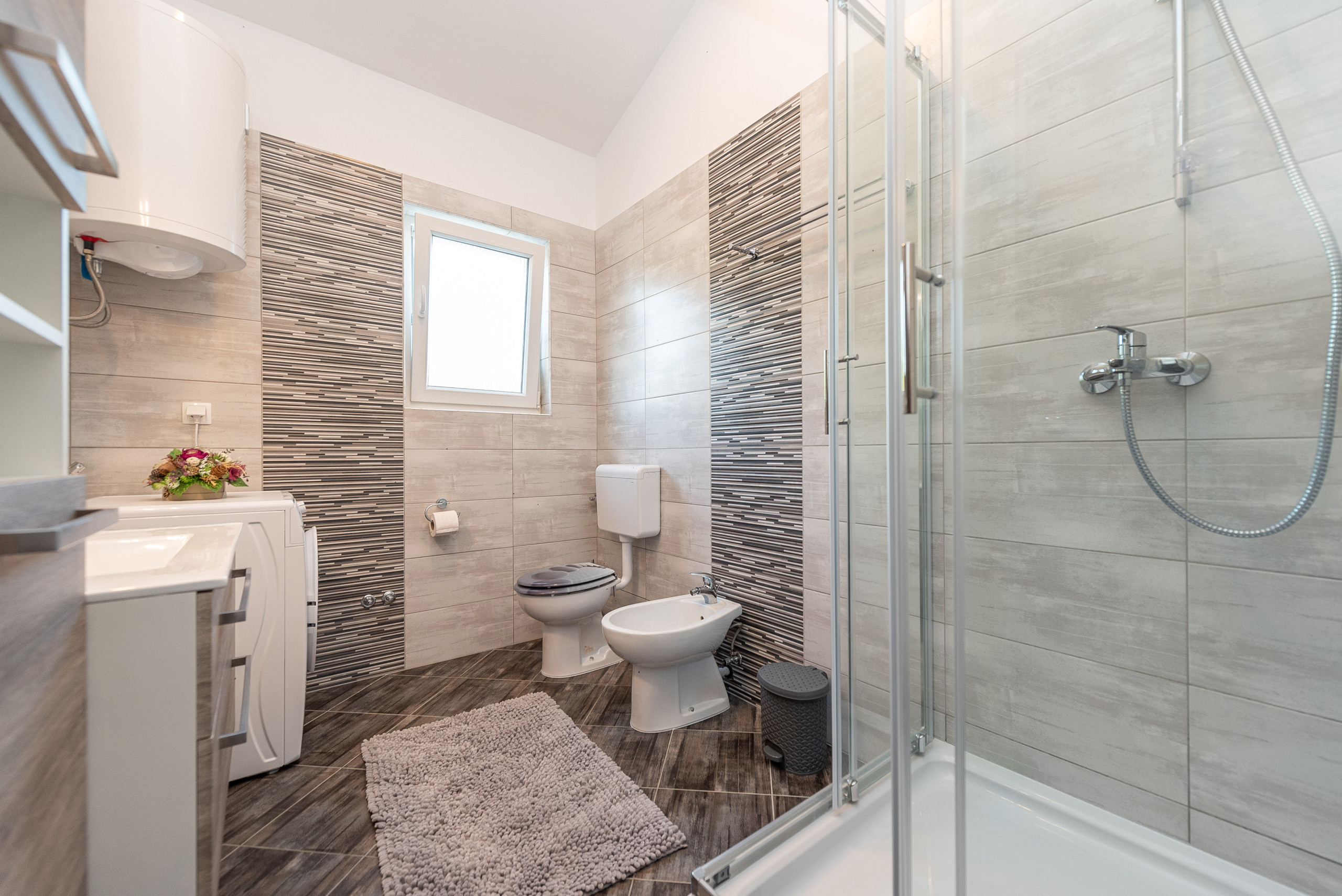 This beautiful house offers the perfect combination of comfort, privacy and proximity to the sea. It consists of 4 comfortable bedrooms with double beds – the rooms offer a breathtaking view of the sea. Guests have two bathrooms at their disposal (one with a shower, the other with a bathtub), and the larger bathroom is also equipped with a washing machine.