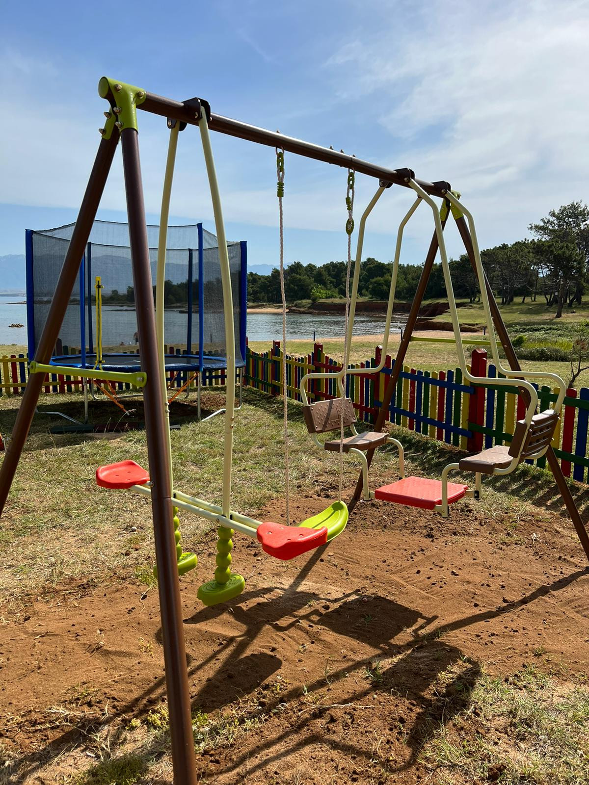 In front of the house there is a covered terrace with an outdoor table, ideal for relaxing and dining outdoors. In the large fenced yard, surrounded by greenery: lawns, Mediterranean plants and hedges, guests can use a concrete barbecue. Children will especially enjoy the shared children's playground on the property.