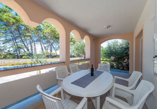 Welcome to Holiday Home Manuela – a spacious and modernly decorated holiday home ideal for 8 to 9 people, located in a quiet location on the island of Vir, right next to the beautiful natural sandy beach Smratine in a secluded bay.
