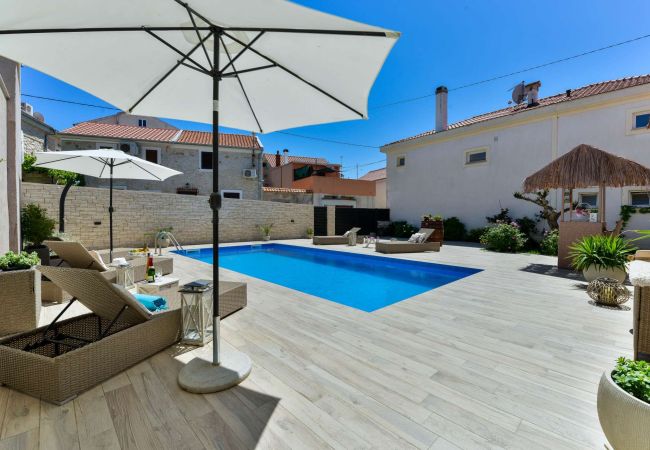This modernly decorated Holiday Home is in a top-location, only 40m from the sea. Quite peaceful surrounding, pebble beaches, shops and restaurants make it an attractive location to spend your vacation. Holiday Home Gatsby is located in a small fishing village Petrčane, only 12km away from city of Zadar. Holiday Home Gatsby consists of three bedrooms, a spacious (almost spa) bathroom and a fully equipped kitchen with a comfortable living room.
