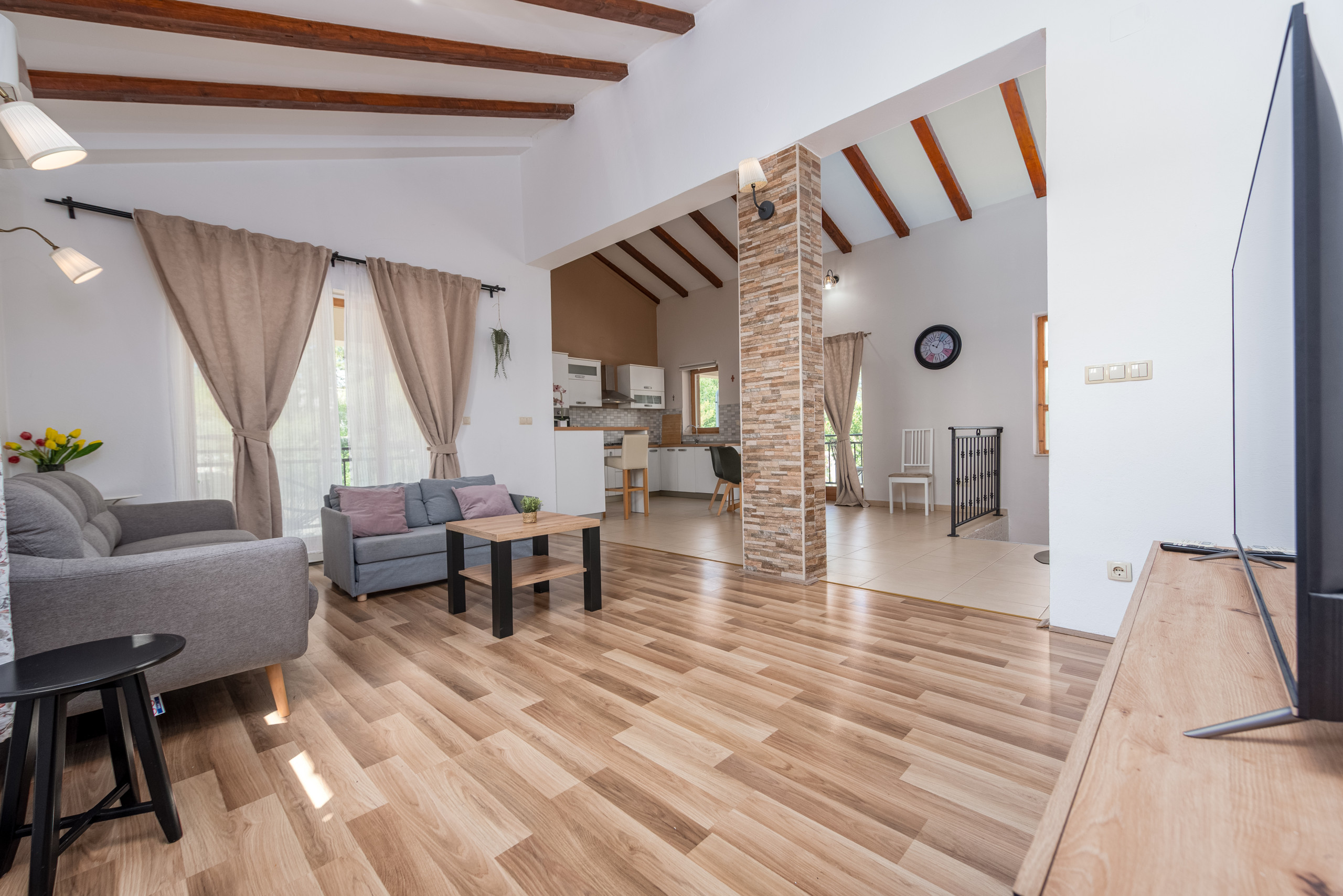 This beautiful holiday home is located in a small village called Sikovo. The 120m² holiday home consists of four bedrooms, two bathrooms, lounge, spacious living room, fully equipped kitchen and dining area. It sleeps eight guests and is perfect for a family vacation.