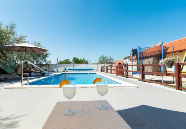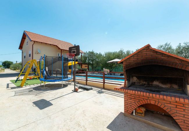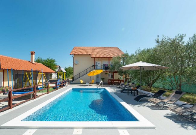 The very spacious holiday home with pool in Suhovare near Policnik, not far from Zadar, consists of two separate apartments that are connected by an outside staircase.