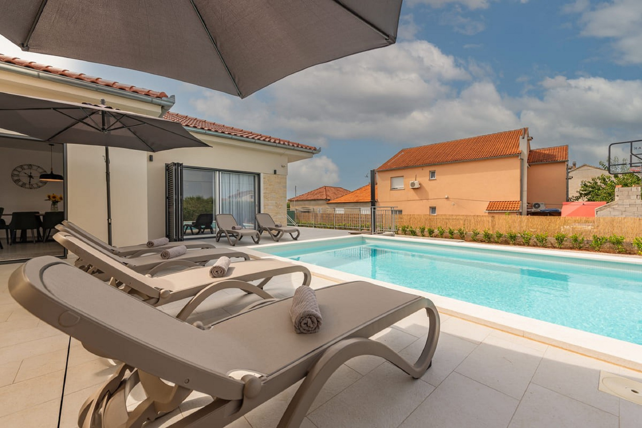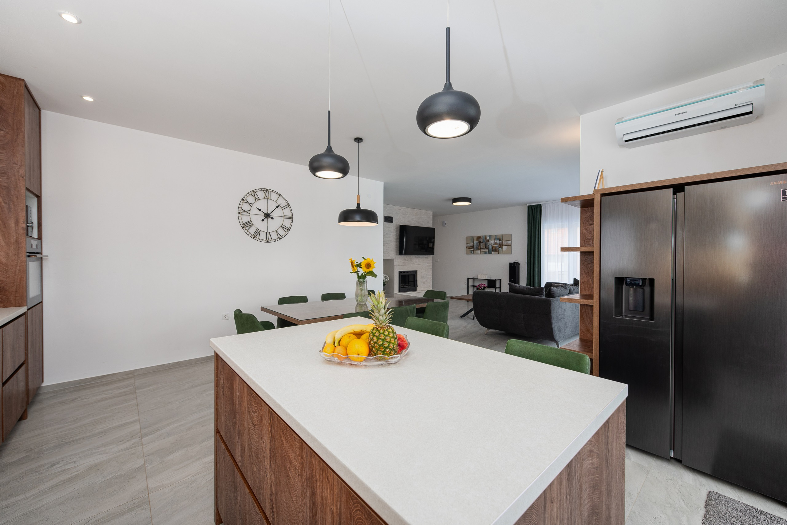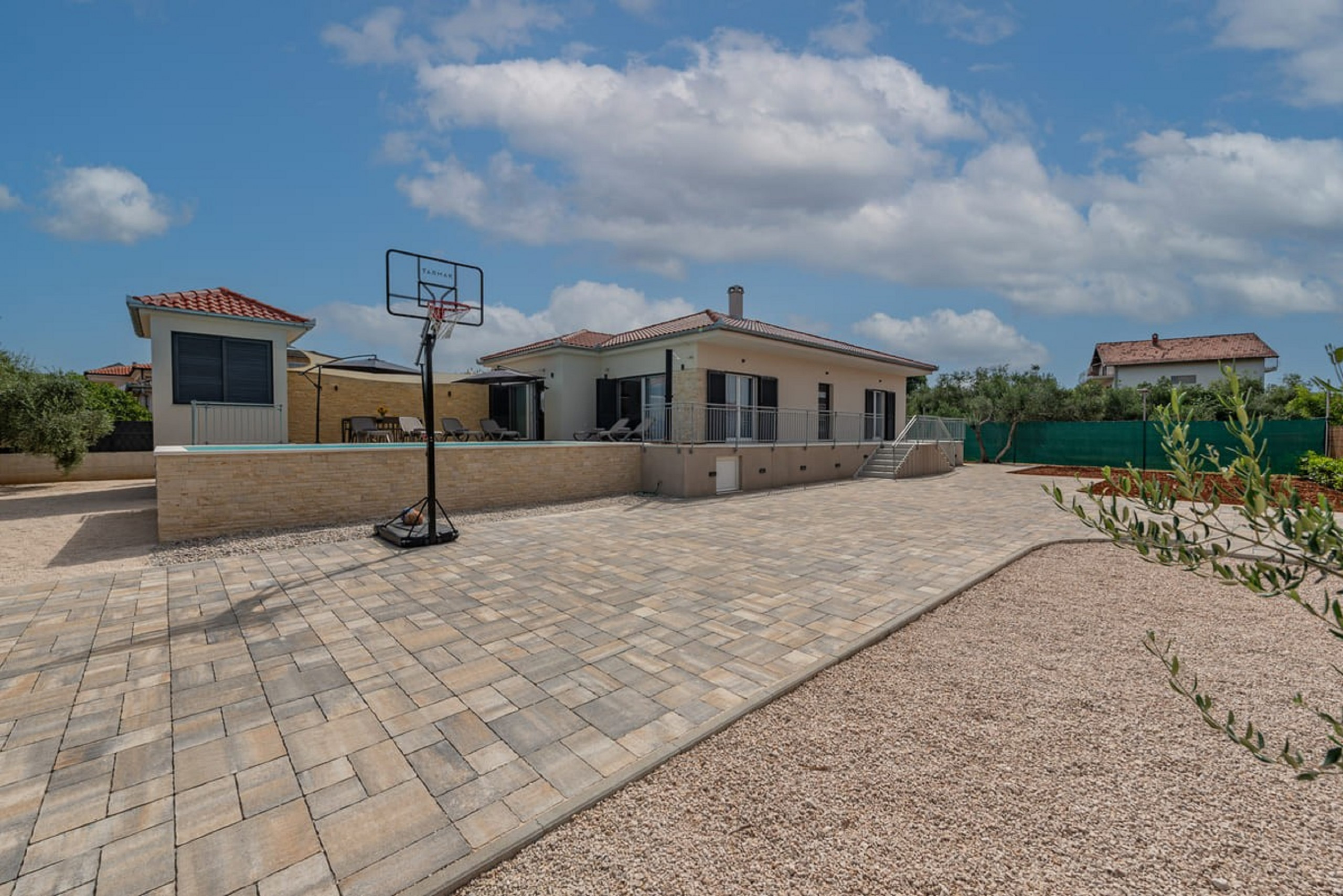 Holiday Home Marina is located in the peaceful area of Glavica – Sukošan, just 3.5 km from the beautiful beaches and crystal-clear sea of Zadar County. Surrounded by greenery, nature, and gentle hills, this fully fenced property offers privacy, safety, and the perfect setting for a relaxing family holiday.