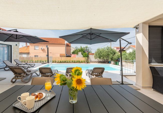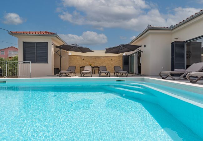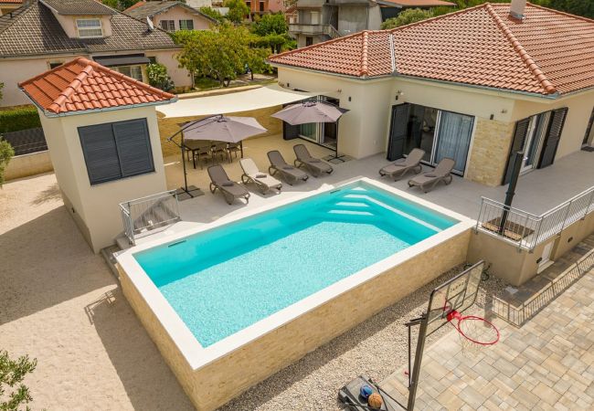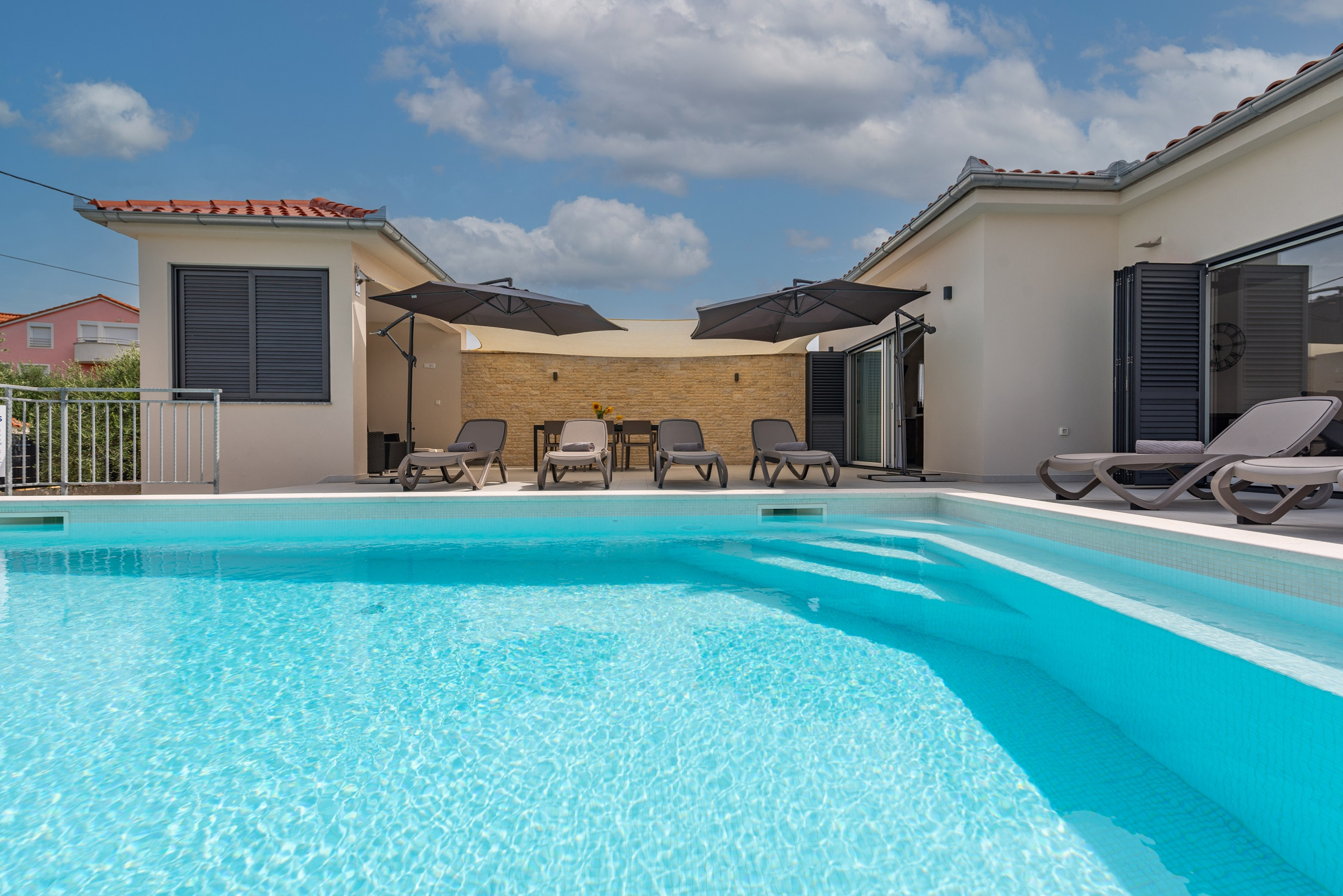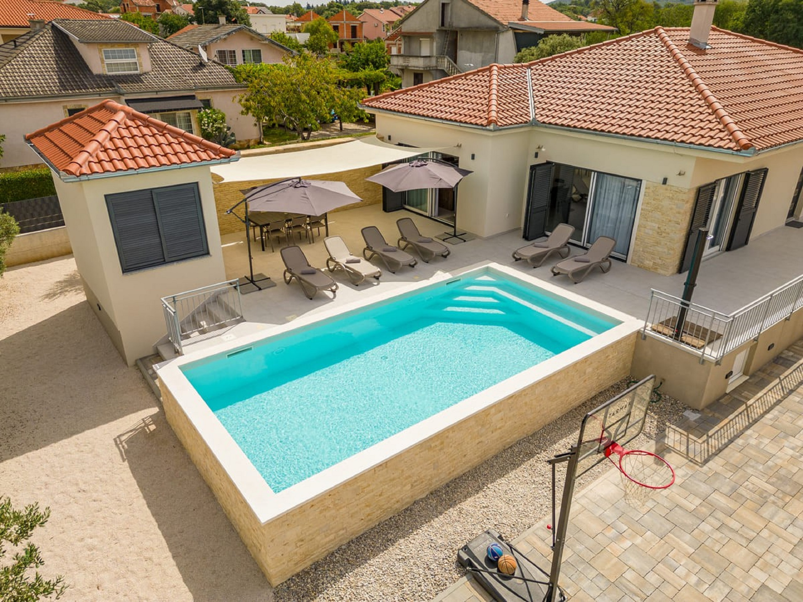 Holiday Home Marina is located in the peaceful area of Glavica – Sukošan, just 3.5 km from the beautiful beaches and crystal-clear sea of Zadar County. Surrounded by greenery, nature, and gentle hills, this fully fenced property offers privacy, safety, and the perfect setting for a relaxing family holiday.