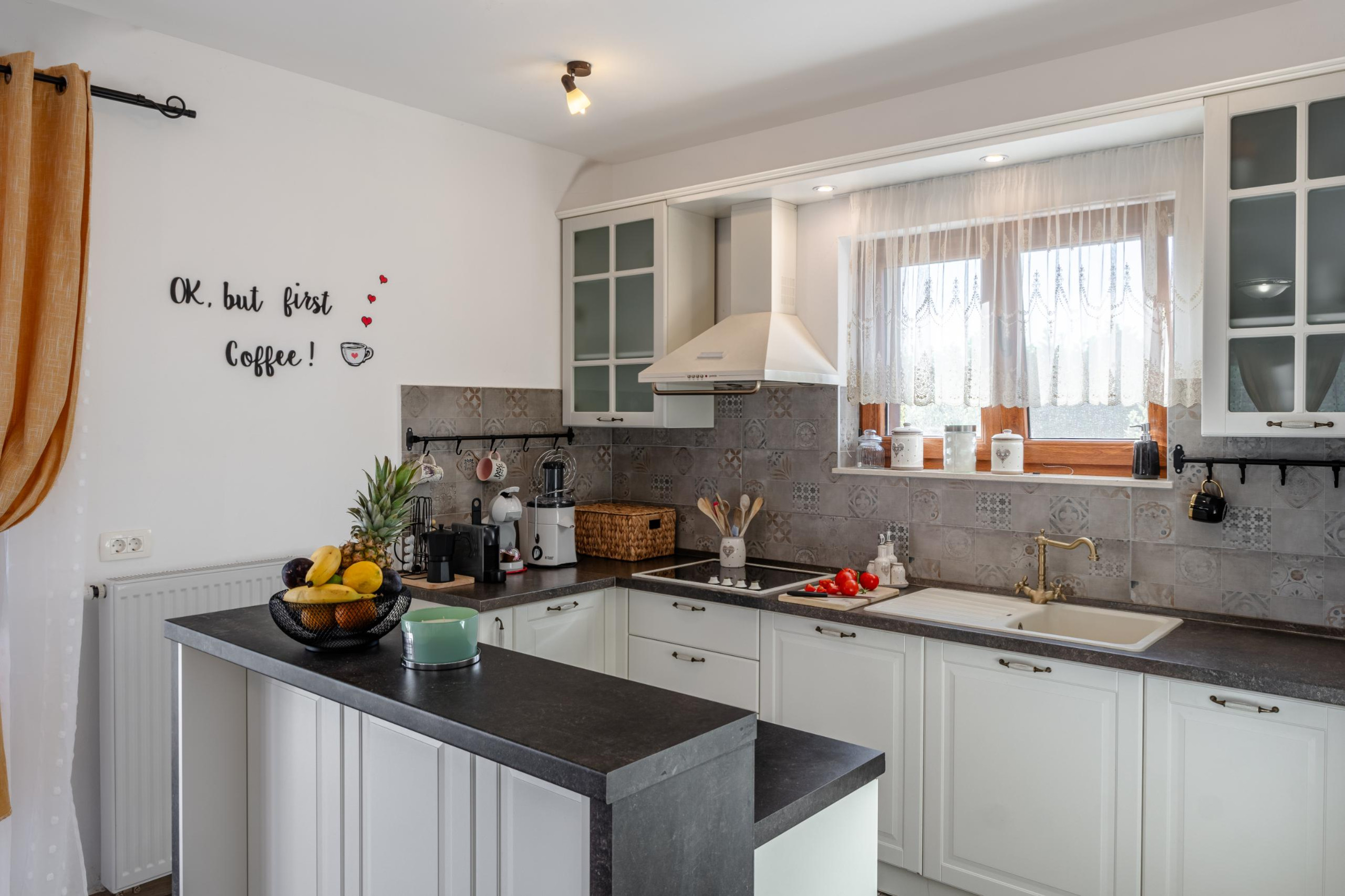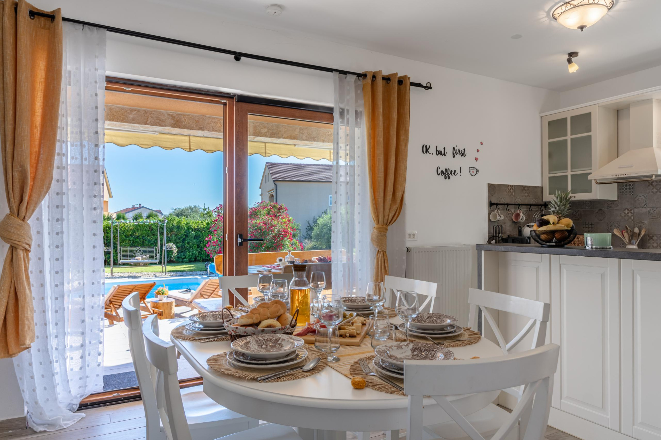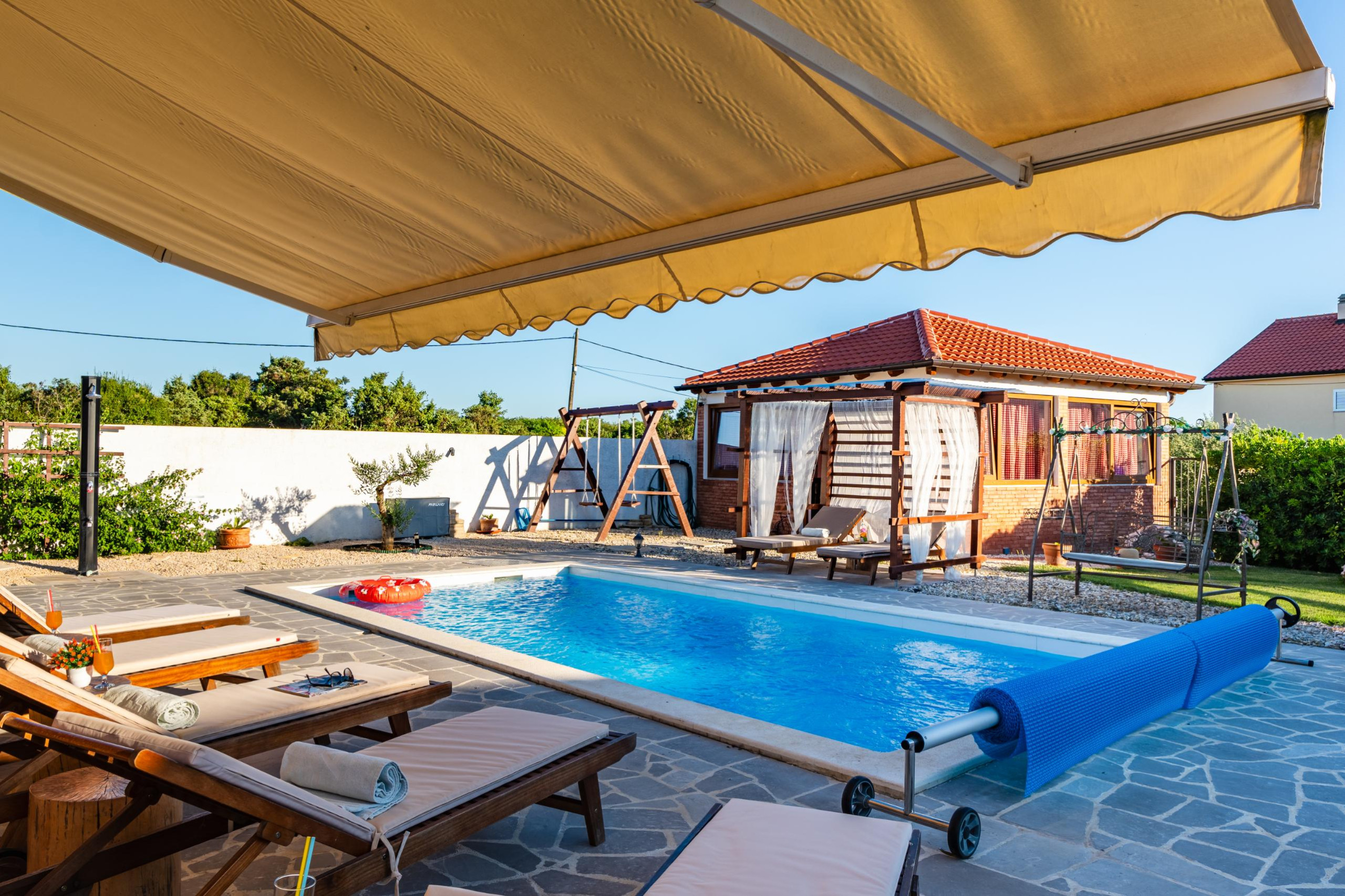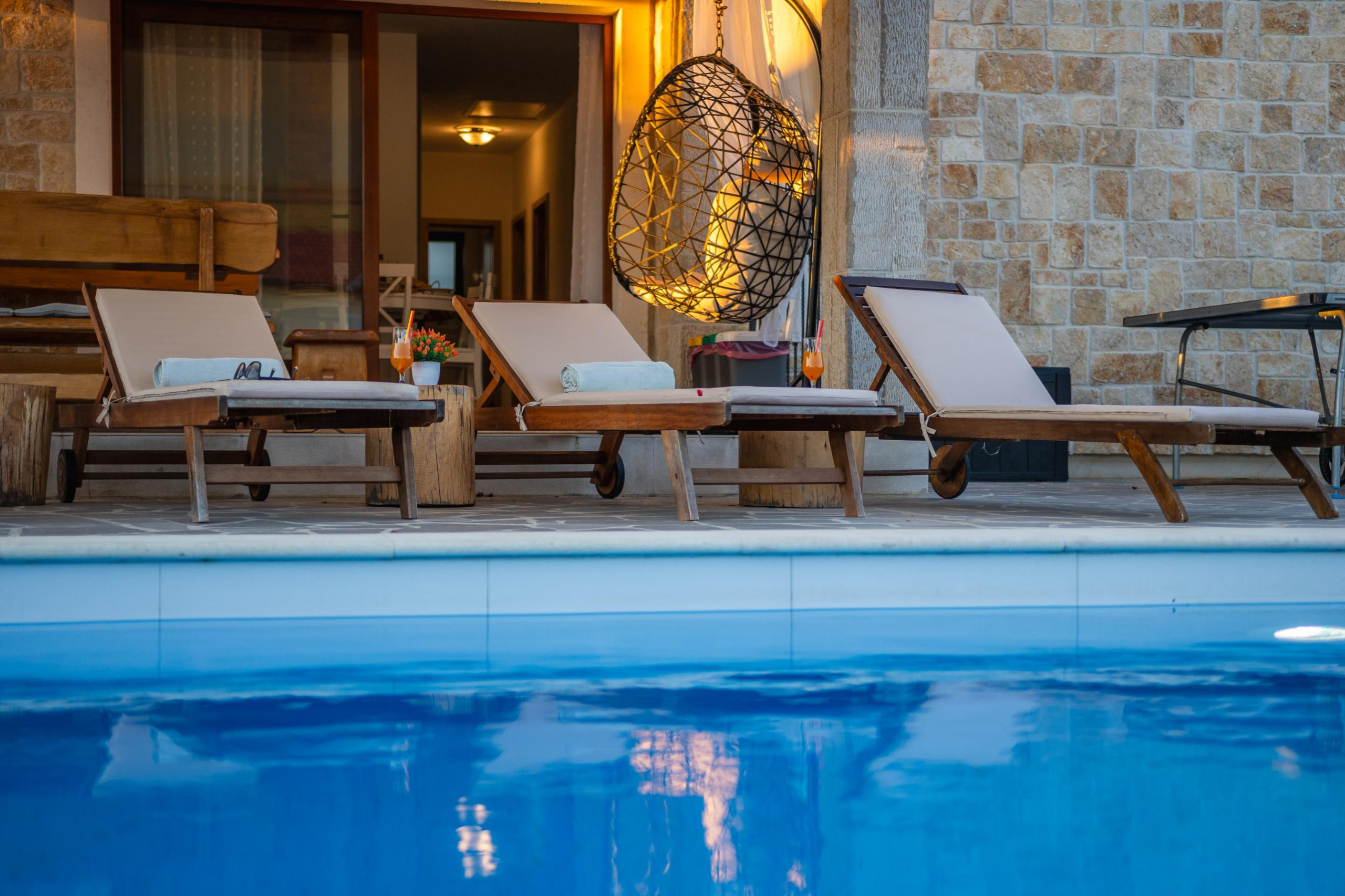 Holiday Home Beti spreads on a beautiful plot with lots of greenery and small botanical and decorative details, as well as many amenities such as a heated pool, covered terrace with a BBQ and dining area, pool table, jacuzzi, a children`s playground and many more.
