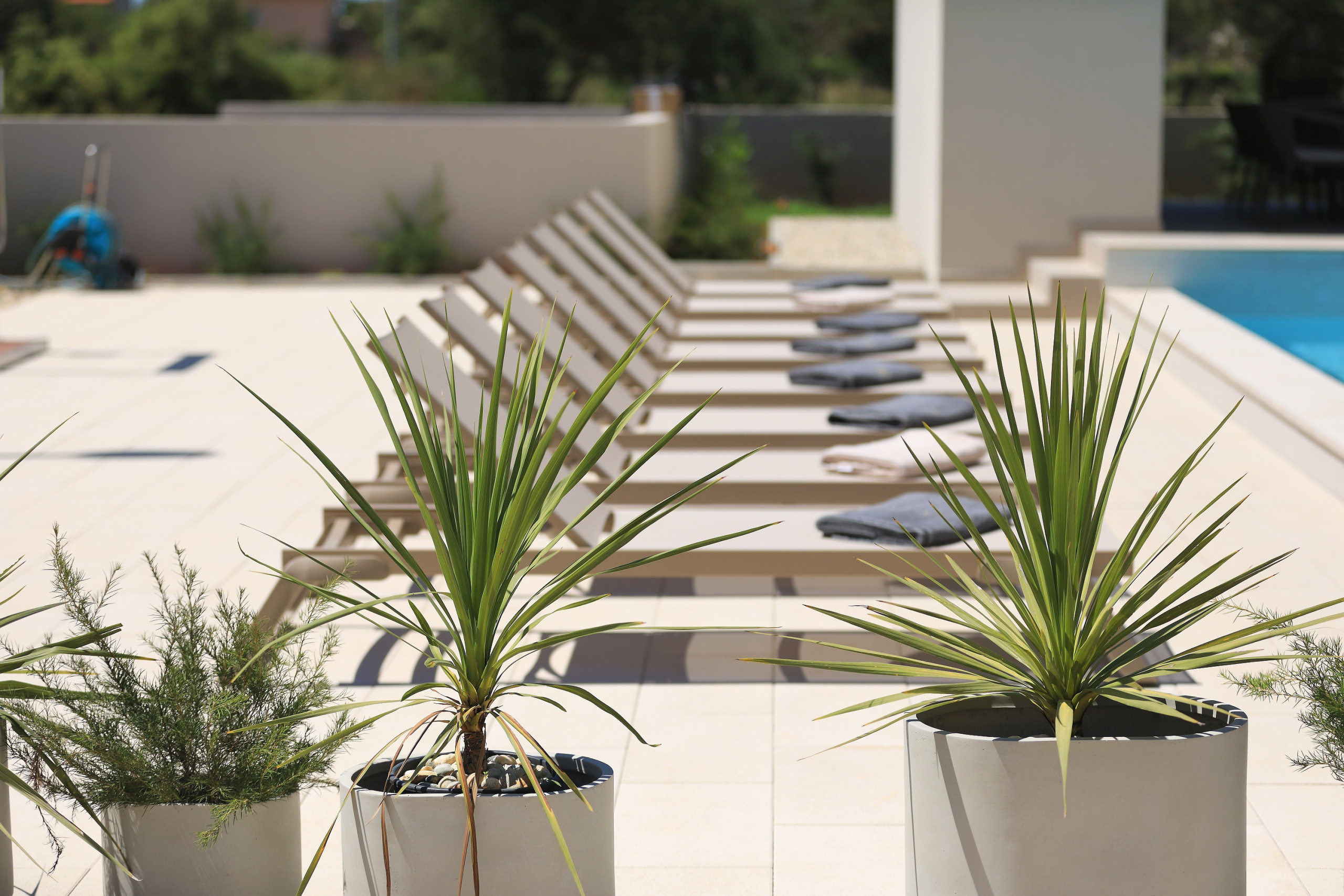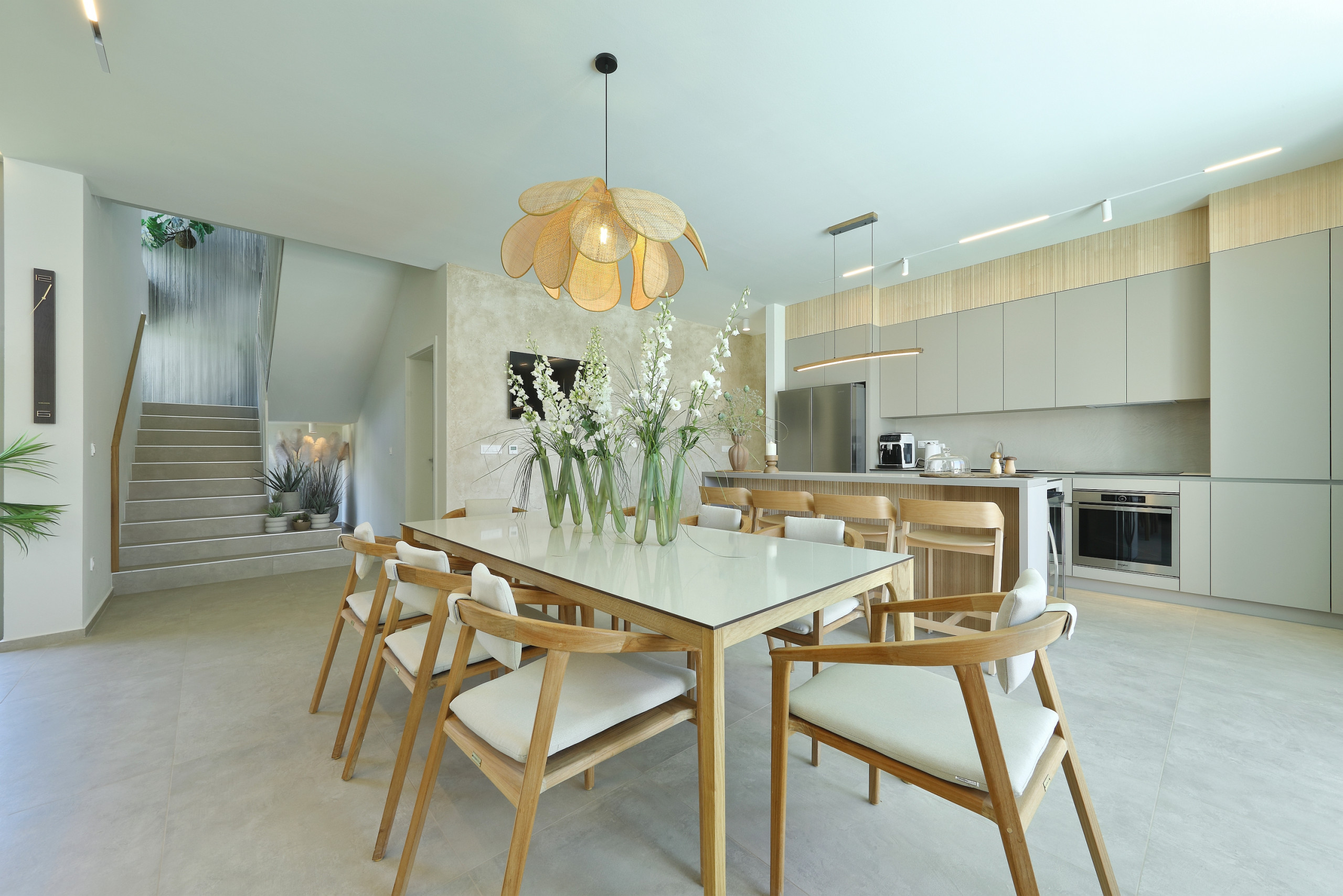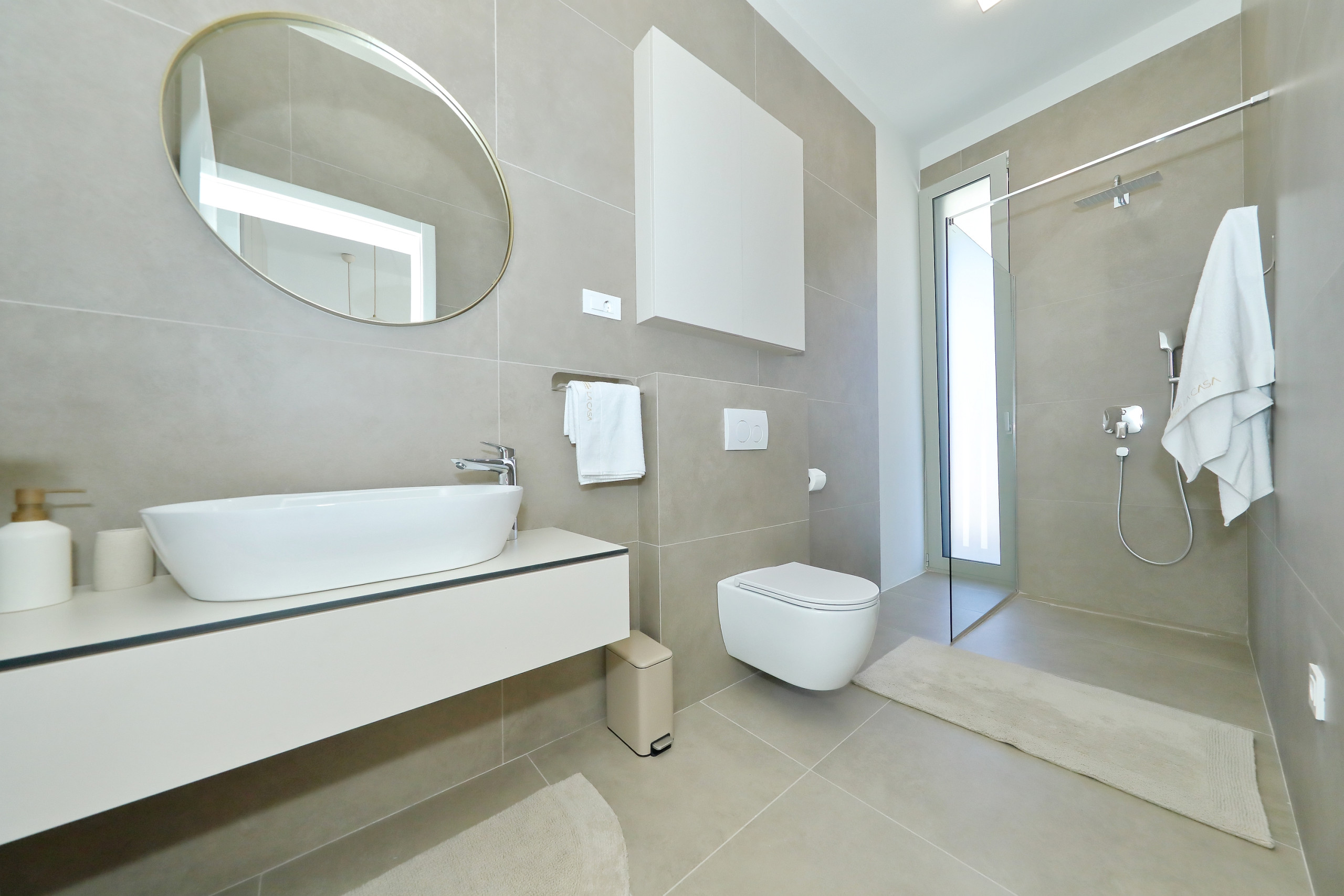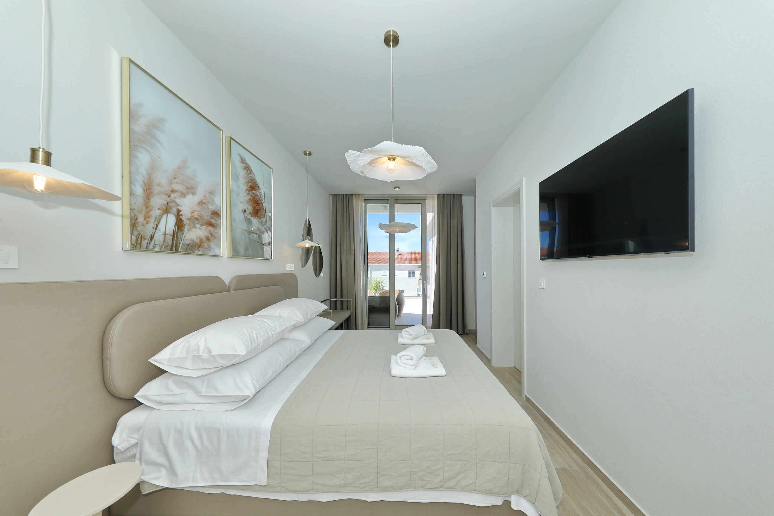 Villa La Casa accommodates up to 8 guests and features four elegant bedrooms – three with double beds and one with two single beds. Each bedroom has its own fully equipped bathroom, ensuring maximum comfort and privacy. All rooms are air-conditioned and come with a TV. The spacious open-plan living room and kitchen exude luxury and contemporary design. The fully equipped kitchen meets the needs of even the most demanding guests, while the stylish living area provides the perfect space for socializing and relaxation. In addition to 4 bathrooms in the bedrooms, guests also have access to 2 separate toilets, one in the living room and the other outside by the outdoor dining area, ensuring maximum comfort and convenience.