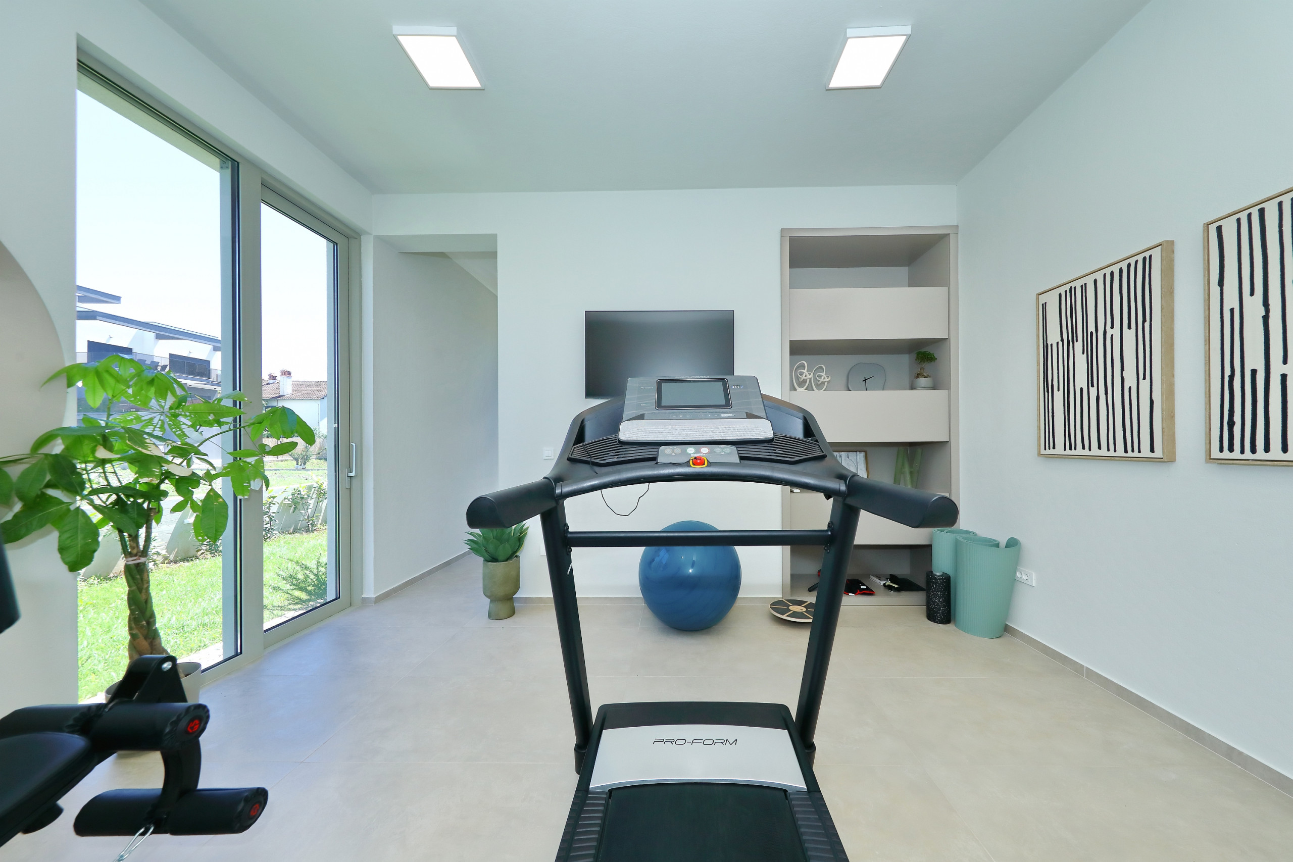 For a complete wellness experience, the villa features a private sauna and an indoor gym with exercise equipment and an additional shower for convenience. Active guests can enjoy badminton (equipment provided), table tennis, and football, while the youngest guests have a playground with a swing, slide, climbing structure, and playhouse.