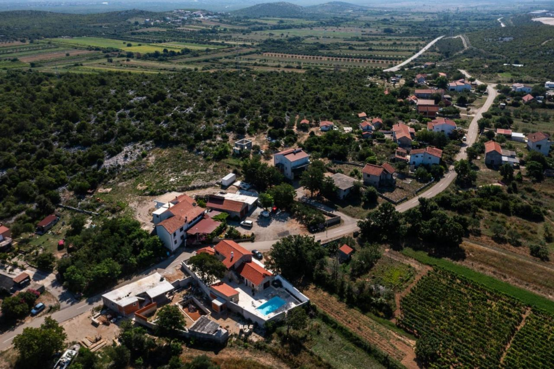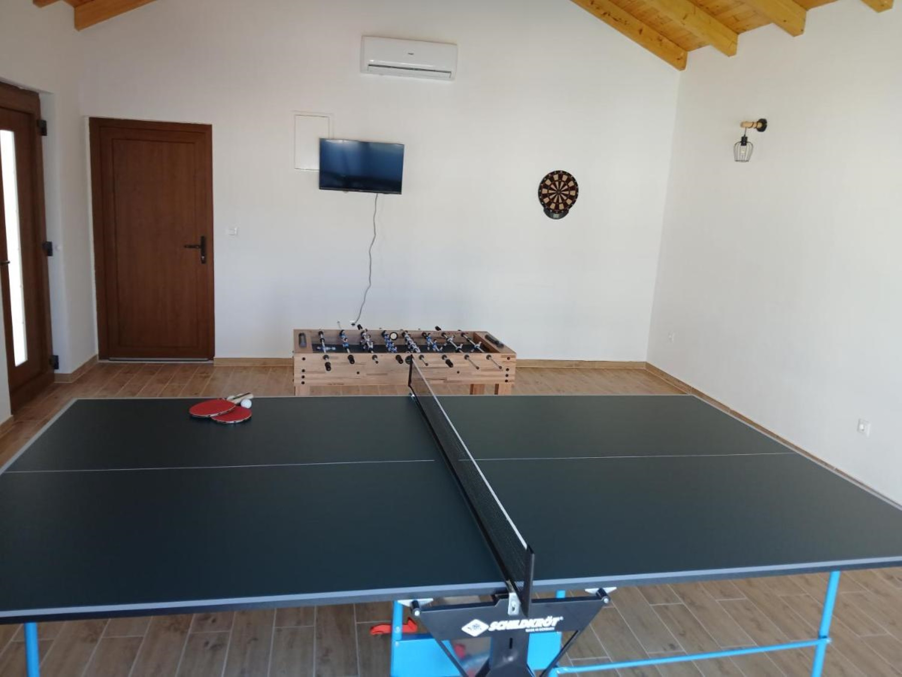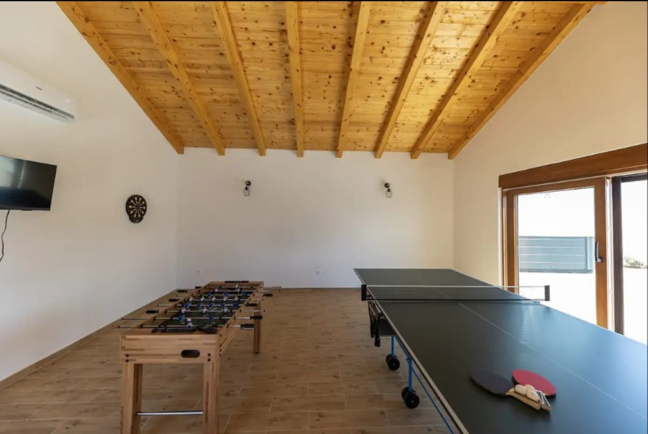The villa's outdoor area is a true oasis for enjoyment. The terrace with a private pool is surrounded by sun loungers, where you can relax and soak up the sun. The experience is completed with a jacuzzi, perfect for four people, and an outdoor shower for refreshing moments. An open-air summer kitchen, fully equipped for preparing meals under the open sky, is perfect for dinners under the stars with family and friends. There is also an outdoor seating area where you can enjoy the tranquility and peace of the village.The villa also has an area with table tennis and football.