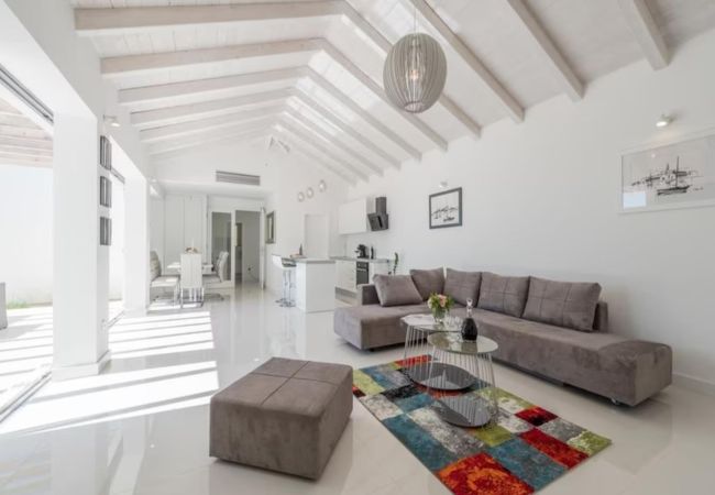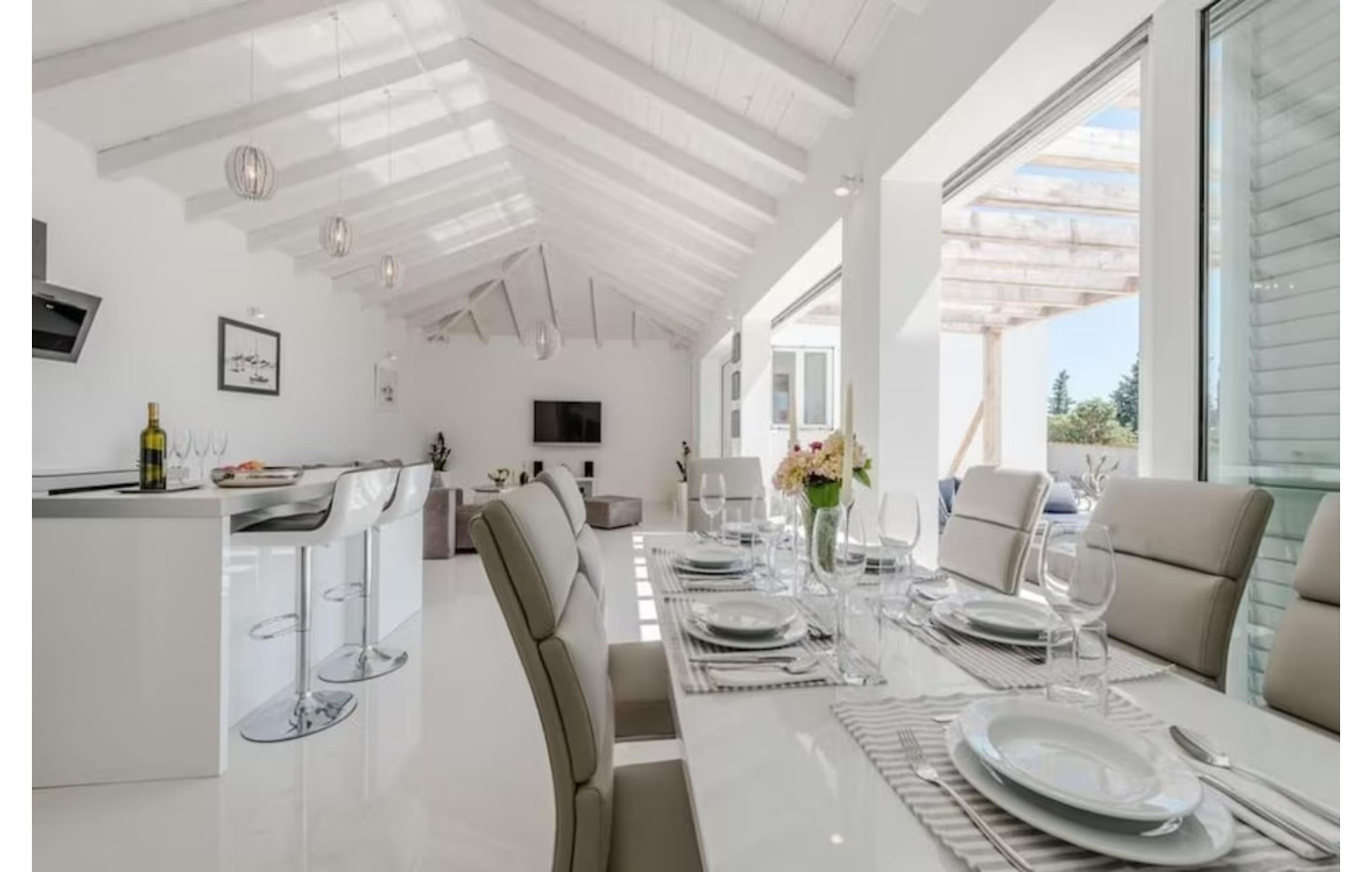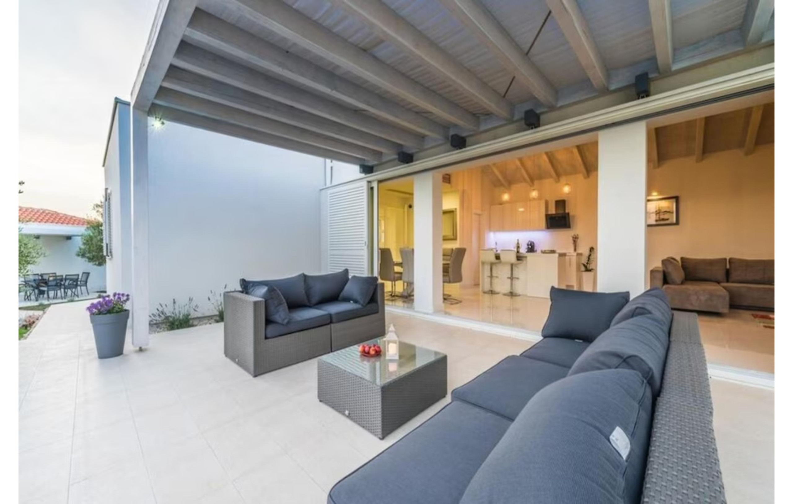 Spanning over 120m², Villa Mia offers a spacious and welcoming interior featuring a fully equipped modern kitchen with a cozy dining area, a comfortable living room, and three inviting bedrooms: one with a queen bed, one with a double bed, and a third with twin beds. With two sleek bathrooms, fast WiFi, TV-SAT, and air conditioning throughout, your comfort is guaranteed. On the ground floor, a charming summer kitchen with a wooden seating area and charcoal grill invites you to enjoy delightful outdoor meals.