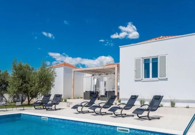 Located in the peaceful village of Debeljak, near Sukošan and only 4 km from the sea, this charming Dalmatian villa is the perfect place for a relaxing holiday with family and friends. Surrounded by greenery and nature, and positioned as the last house in the street, it offers guests privacy and a tranquil atmosphere. The villa can accommodate up to 10 guests.