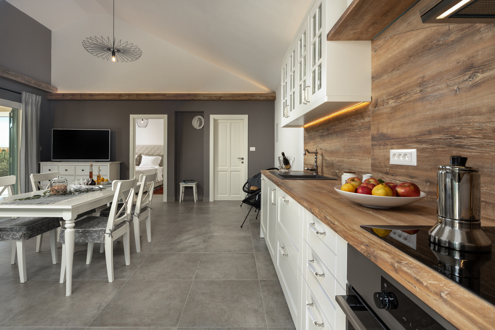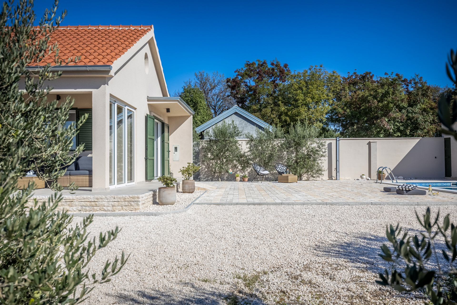 This Villa offers amenities which will make you forget the the hustle and bustle of a city while providing an uninterrupted connection with the typical dalmatian flora. The villa has an orchard and an olive grove full of ripe figs, cherries, apricots, pears, jujubes and rose hips –you can help yourselves to all of them and enjoy the fresh fruits surrounding you.