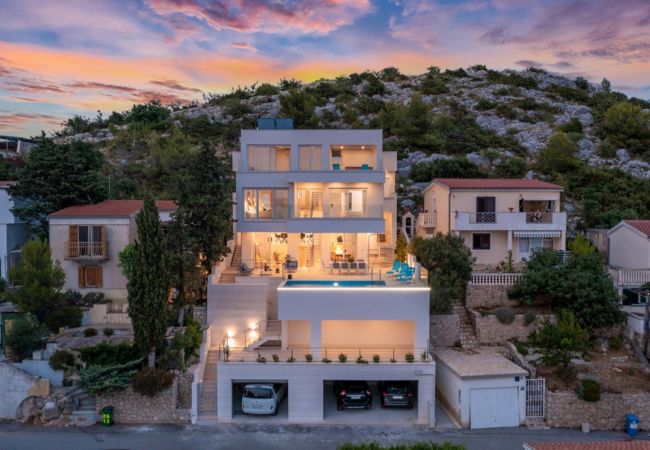 The exterior of the villa offers a terrace with a pool of 18 m², surrounded by deckchairs for sunbathing. The outdoor charcoal or wood grill allows you to prepare Dalmatian specialties, and the outdoor table for ten people is perfect for outdoor meals with an enchanting view of nature and the sea.
