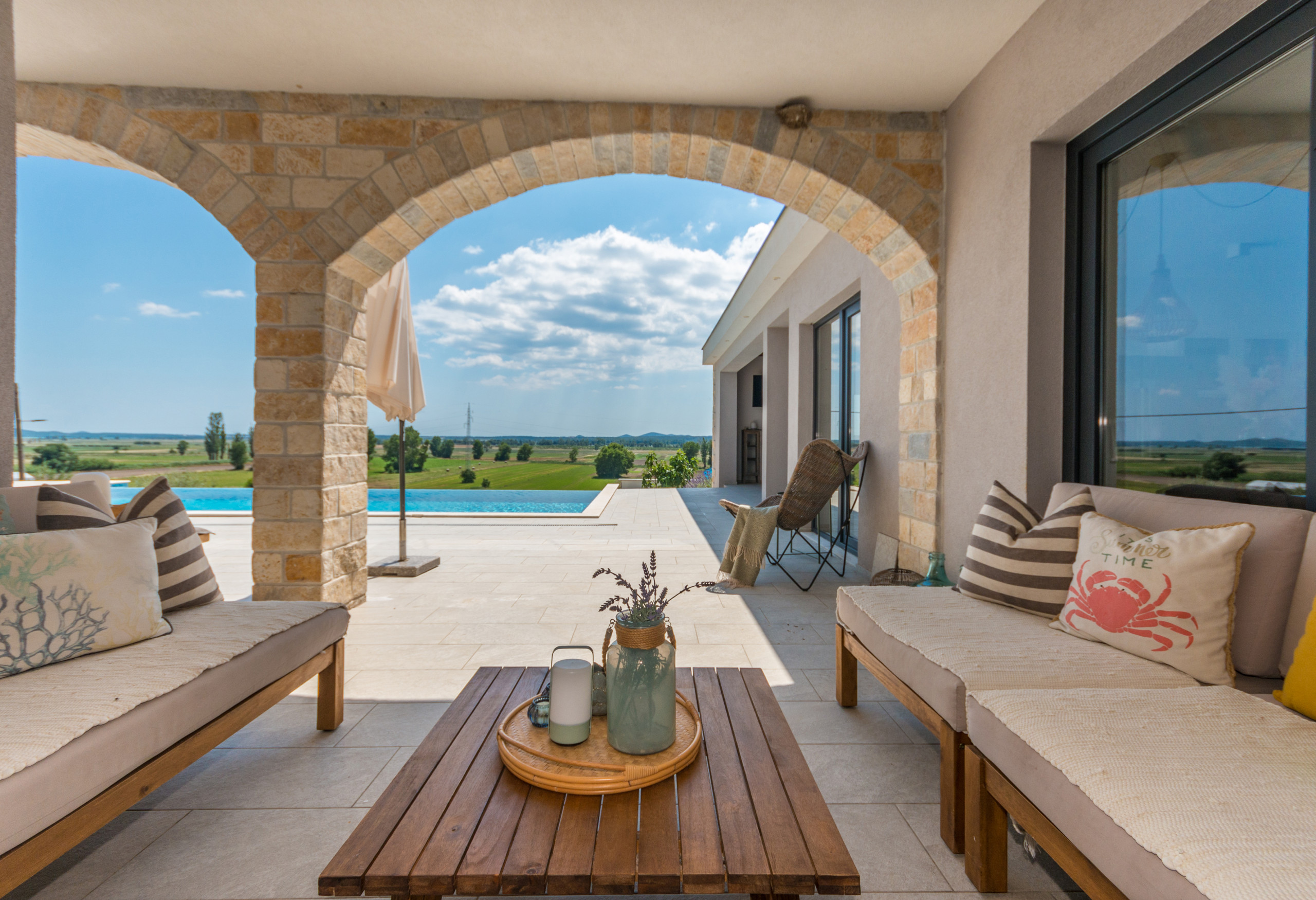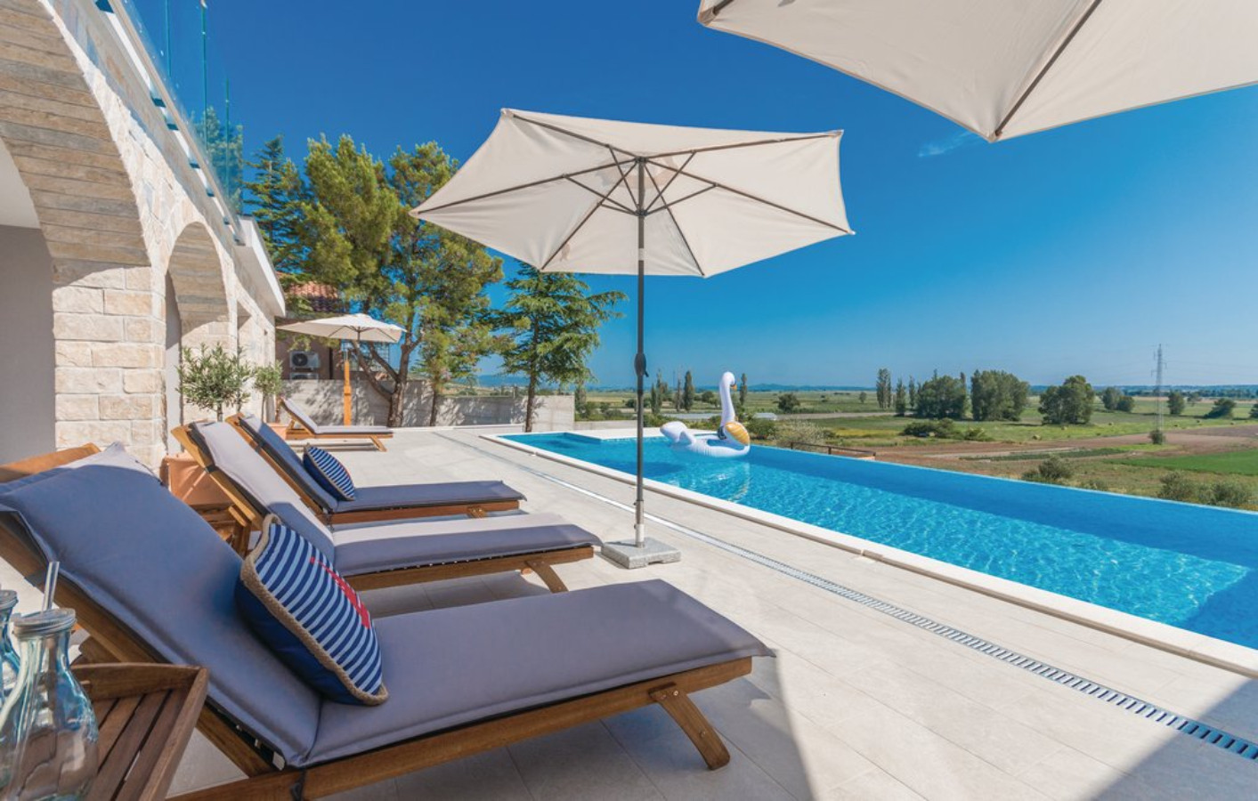 The villa's location offers the perfect balance of peace and proximity to attractions: the Vrana ornithological reserve, cycling trails and the famous Kamenjak viewpoint are nearby. Also nearby are the royal town of Biograd, a spectacular amusement park and the city of Zadar with its rich history and unique attractions.