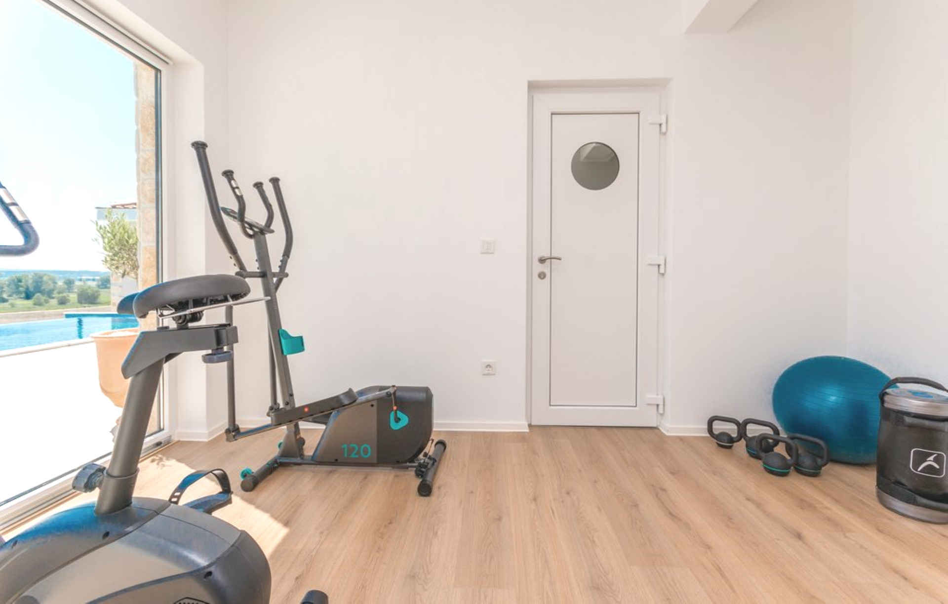The villa consists of 4 elegant bedrooms with double beds, 5 modern bathrooms, a large bright living room and a fully equipped kitchen. For a complete wellness experience, there is a sauna, jacuzzi and a private gym. The youngest guests will be delighted by a special playroom with toys, and a cot and high chair are also available, making the villa an excellent choice for families.