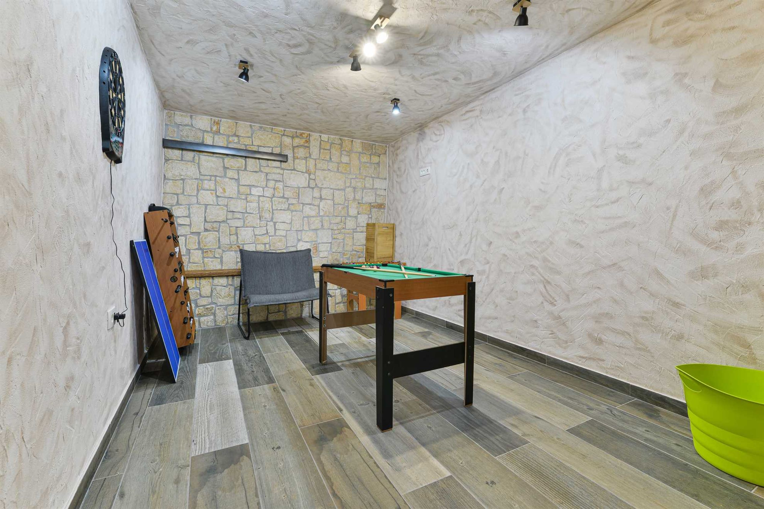 A special highlight of the villa is the authentic Dalmatian tavern featuring a large barbecue and an additional fully equipped kitchen, making it an ideal space for long evenings and home-cooked meals with family and friends. For entertainment, guests can enjoy table football, billiards and darts.