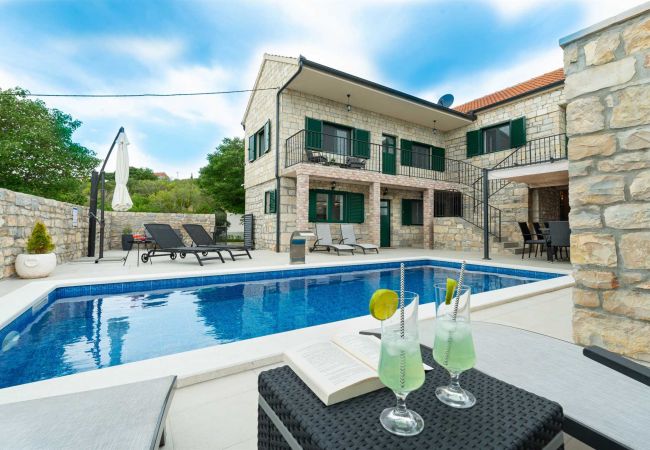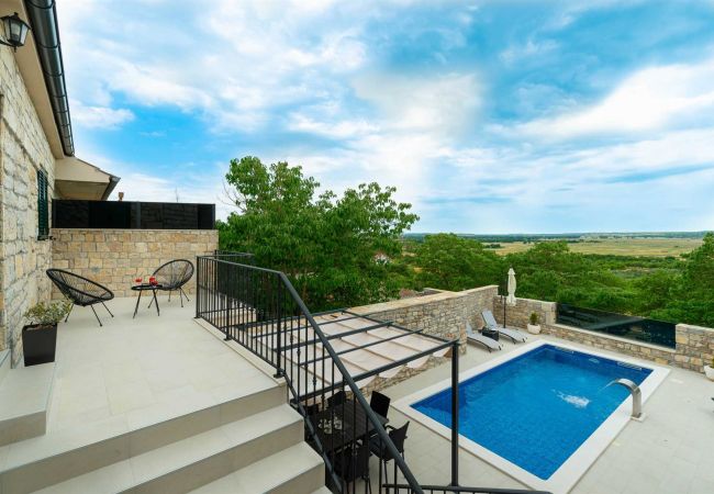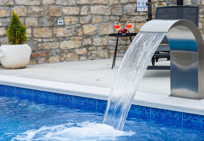 Welcome to the stone villa Didovi Snovi – a place where traditional charm meets modern comfort, and the peaceful Dalmatian countryside becomes the backdrop for an unforgettable holiday in Croatia. This carefully designed holiday home impresses with its elegant interior, spacious outdoor area and open views of green meadows, perfect for creating lasting memories with family and friends.