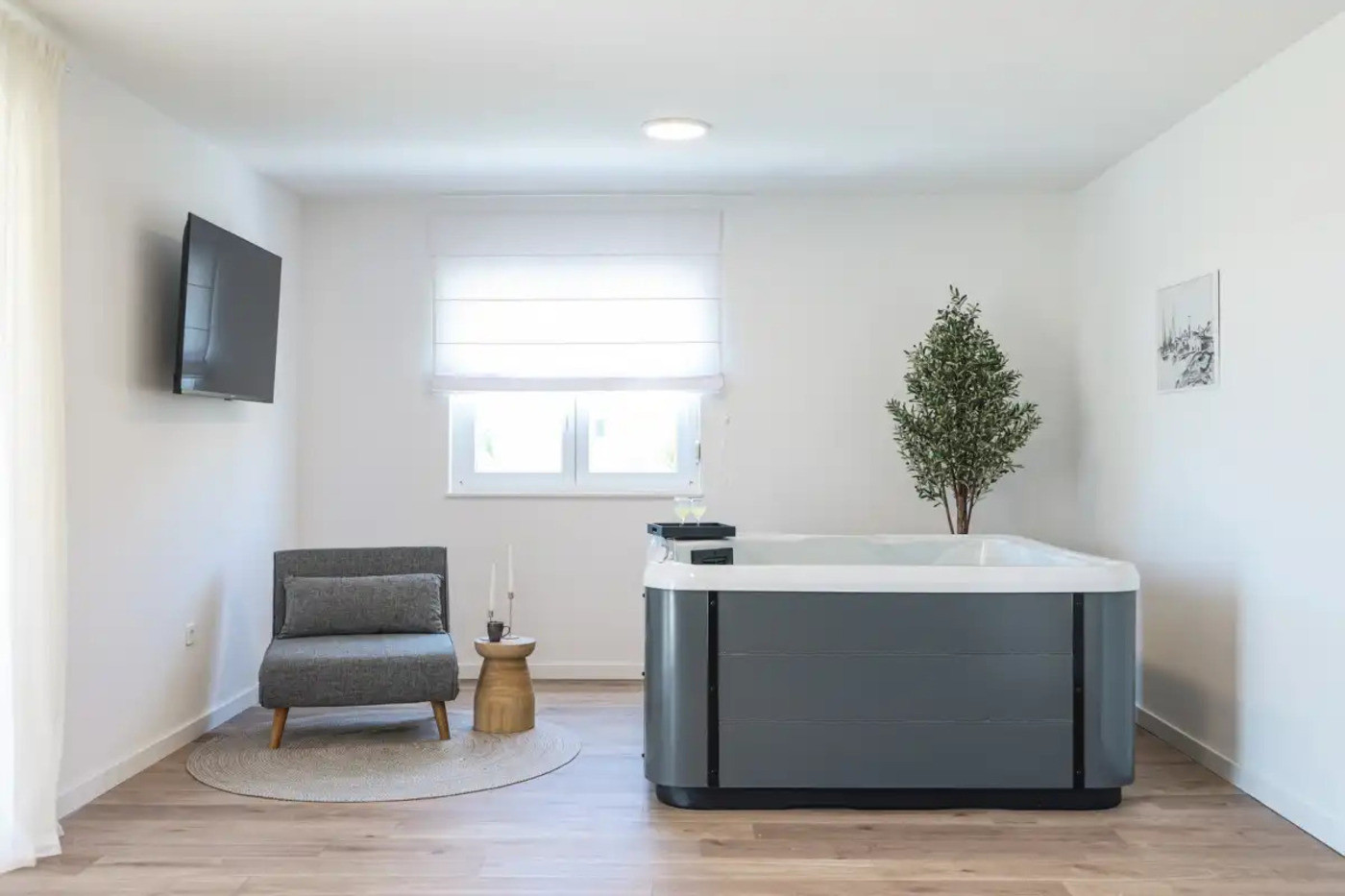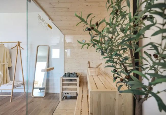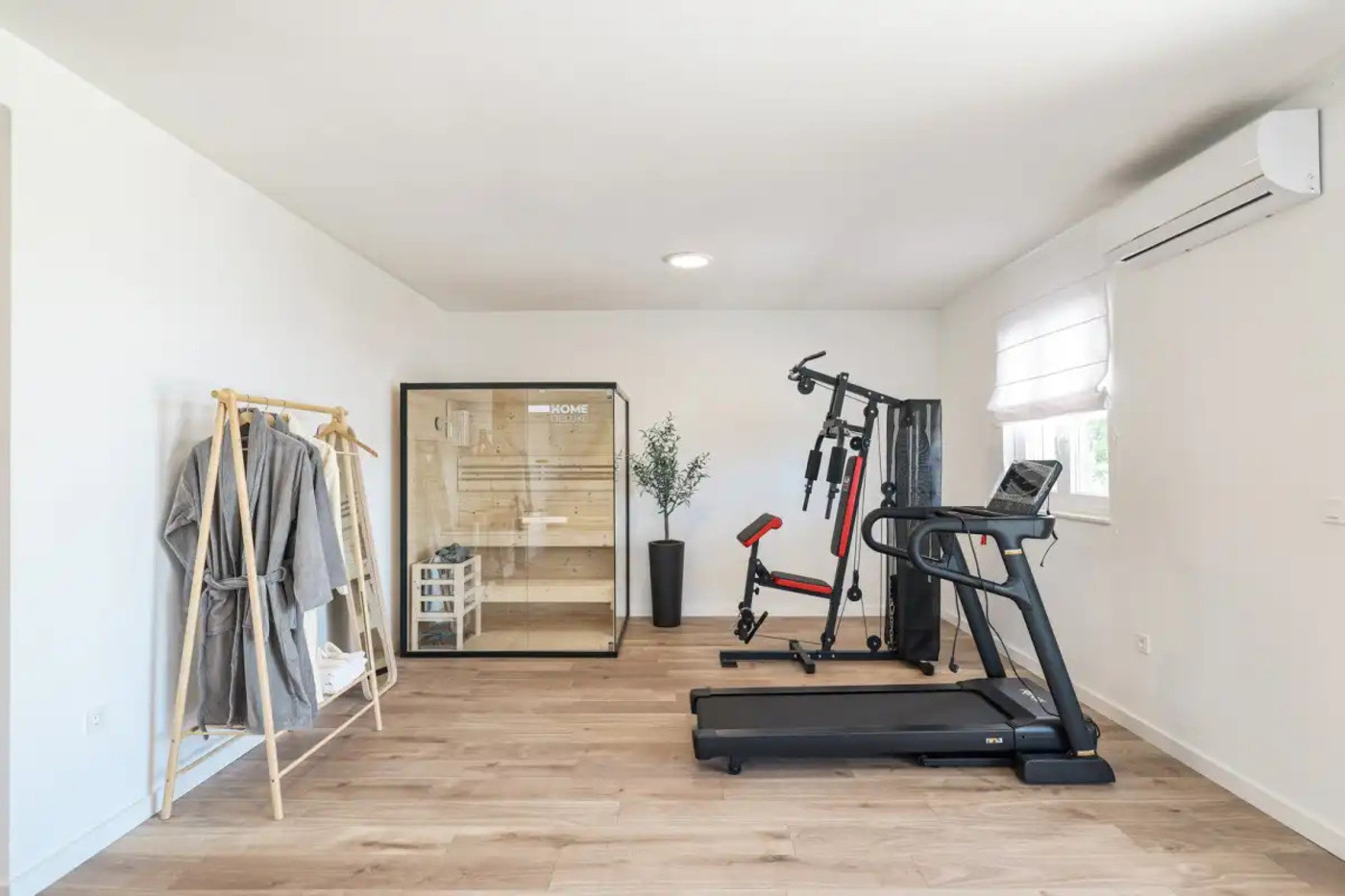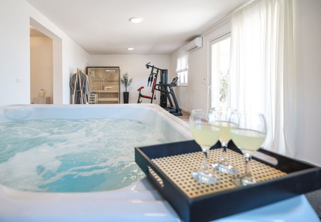 Spreading over 230 m², it can comfortably accommodate up to 9 guests. With four air-conditioned bedrooms, a spacious living room, a fully equipped kitchen and additional amenities such as a SMART TV with Netflix, Villa Grota offers the comfort of home in a Mediterranean setting. Special emphasis has been placed on the suitability for families with children - the villa includes a specially designed play corner, and the playroom with a sofa bed offers a safe and fun space for the youngest. This ensures that children have their own space to play and have fun, while parents can relax in the wellness area with a jacuzzi, sauna and exercise equipment, which contributes to the ultimate relaxation.