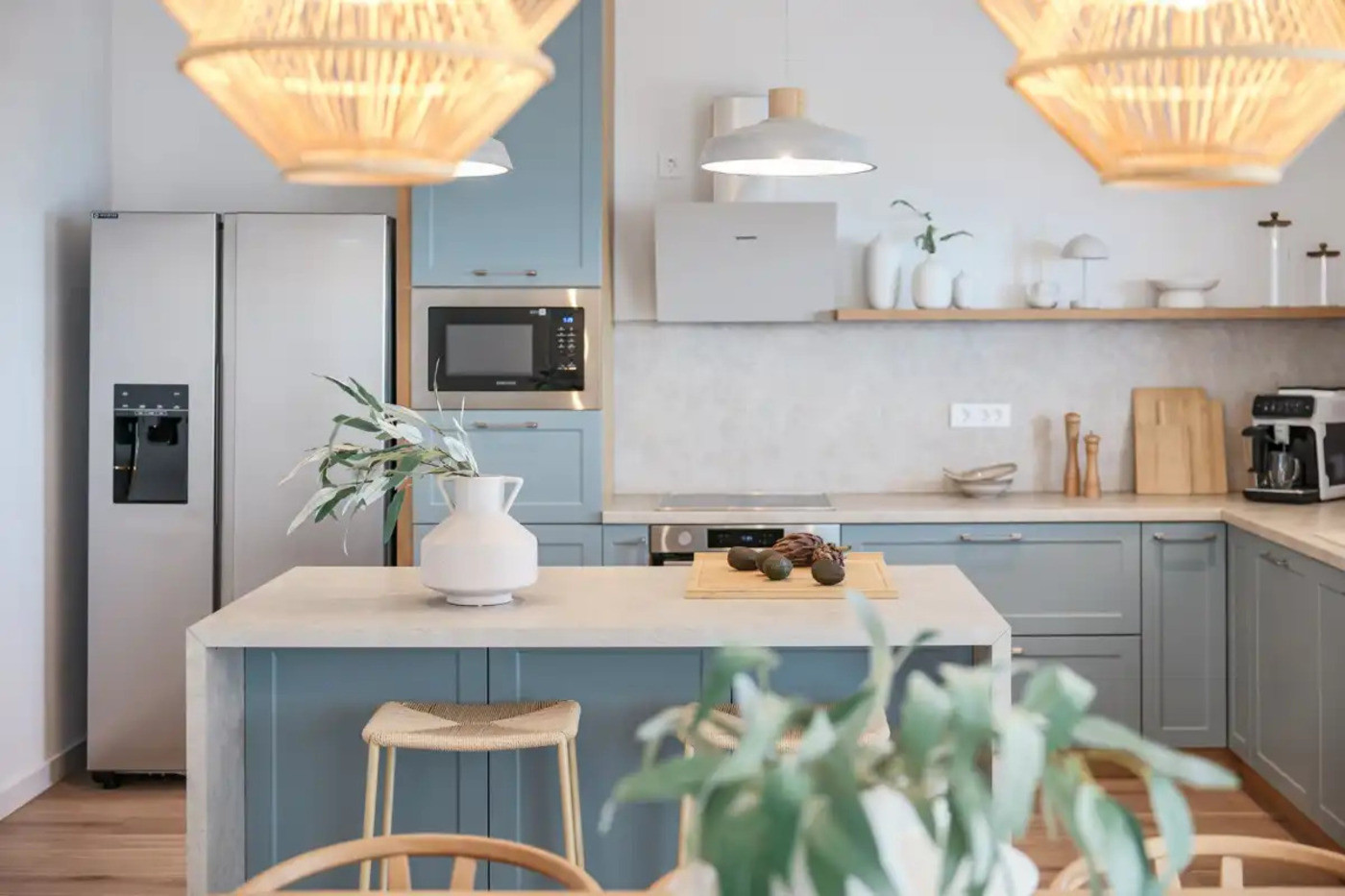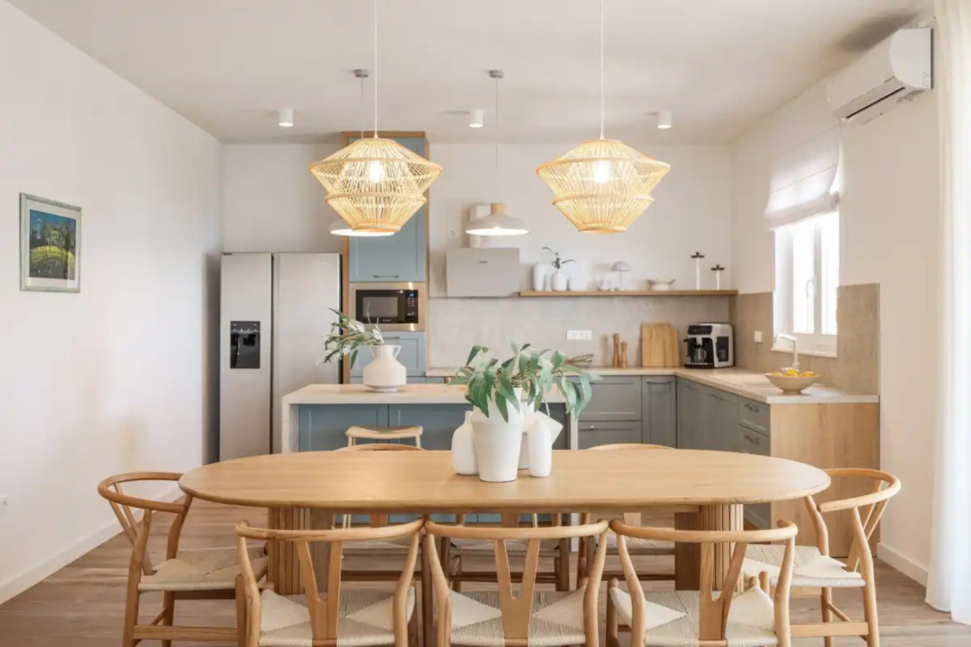 The living room is spacious and bright, with large windows providing plenty of natural light. The modern kitchen is fully equipped with all the necessary appliances and accessories, which allows you to prepare delicious meals that you can enjoy in the dining room or on the terrace.