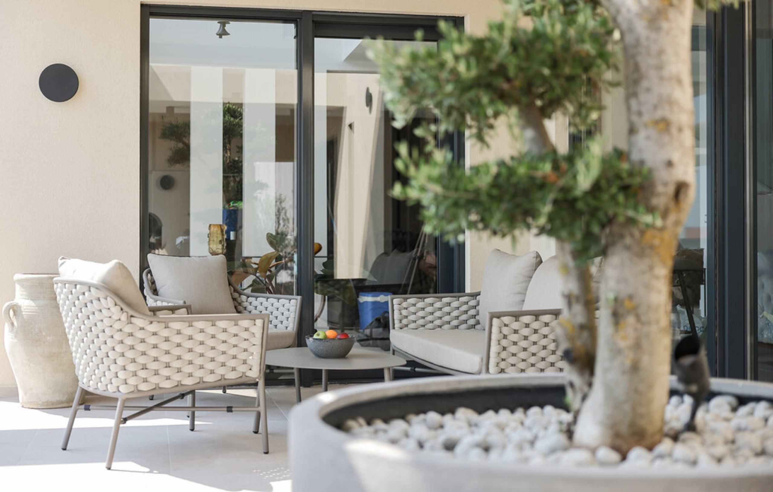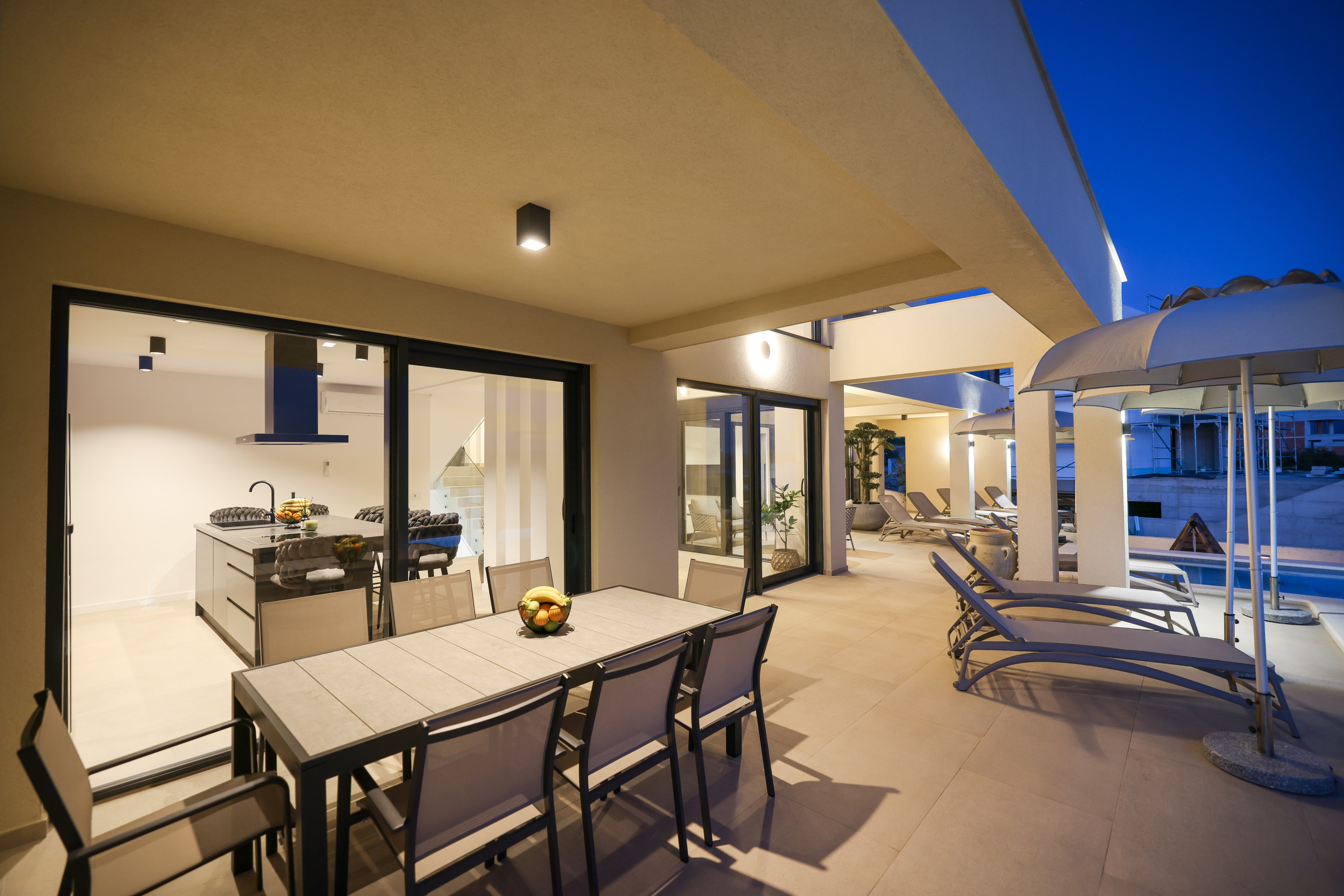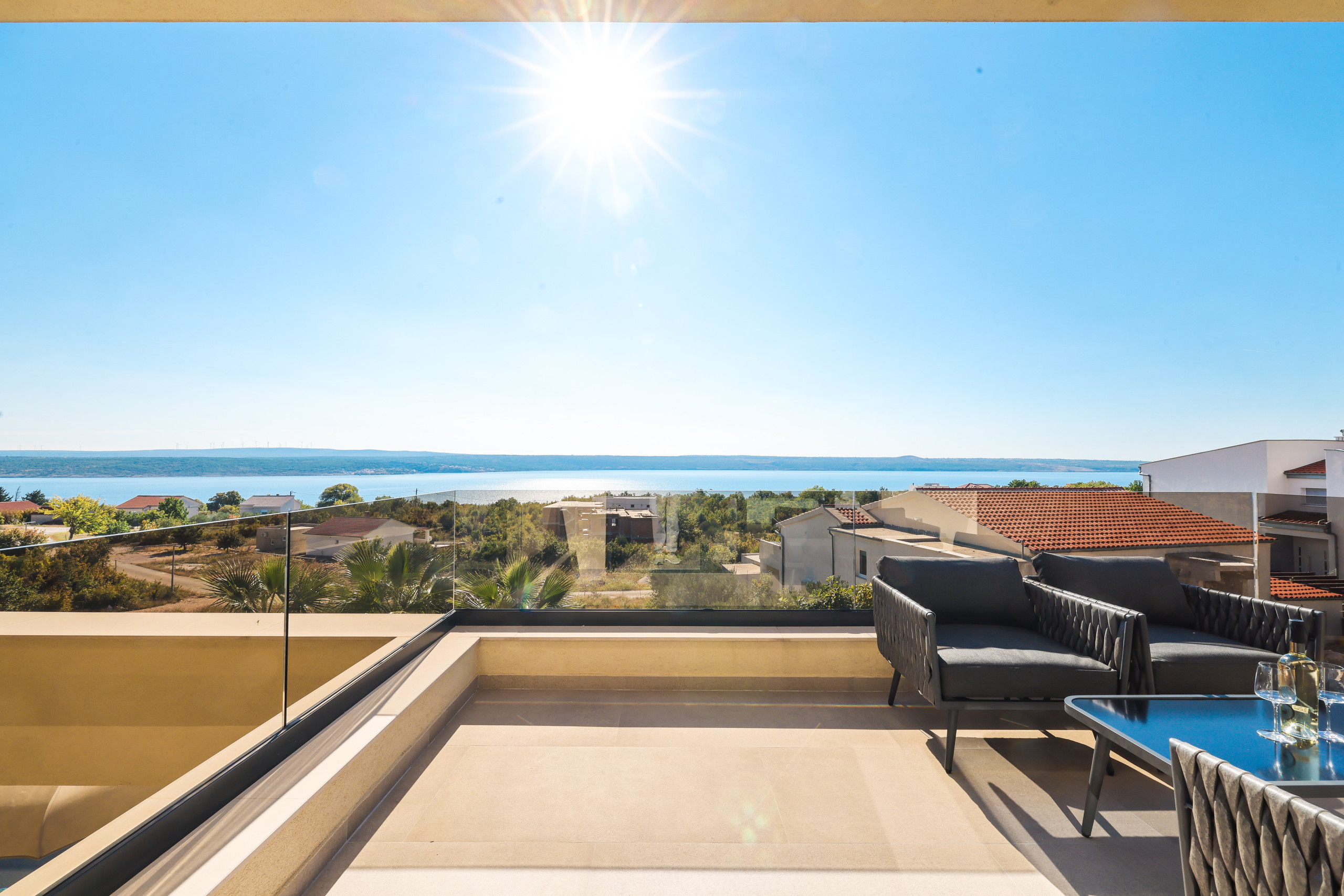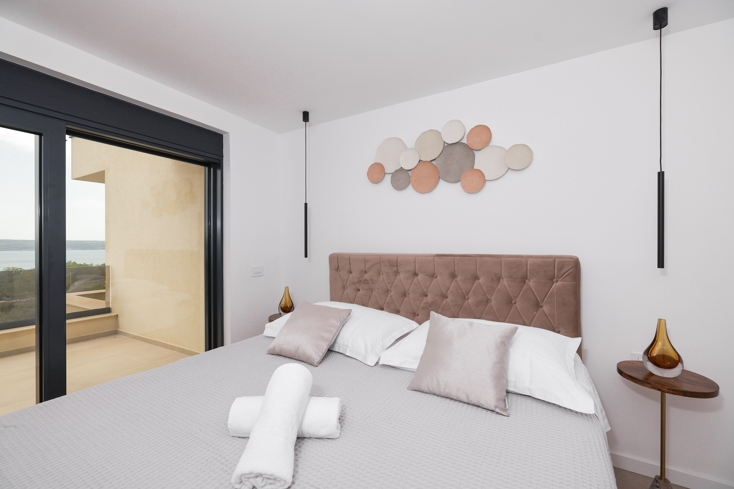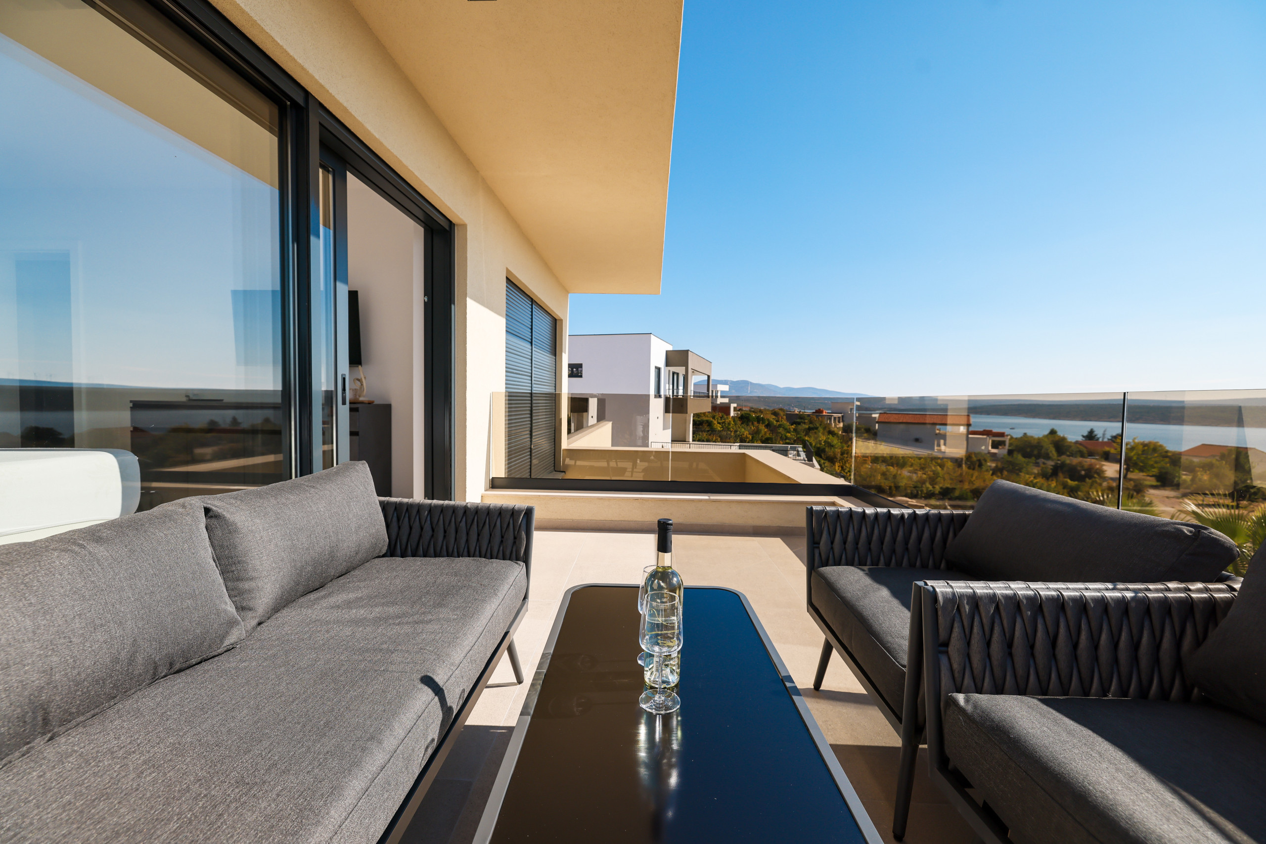 The villa Novue can accommodate up to 10 people, it is ideal for larger families or groups of friends. It contains four spacious bedrooms, each equipped with comfortable double beds and a private bathroom with shower. In the living room there is a large sofa that can be used as an extra bed for two people, providing additional flexibility in accommodating guests.