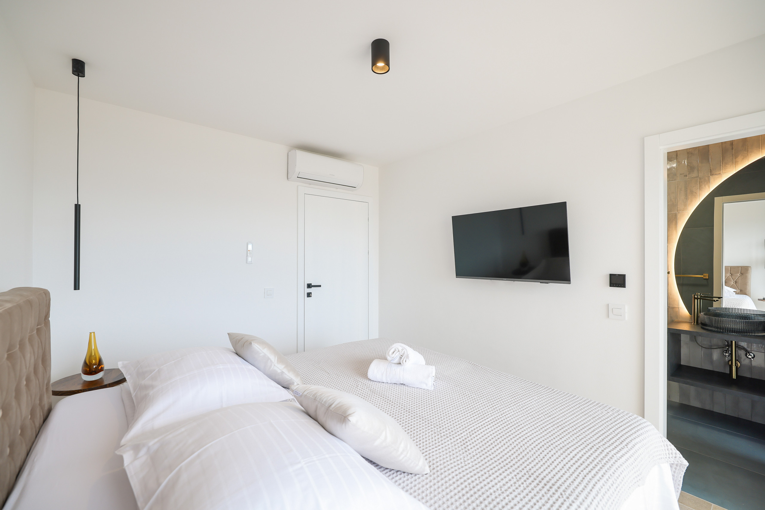 On an area of 220 m², there are four modern bedrooms, each with its own bathroom, ensuring maximum privacy and comfort for each guest.