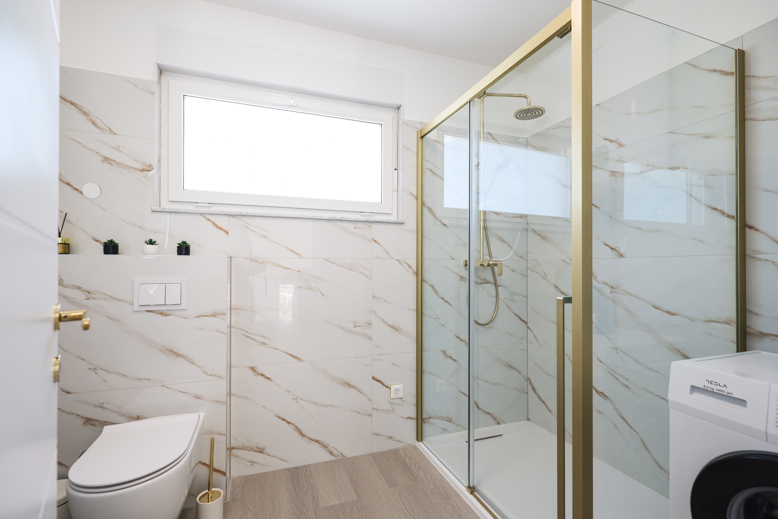 Guests have access to two bathrooms with showers, one of which includes a washing machine.