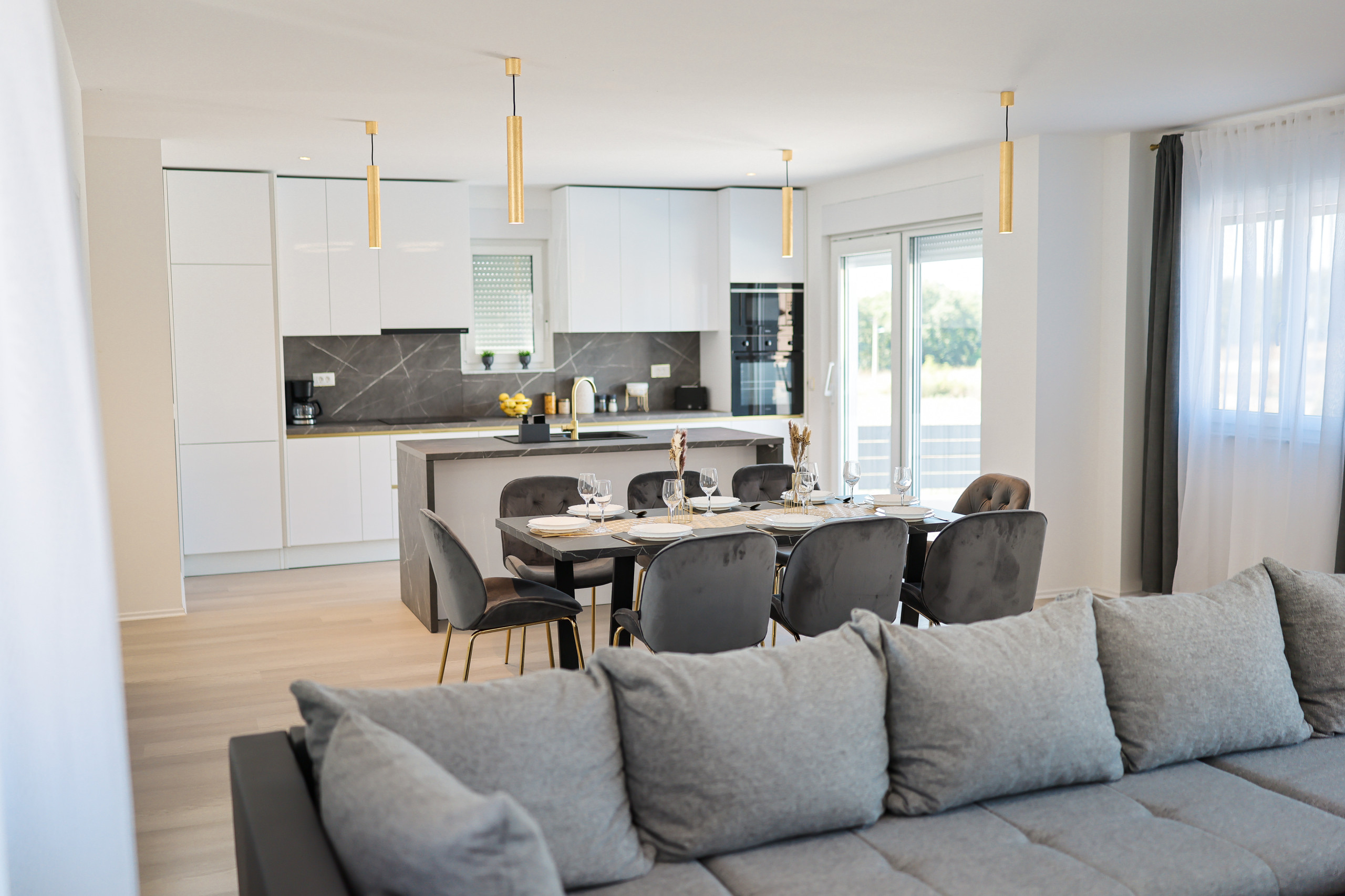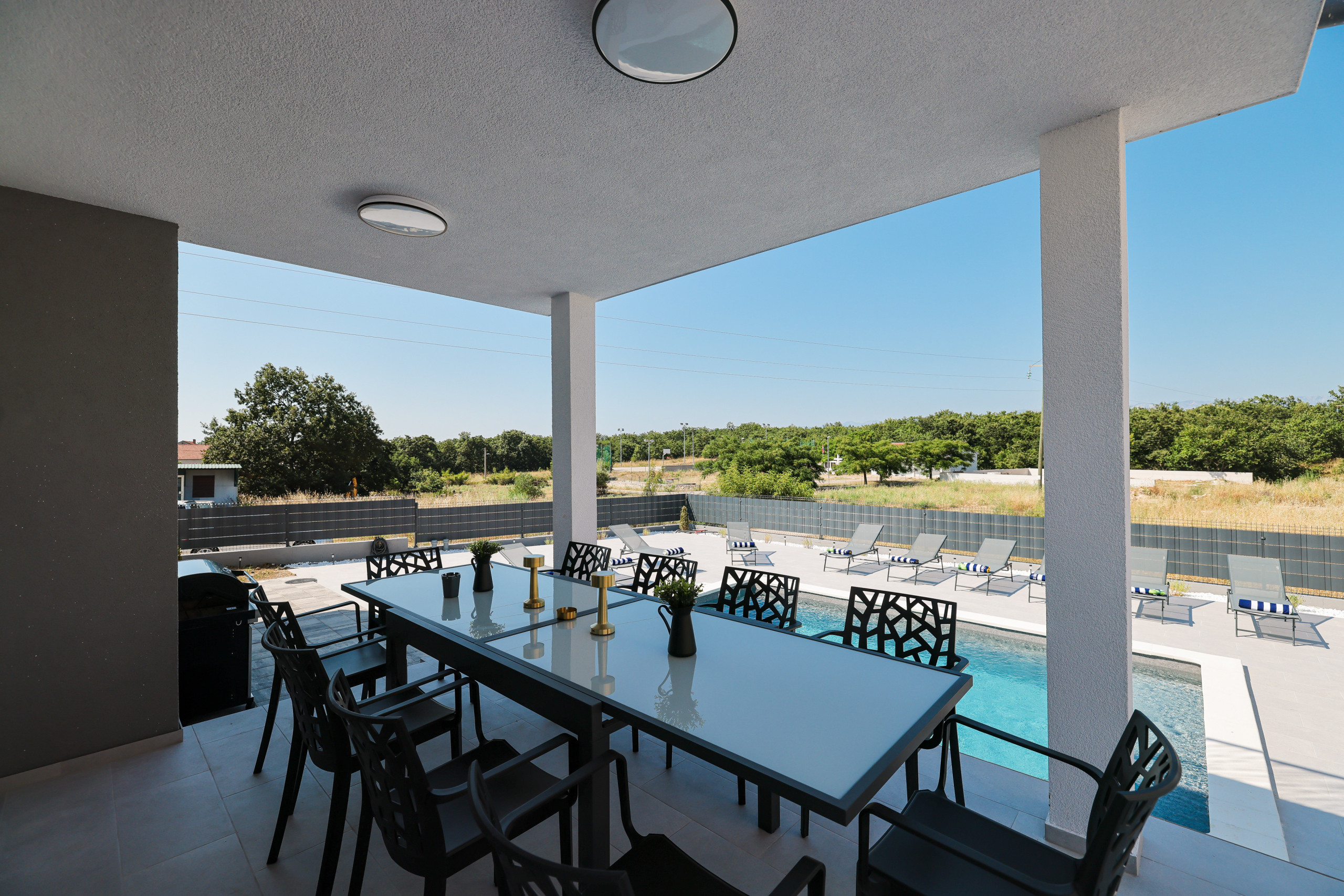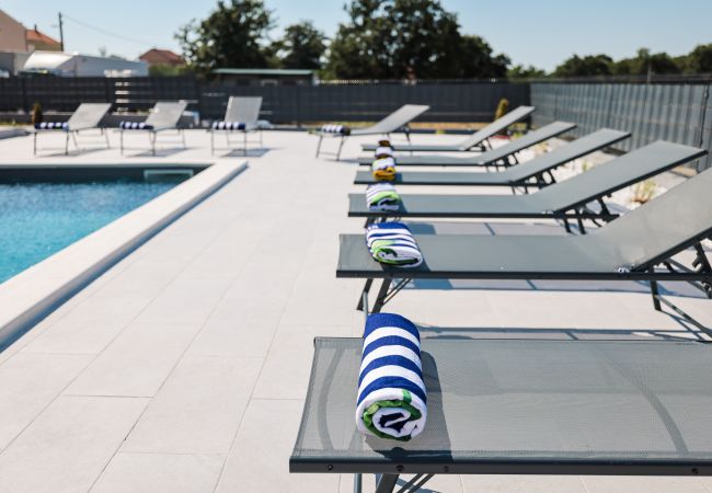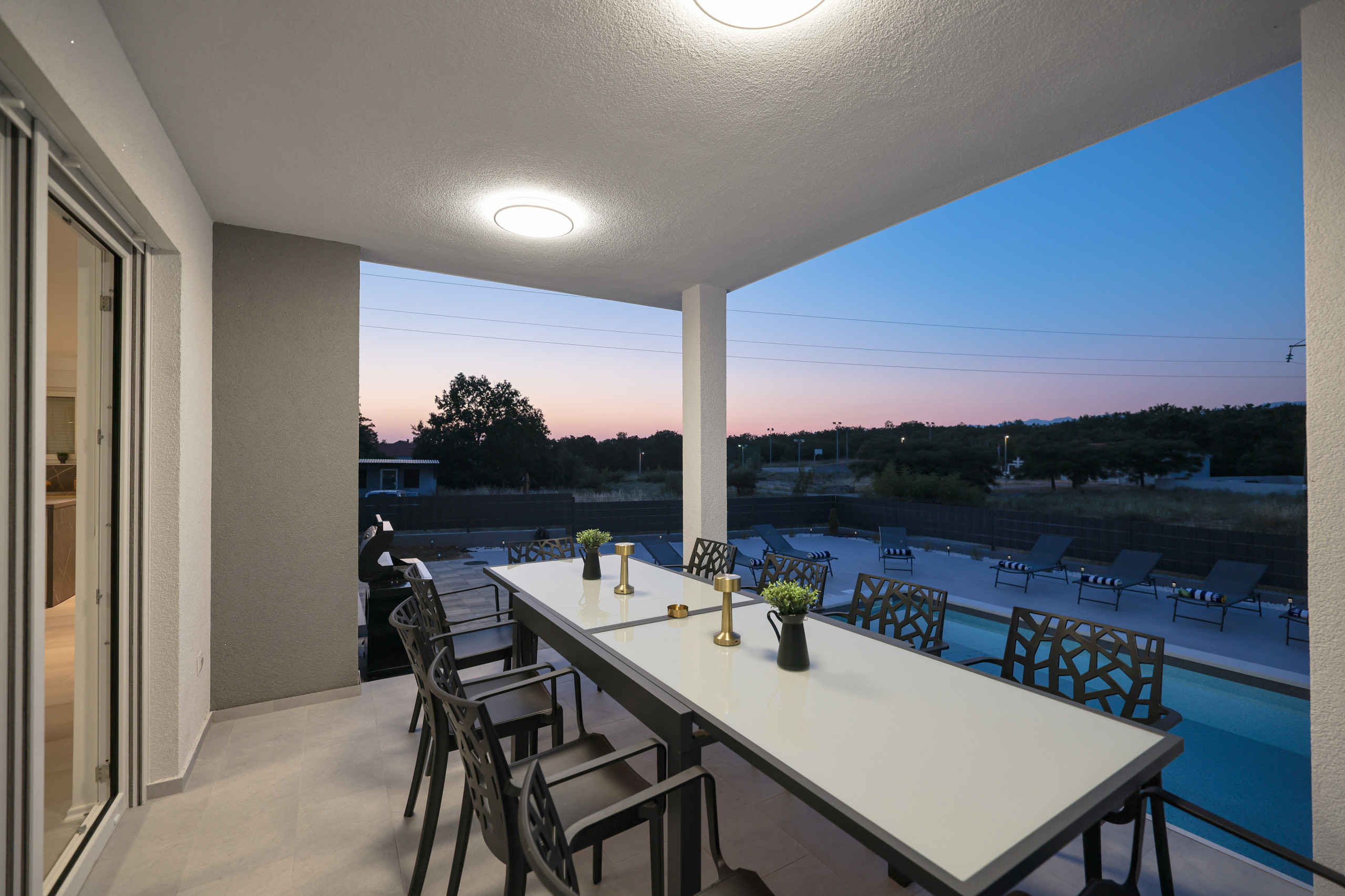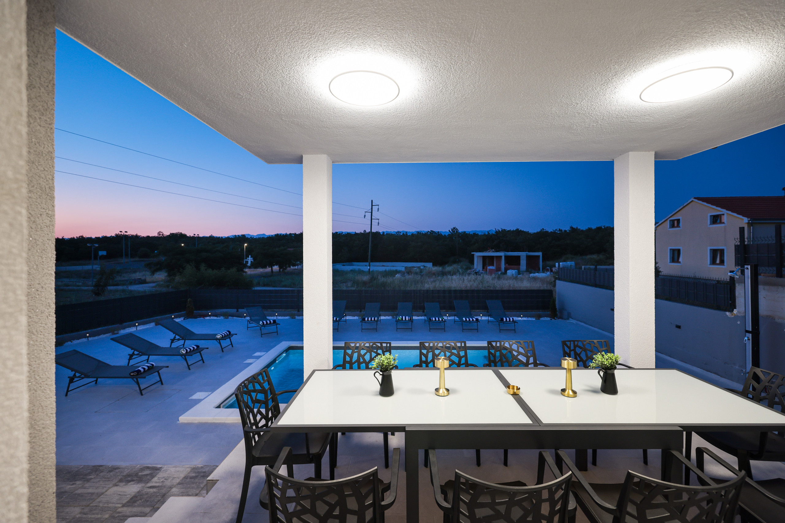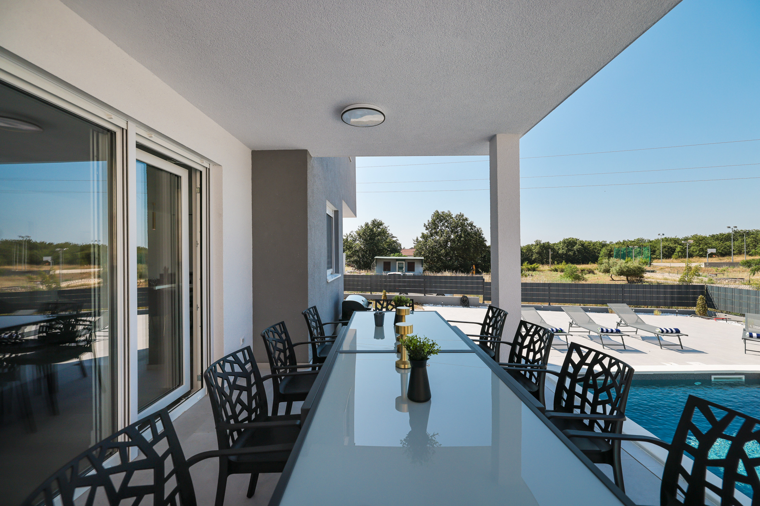 Located in the peaceful village of Murvica, just a few minutes’ drive from historic Zadar, this beautiful and spacious villa provides the perfect retreat for relaxation, fun and making unforgettable memories. With a spacious garden of 1,114 m², the villa offers complete privacy and comfort for up to 12 guests in four elegantly decorated double bedrooms, each with its own modern bathroom. Enjoy cooking in the fully equipped open-plan kitchen, sharing meals in the cozy dining room or relaxing in the contemporary living room that leads directly to the terrace – ideal for your first morning coffee with the sounds of nature. The outdoor area delights with a large heated swimming pool, modern sun loungers, Mediterranean greenery and a top-notch BBQ station with a covered dining area – perfect for enjoying delicious meals with family and friends. Additional magic is added to the stay by numerous entertainment facilities: a basketball court, an outdoor children’s playground, as well as an indoor area with table tennis, billiards and darts, which guarantee hours of laughter and socializing. Surrounded by a quiet family neighborhood, this villa provides the ideal blend of luxury, comfort, and fun for all generations.