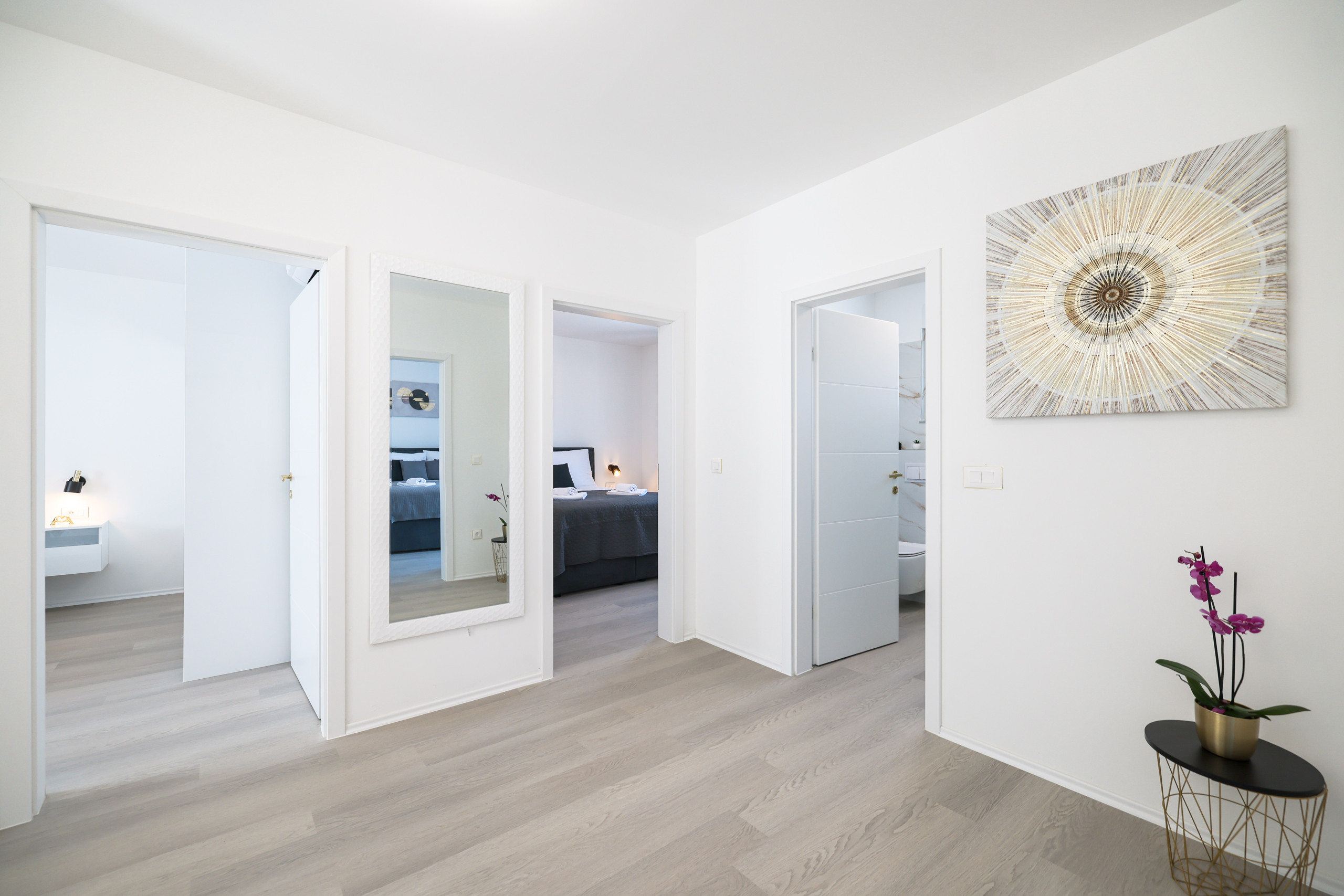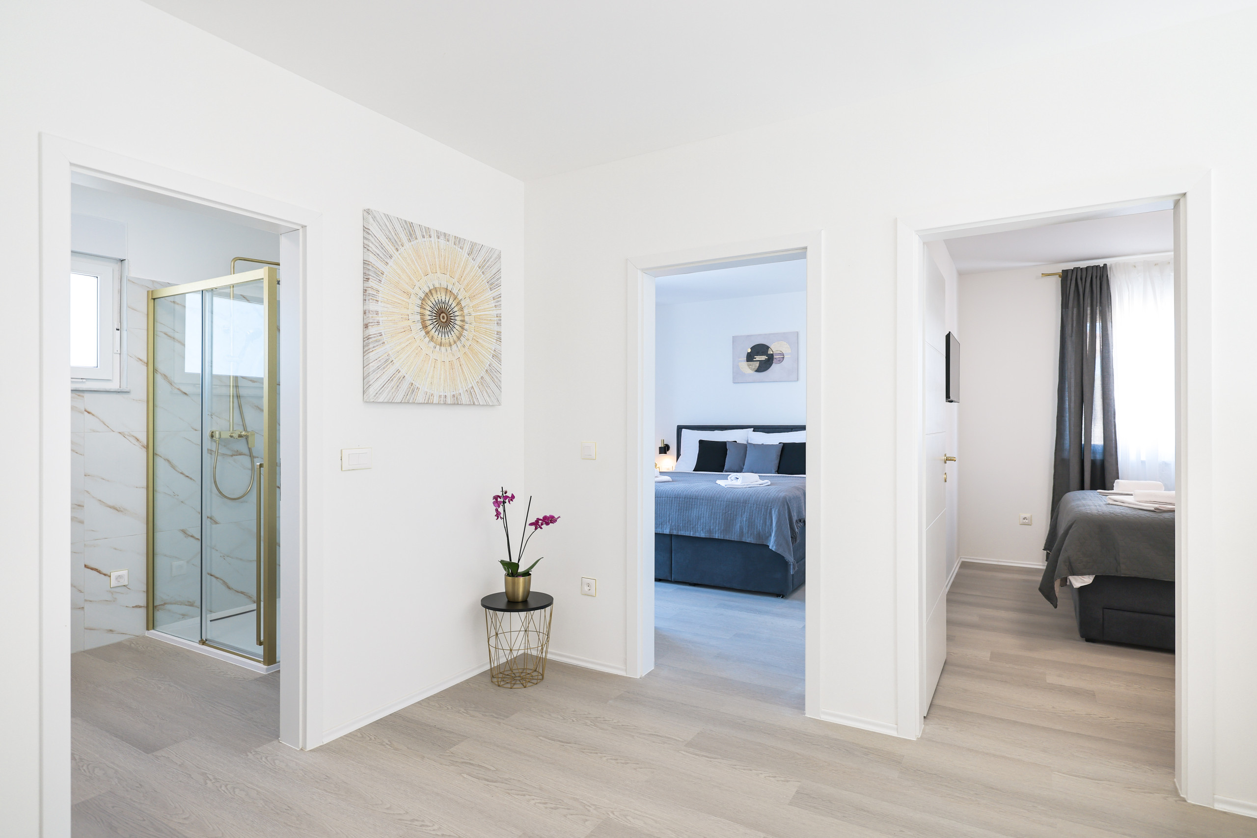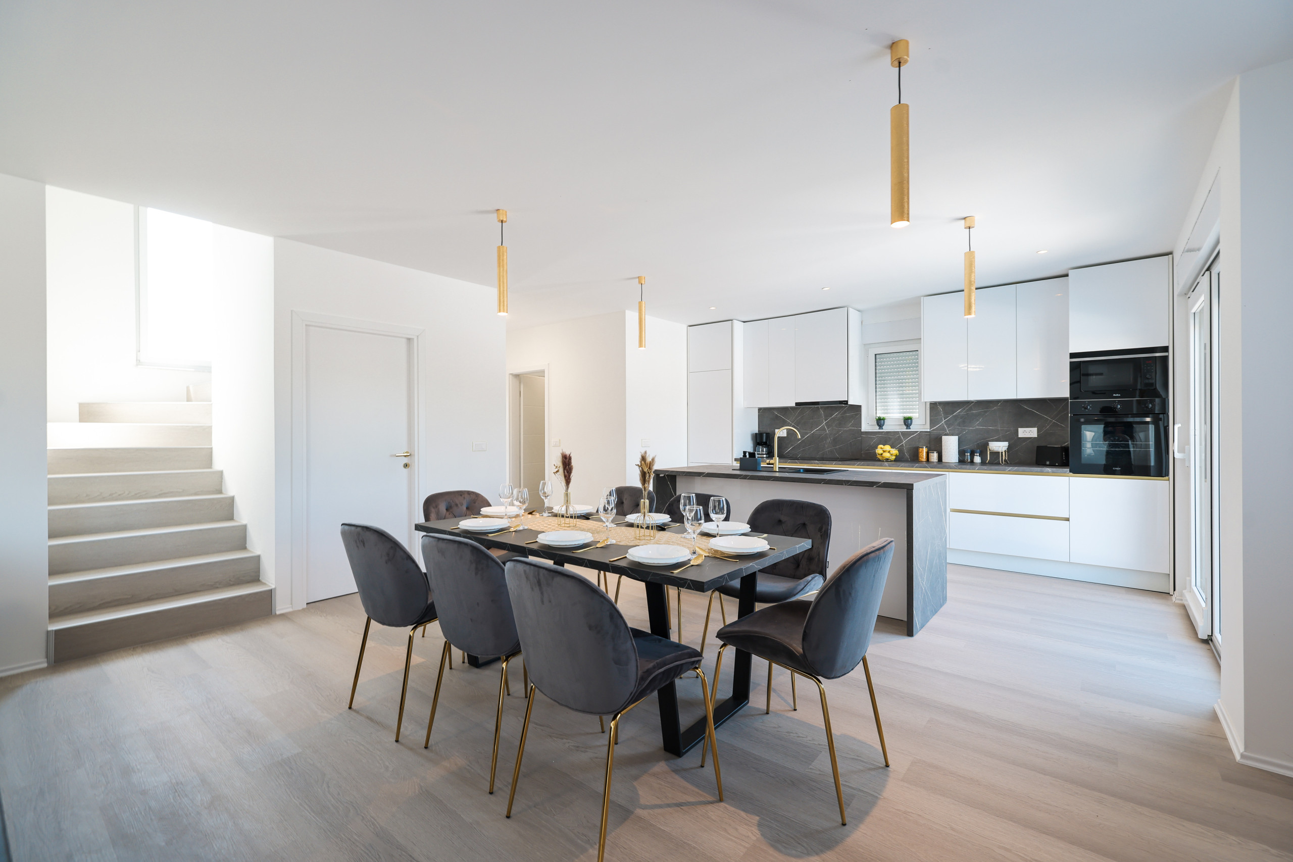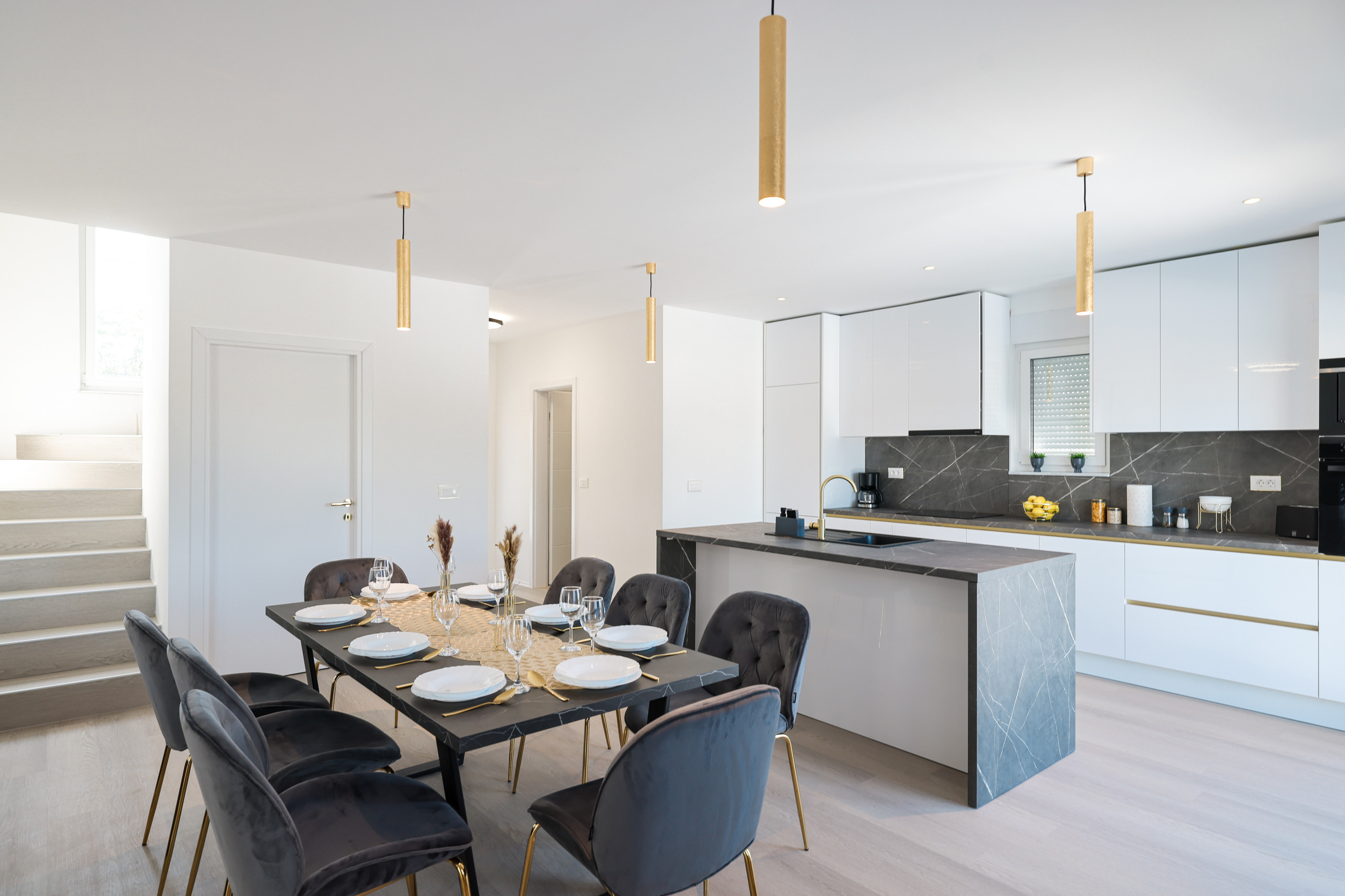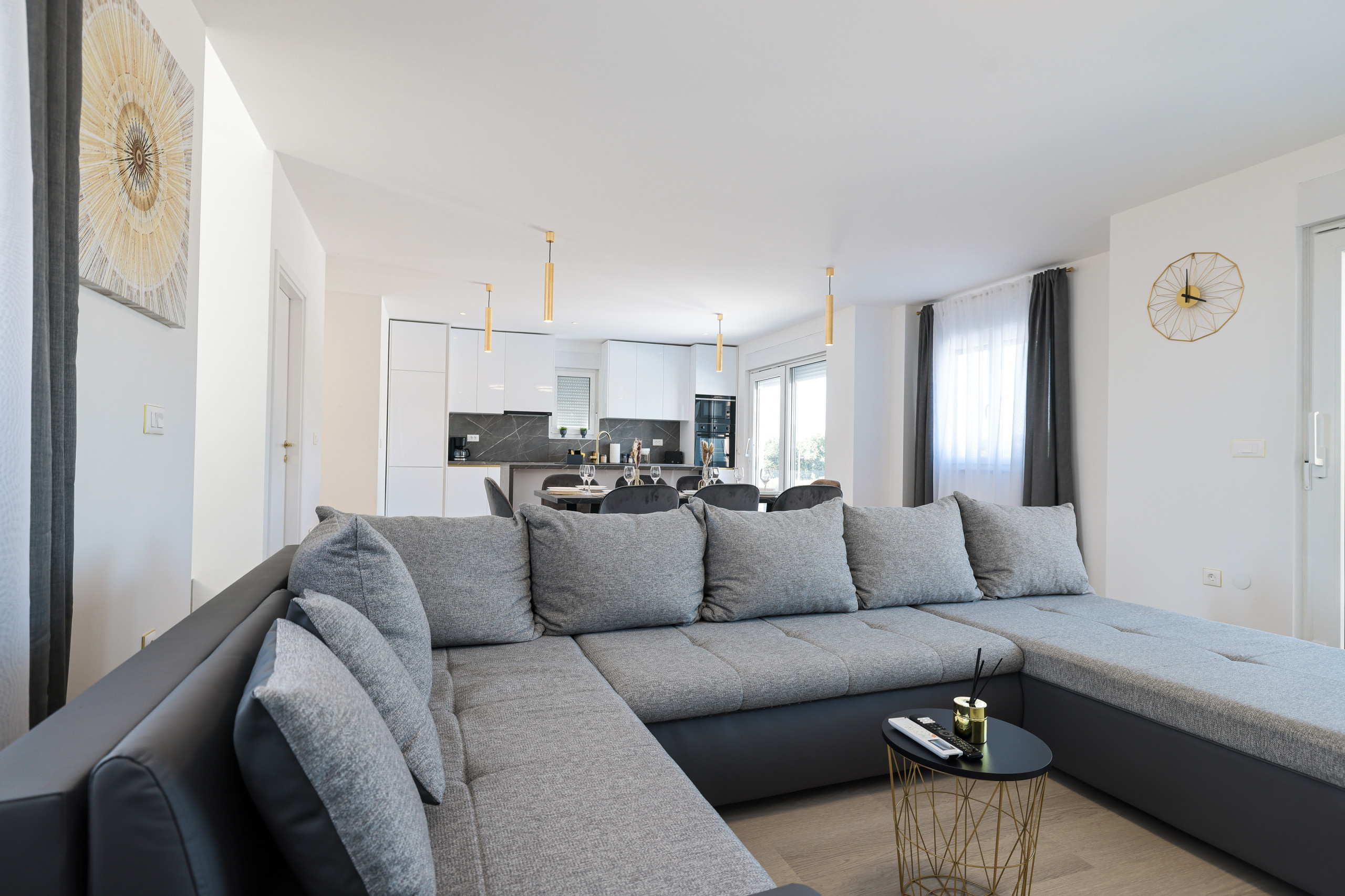 Located in the peaceful village of Murvica, just a few minutes’ drive from historic Zadar, this beautiful and spacious villa provides the perfect retreat for relaxation, fun and making unforgettable memories. With a spacious garden of 1,114 m², the villa offers complete privacy and comfort for up to 12 guests in four elegantly decorated double bedrooms, each with its own modern bathroom. Enjoy cooking in the fully equipped open-plan kitchen, sharing meals in the cozy dining room or relaxing in the contemporary living room that leads directly to the terrace – ideal for your first morning coffee with the sounds of nature. The outdoor area delights with a large heated swimming pool, modern sun loungers, Mediterranean greenery and a top-notch BBQ station with a covered dining area – perfect for enjoying delicious meals with family and friends. Additional magic is added to the stay by numerous entertainment facilities: a basketball court, an outdoor children’s playground, as well as an indoor area with table tennis, billiards and darts, which guarantee hours of laughter and socializing. Surrounded by a quiet family neighborhood, this villa provides the ideal blend of luxury, comfort, and fun for all generations.