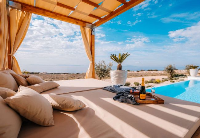 Villa Plant 1 is located within a luxurious complex of six sister villas, rated 5 stars, on an impressive 65,000 m² of land, surrounded by unspoiled nature and only 550 meters from the nearest beach in Novalja on the island of Pag. This stunning villa offers a unique combination of natural surroundings and breathtaking views of the sea and nearby islands, creating the perfect setting for relaxation and a memorable holiday. Villa Plant 1 features four comfortable bedrooms, three with double beds and one with a single bed, ideal for an extra guest or child. The villa also has three elegant bathrooms, two with showers and one with a bathtub, ensuring maximum comfort for all guests.