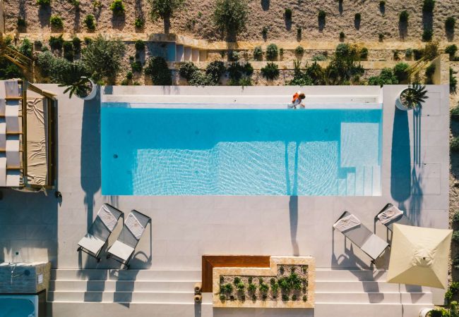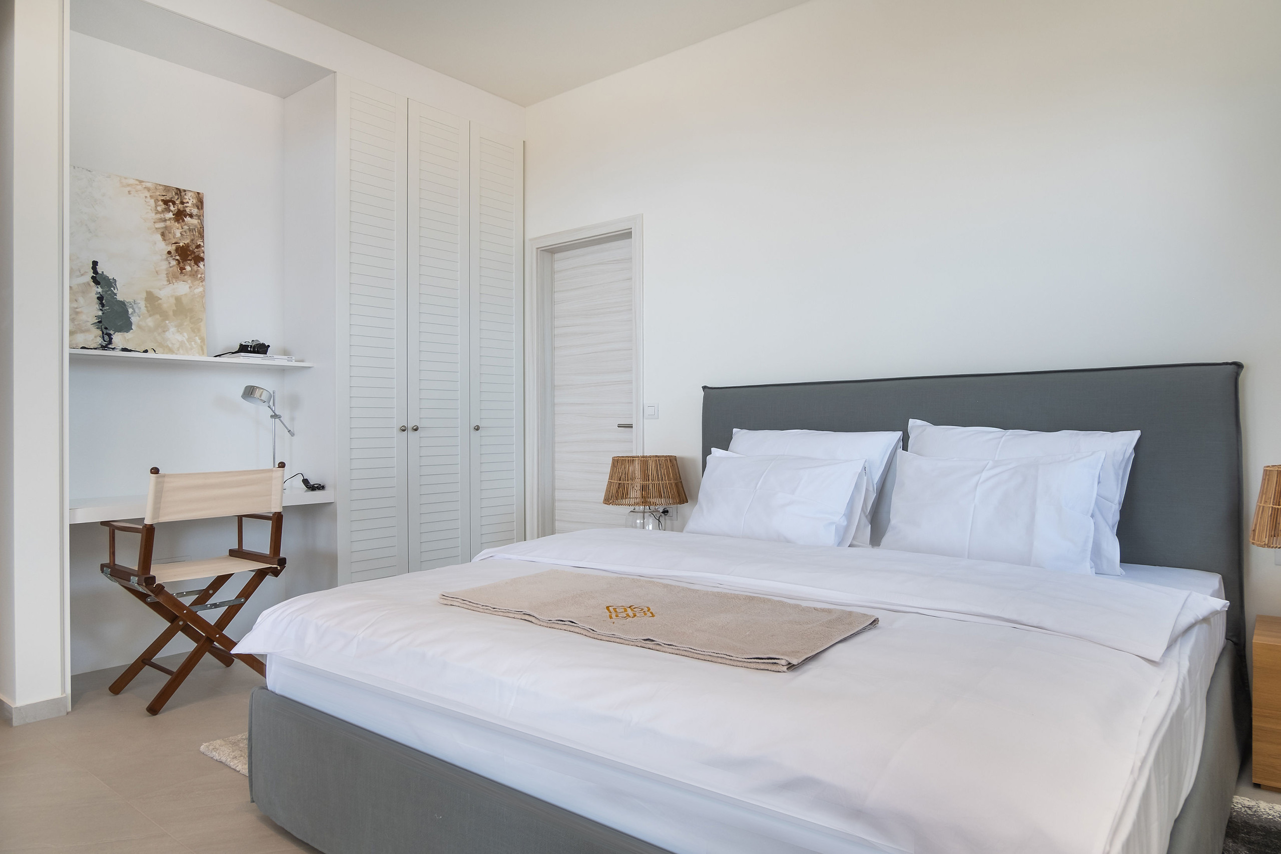 The villa accommodates up to 7 guests and features four fully air-conditioned bedrooms. Three spacious bedrooms are furnished with king-size beds and private en-suite bathrooms (two with walk-in showers and one with a bathtub), while the fourth bedroom is designed for one guest. Each space is styled with a focus on elegance, comfort and functionality.