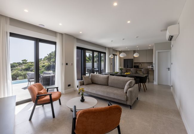 Villa Luce is located in one of the most attractive spots on Pelješac, right by the coast, offering an unforgettable view of the sea that leaves every guest in awe. This luxurious villa is the perfect place for a family vacation or a getaway with friends, offering exceptional comfort, top-notch design, and sophisticated amenities. With 165 m² of living space and a 234 m² yard, the villa accommodates up to 6 guests.