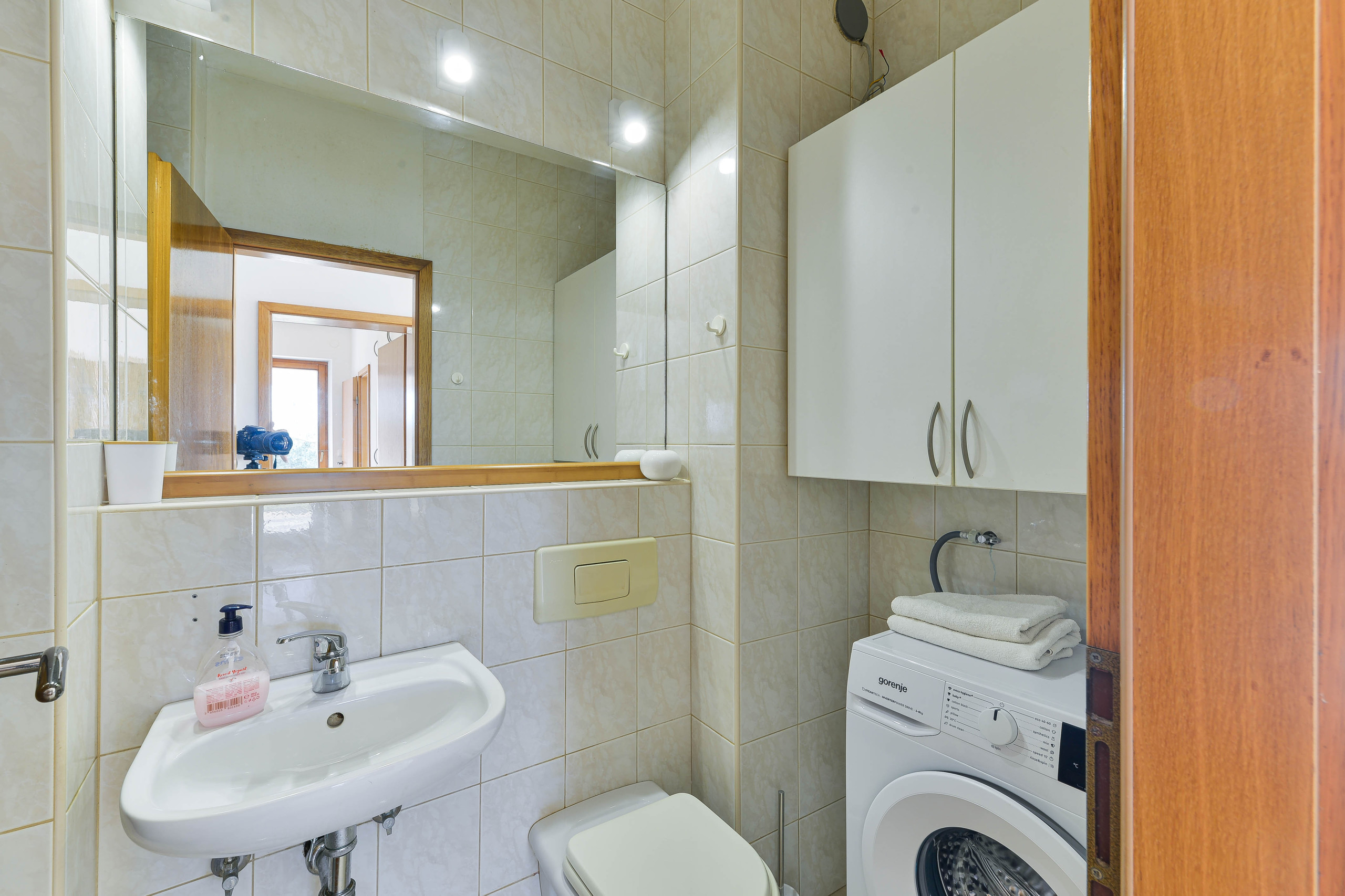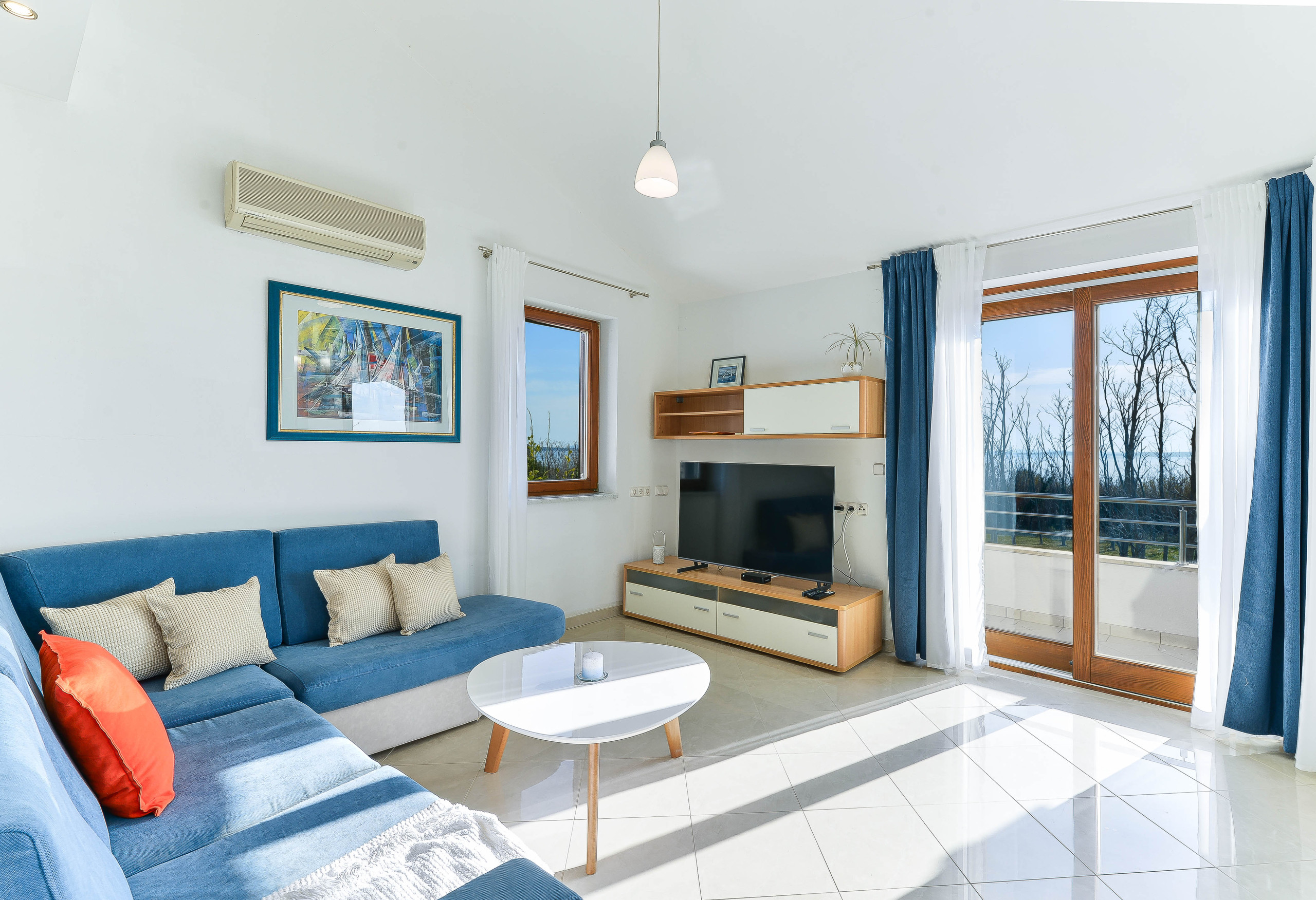 The house is equipped with three air conditioning units – one on the ground floor in the living room and two on the upper floor (one in the living room and the other in the kitchen).