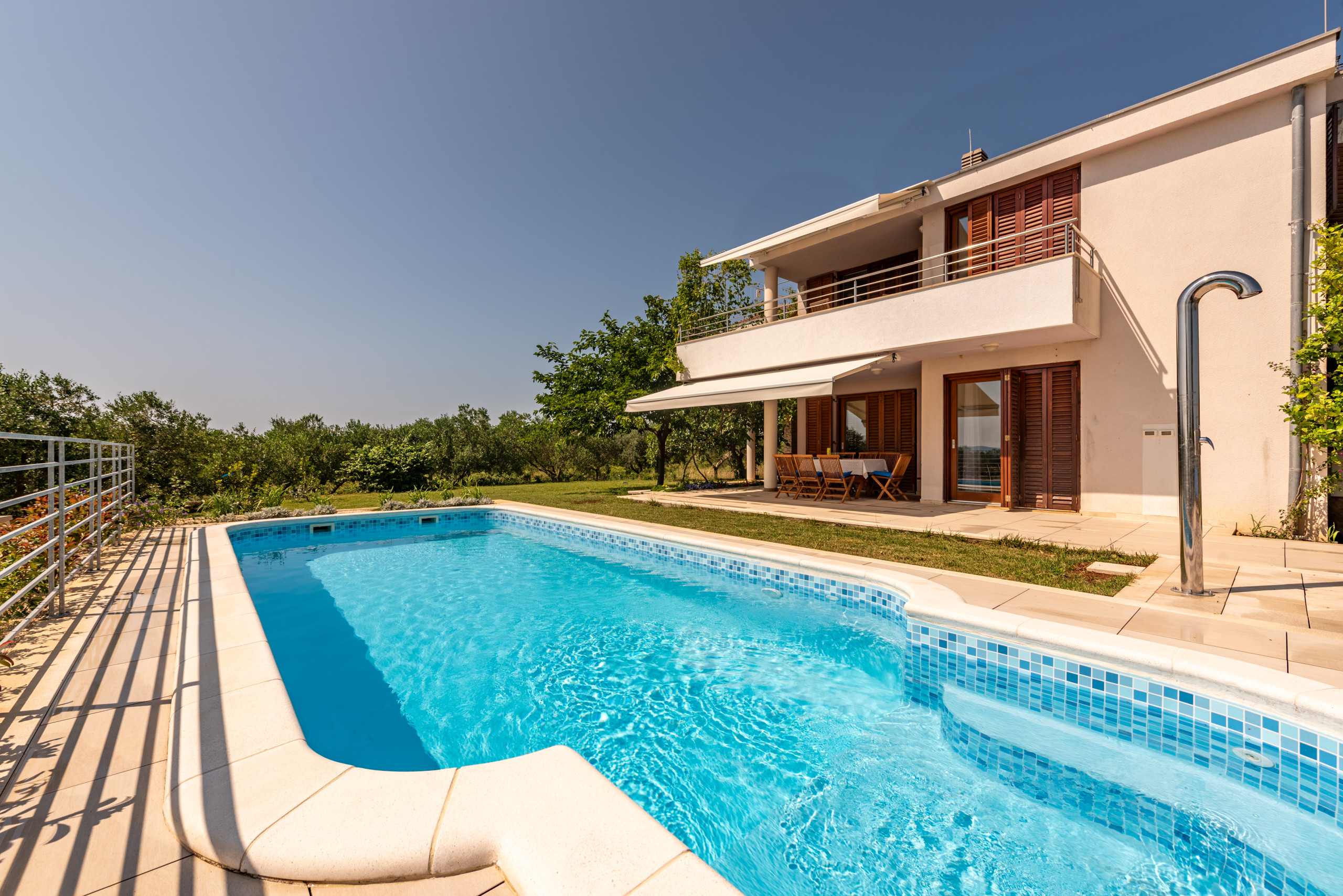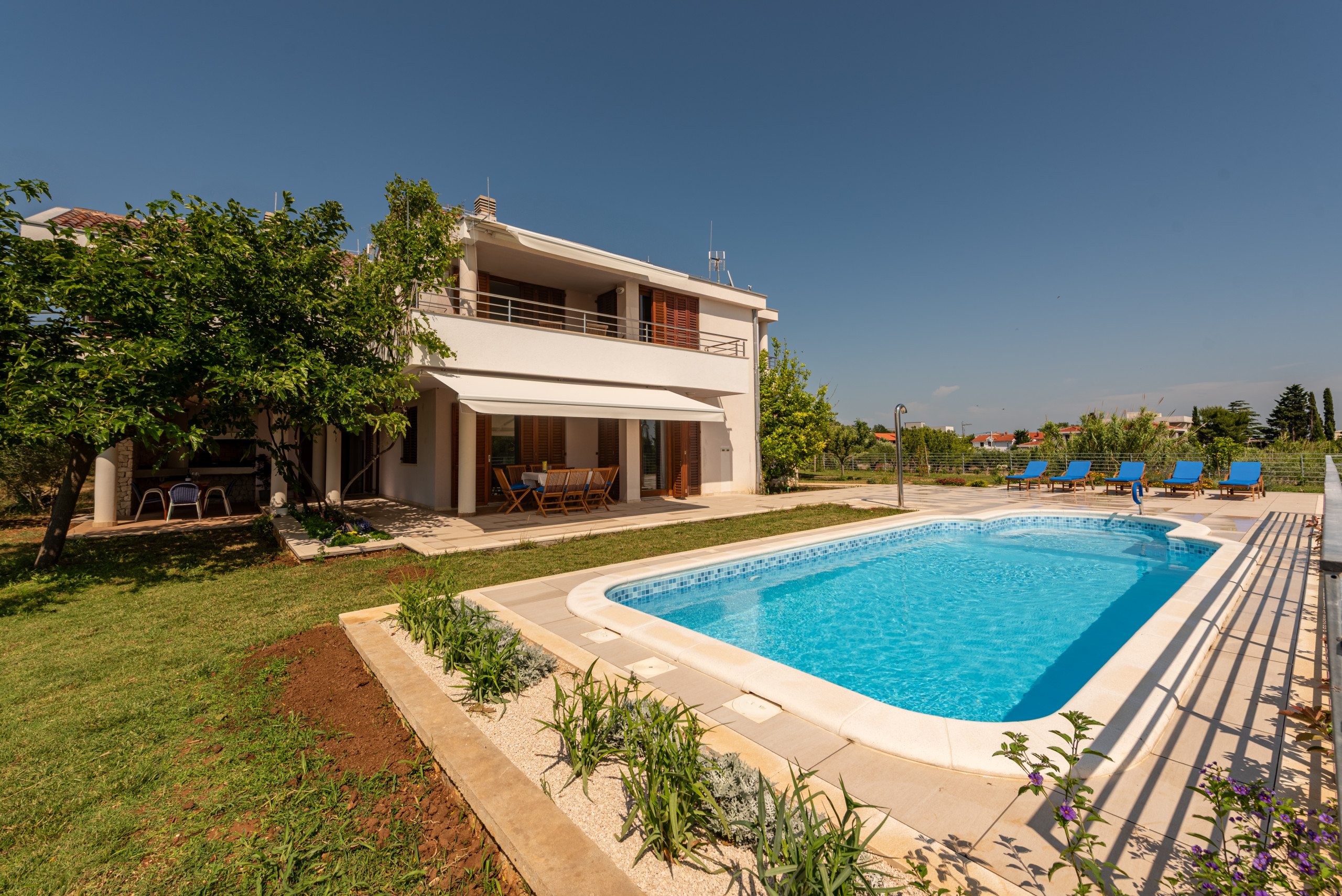 Villa Serena is a brand-new, exclusive villa built in 2025, located in a stunning seafront position in Privlaka – just 10 meters from the crystal-clear Adriatic Sea. Spacious and stylishly furnished, this villa is the perfect choice for a family holiday, a relaxing getaway with friends, or a romantic escape. It offers complete privacy, exceptional comfort, and breathtaking sea views from nearly every room.