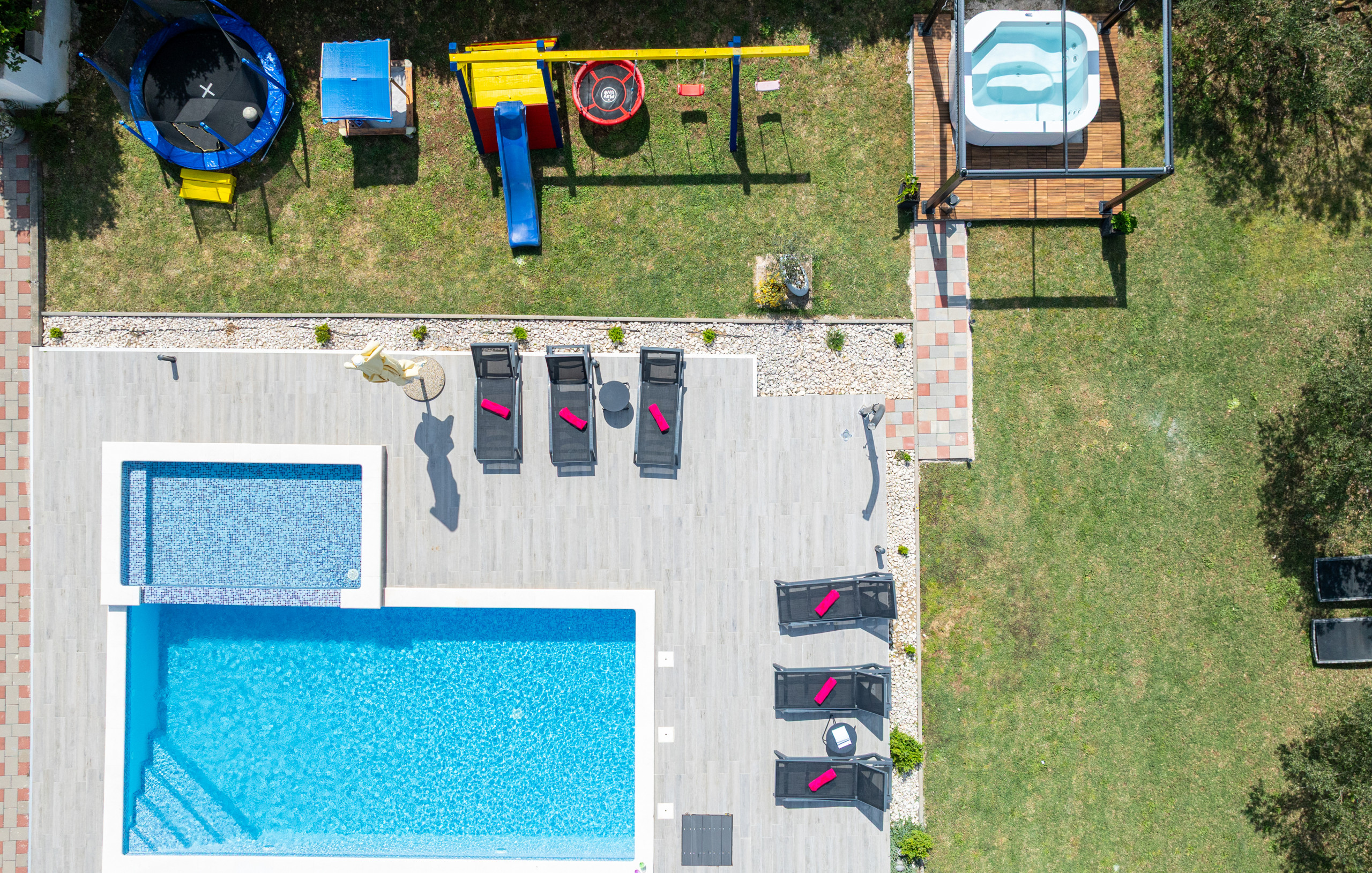 This villa provides everything you need for a pleasant and carefree vacation. Whether you want to relax by the pool, have fun with the children on the playground, or explore the natural beauty of the surroundings, Villa Maris will meet all your needs. The villa is perfectly situated for those who want to combine relaxation in a peaceful environment with exploring nearby Dalmatian gems.