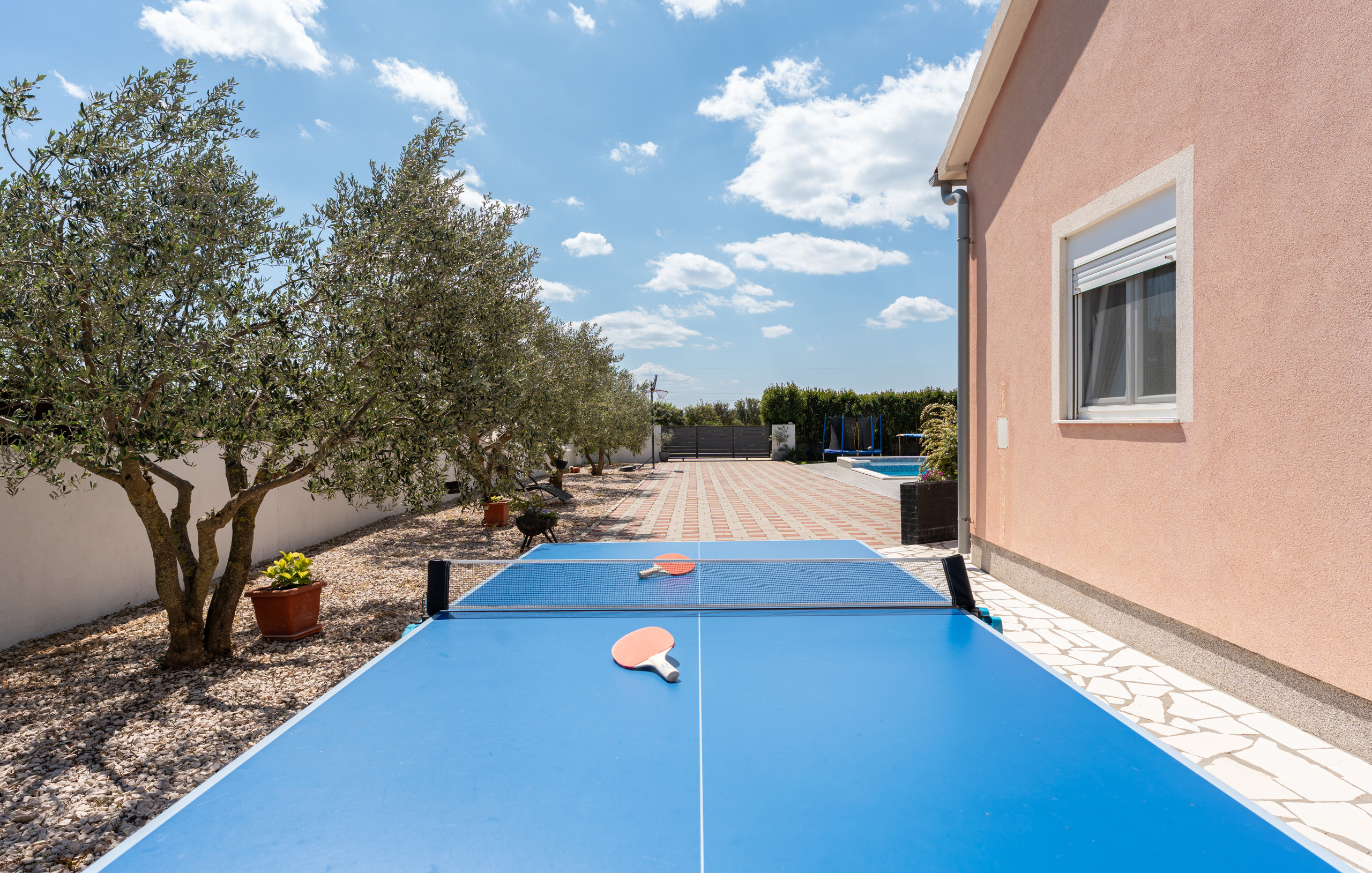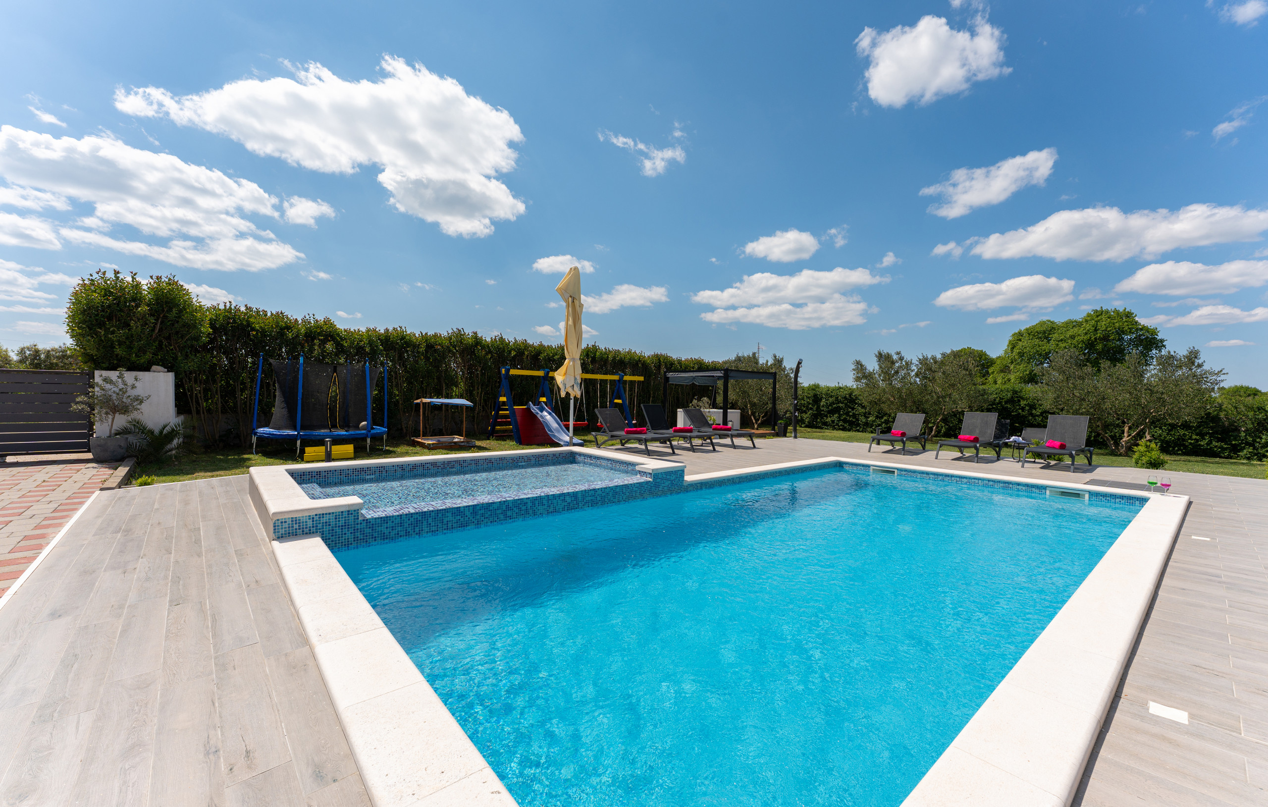 The villa’s outdoor area offers numerous opportunities for relaxation and entertainment. There is a private pool and an additional children's pool, perfect for the youngest guests. Children will enjoy the playground with various play facilities. Bicycles are available for exploring the surroundings, and table tennis is provided for outdoor fun. The entire yard is fully fenced, ensuring privacy and security.