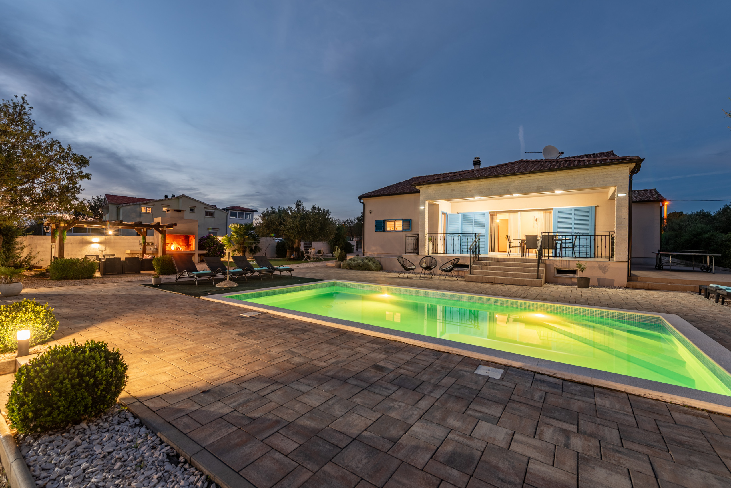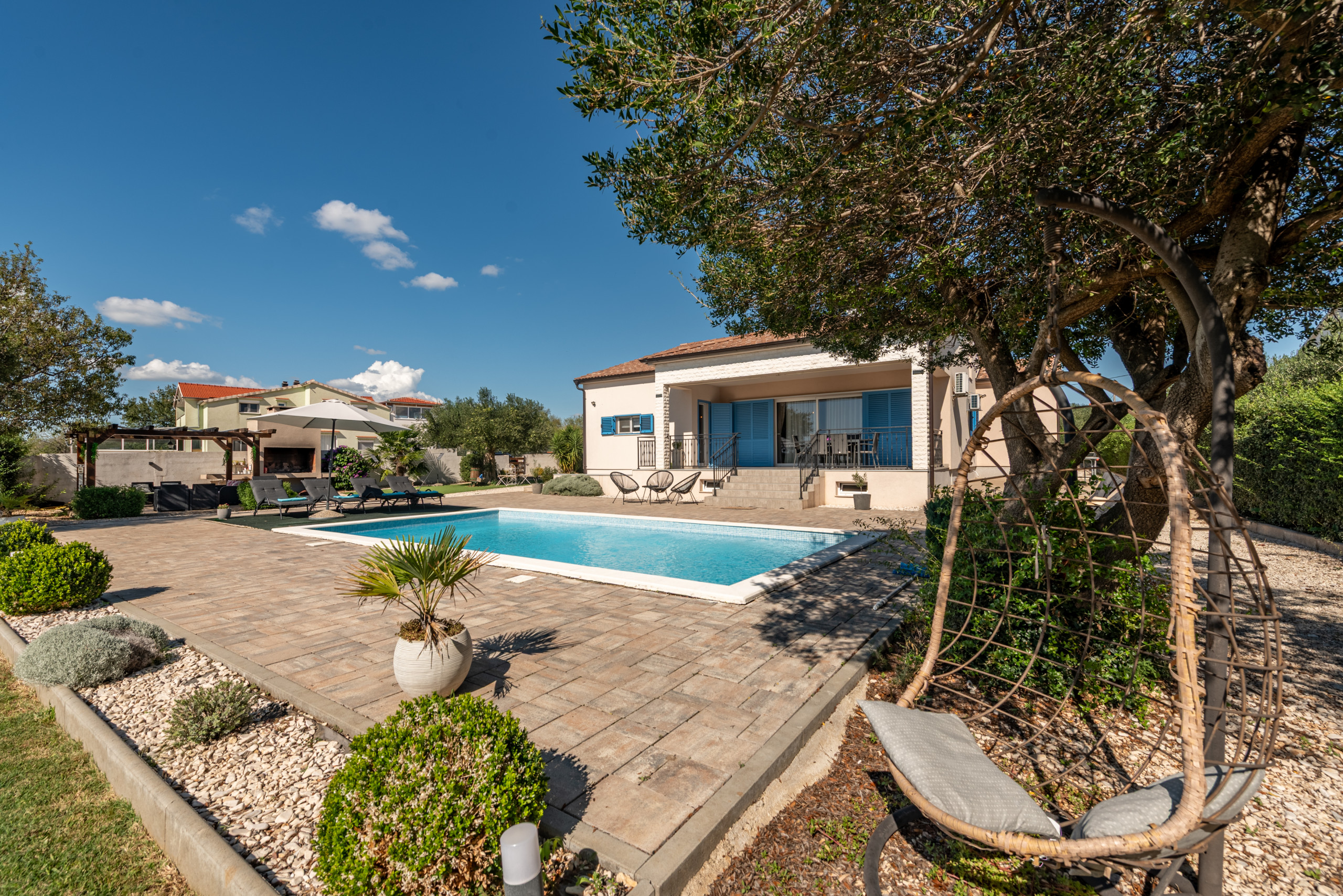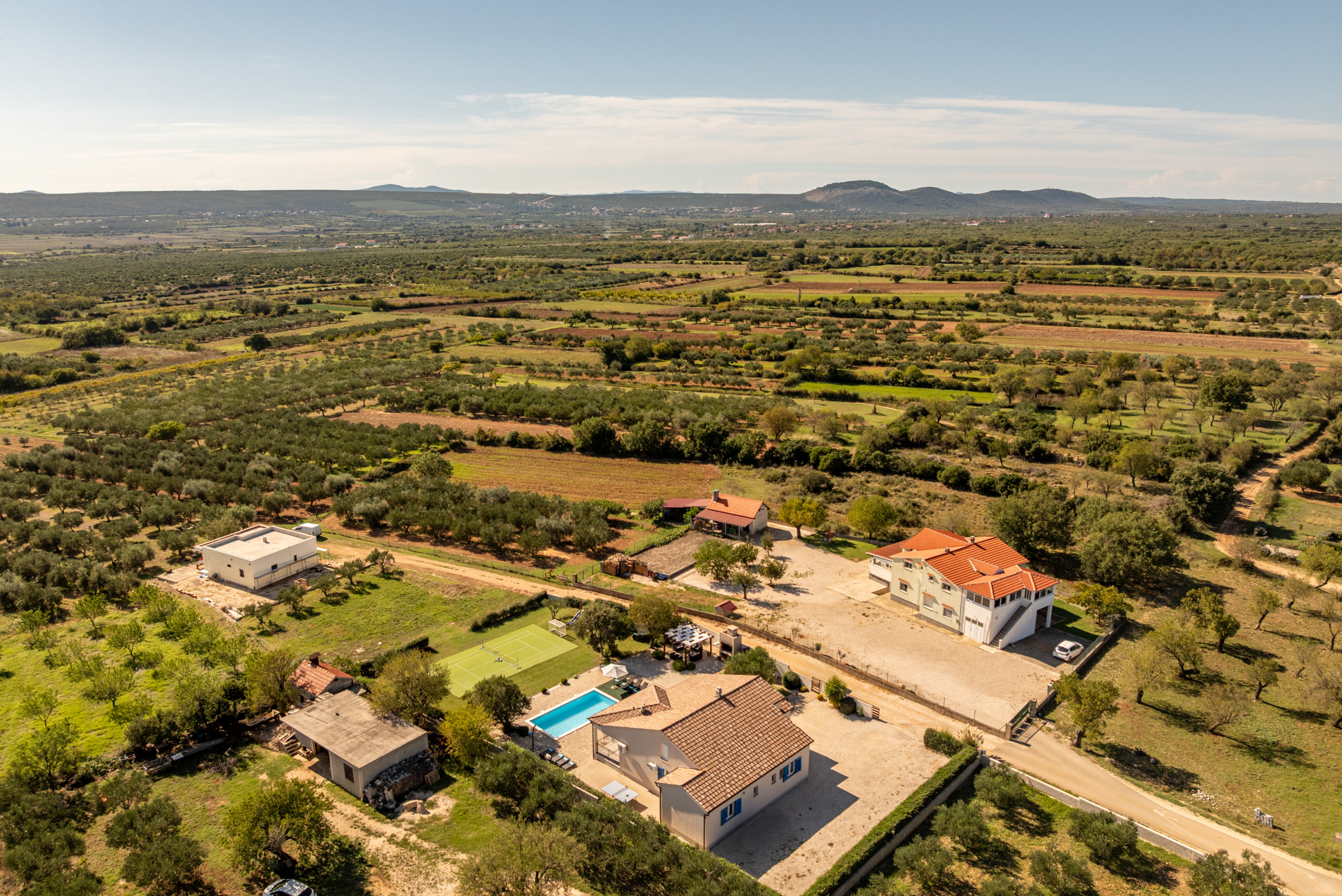 Villa Katarina is located in the peaceful village of Tinj, near Benkovac, surrounded by greenery and complete tranquility, making it an ideal choice for a relaxing holiday away from crowds and everyday stress. The villa can accommodate up to 10 guests and offers a perfect combination of comfort, privacy, and modern design.