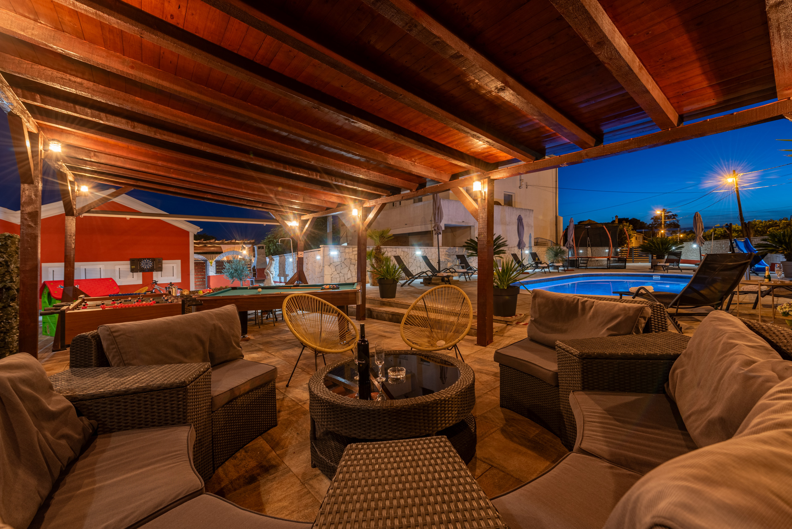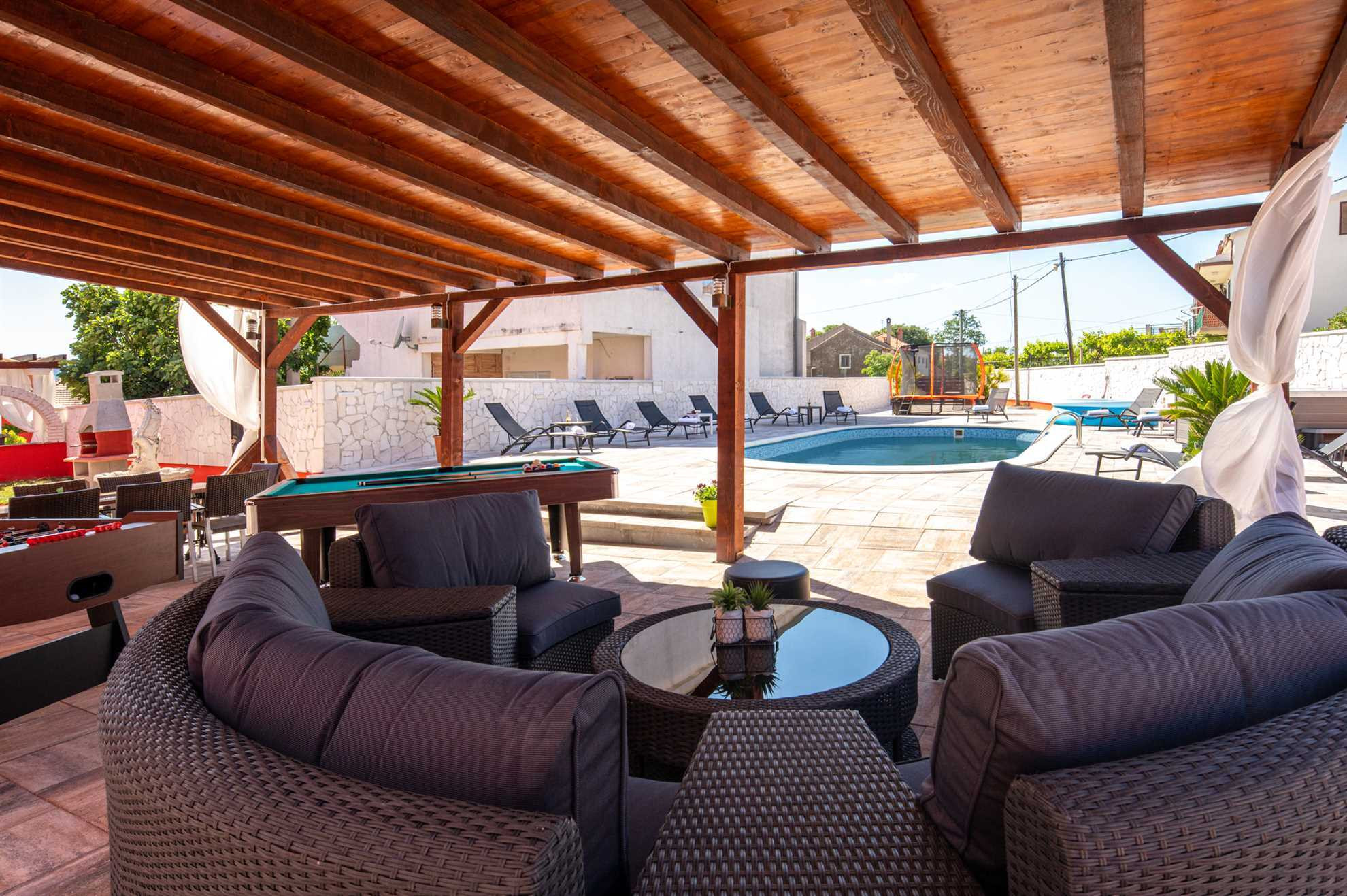 Villa Ancora also offers a wide range of entertainment facilities for all generations: guests can enjoy the already mentioned billiard table, darts and a trampoline, while children will love the playground. Active holiday enthusiasts can explore the surroundings by bicycle, as Turanj and its area offer well-maintained cycling paths along the coast. High-quality bicycles are available for rent at an additional charge, payable in cash upon agreement with the owner.