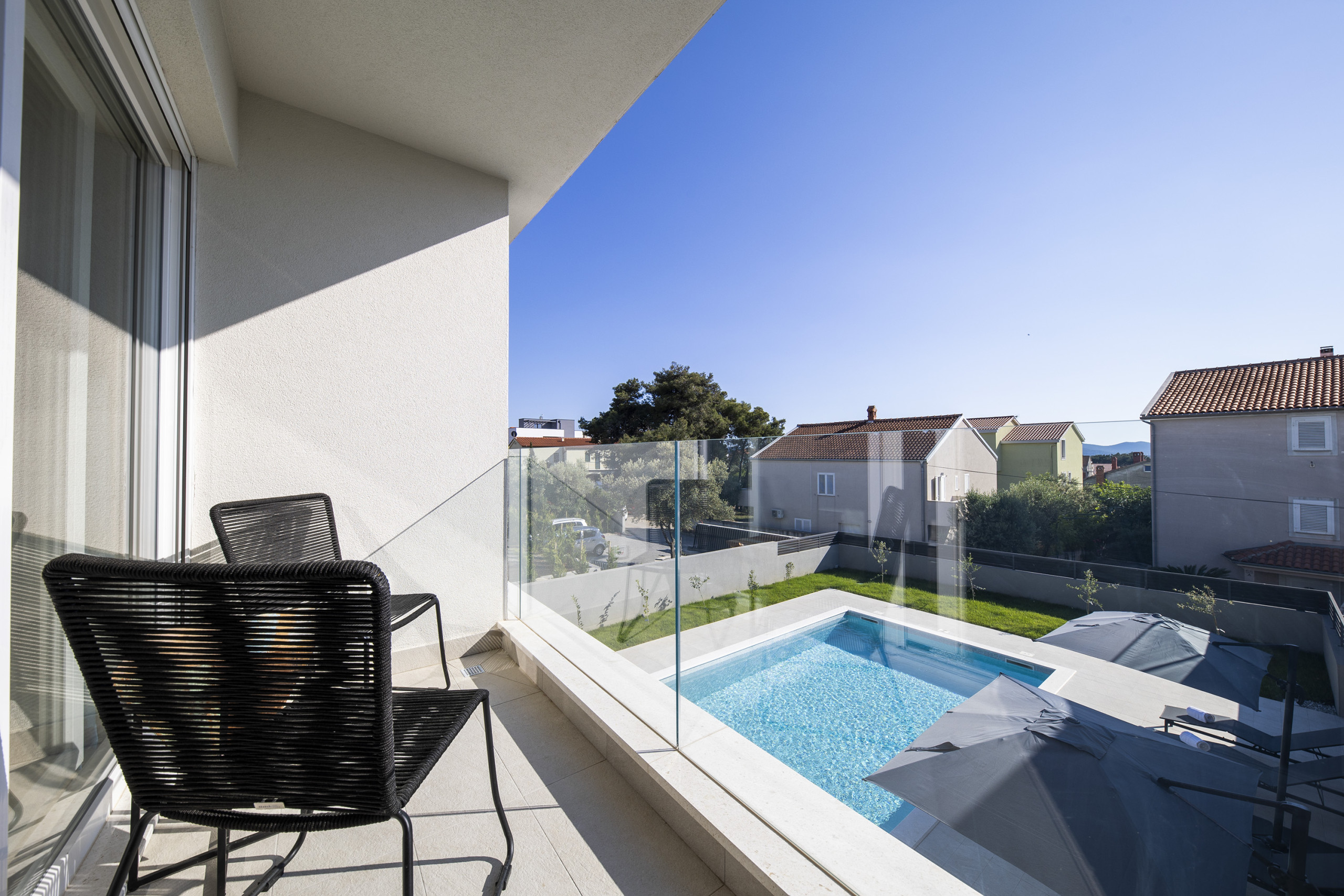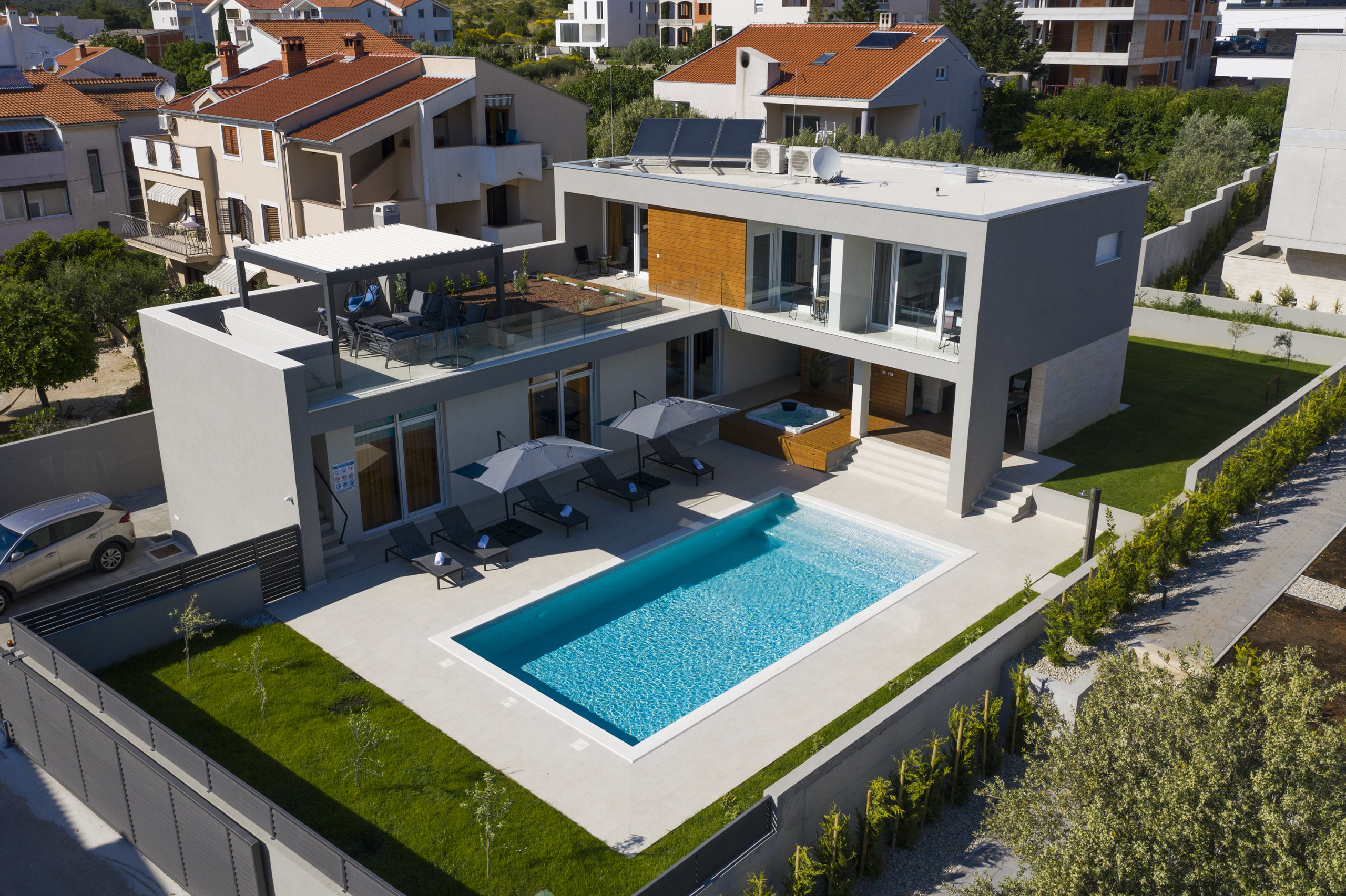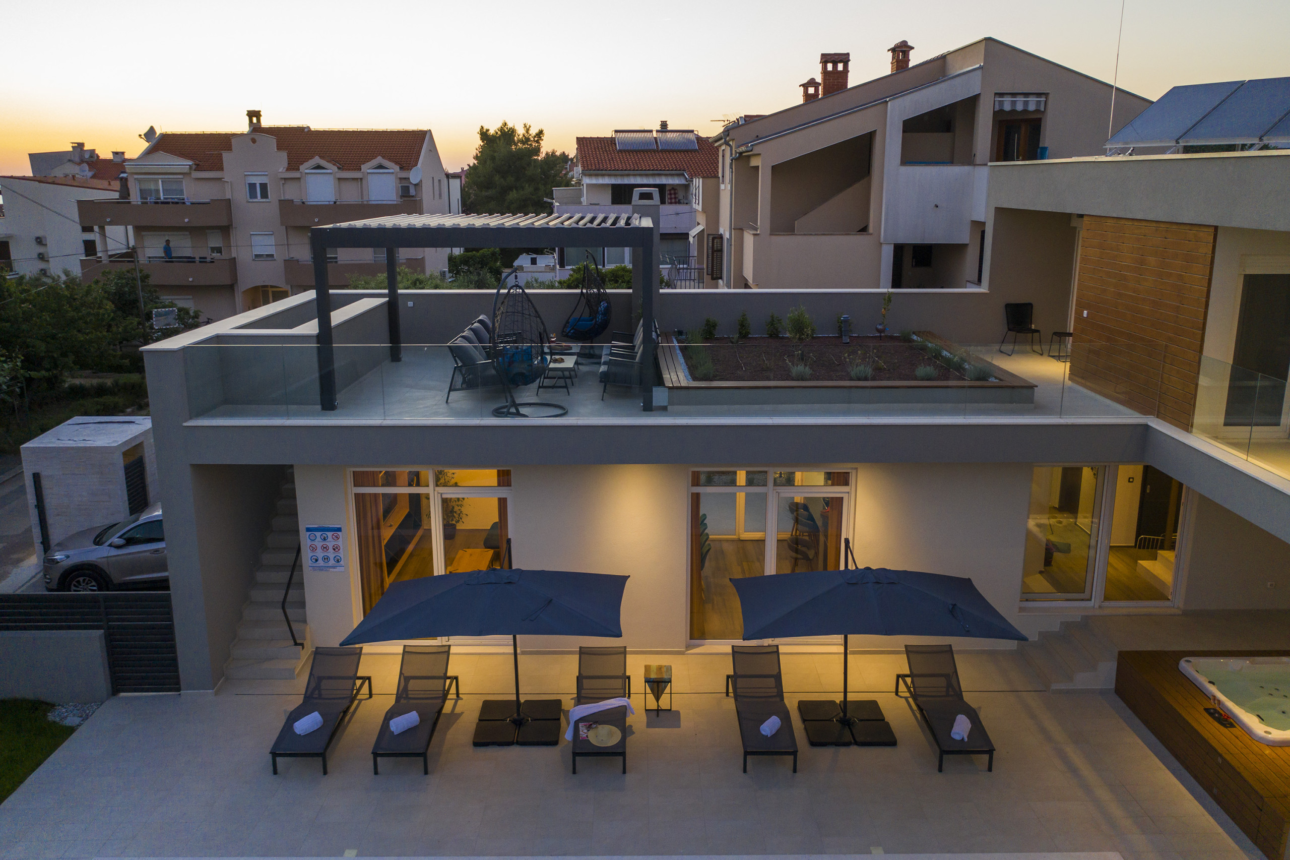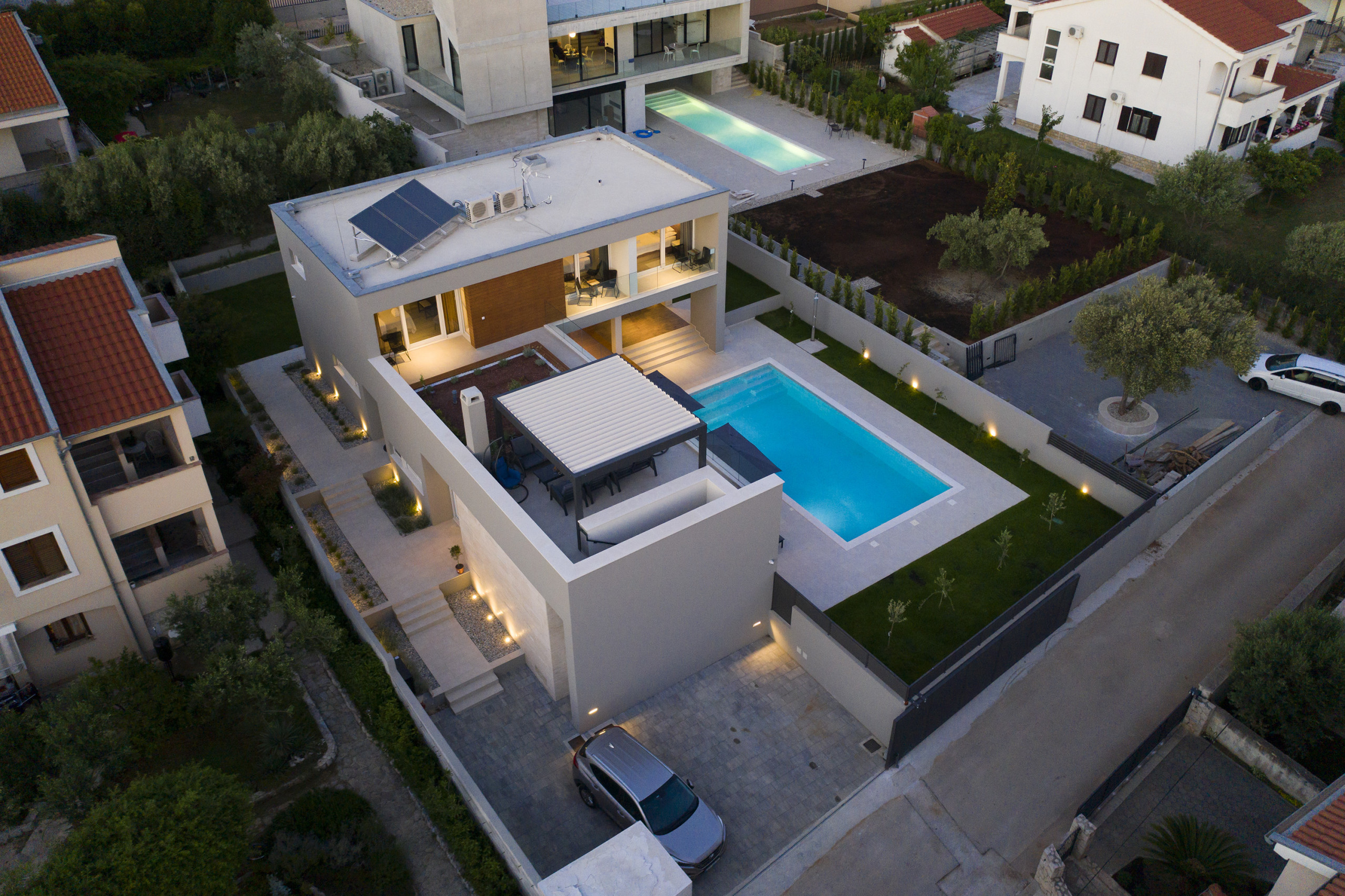 This Unique, modern and breath taking Panoramic View Villa is located in Zadar, 2.6 km from old city center. It is surrounded with relaxing sights at mountain Velebit, Adriatic sea and islands. Peaceful and quite area gives you total privacy, and still you are near to the city center if you want to explore something new.